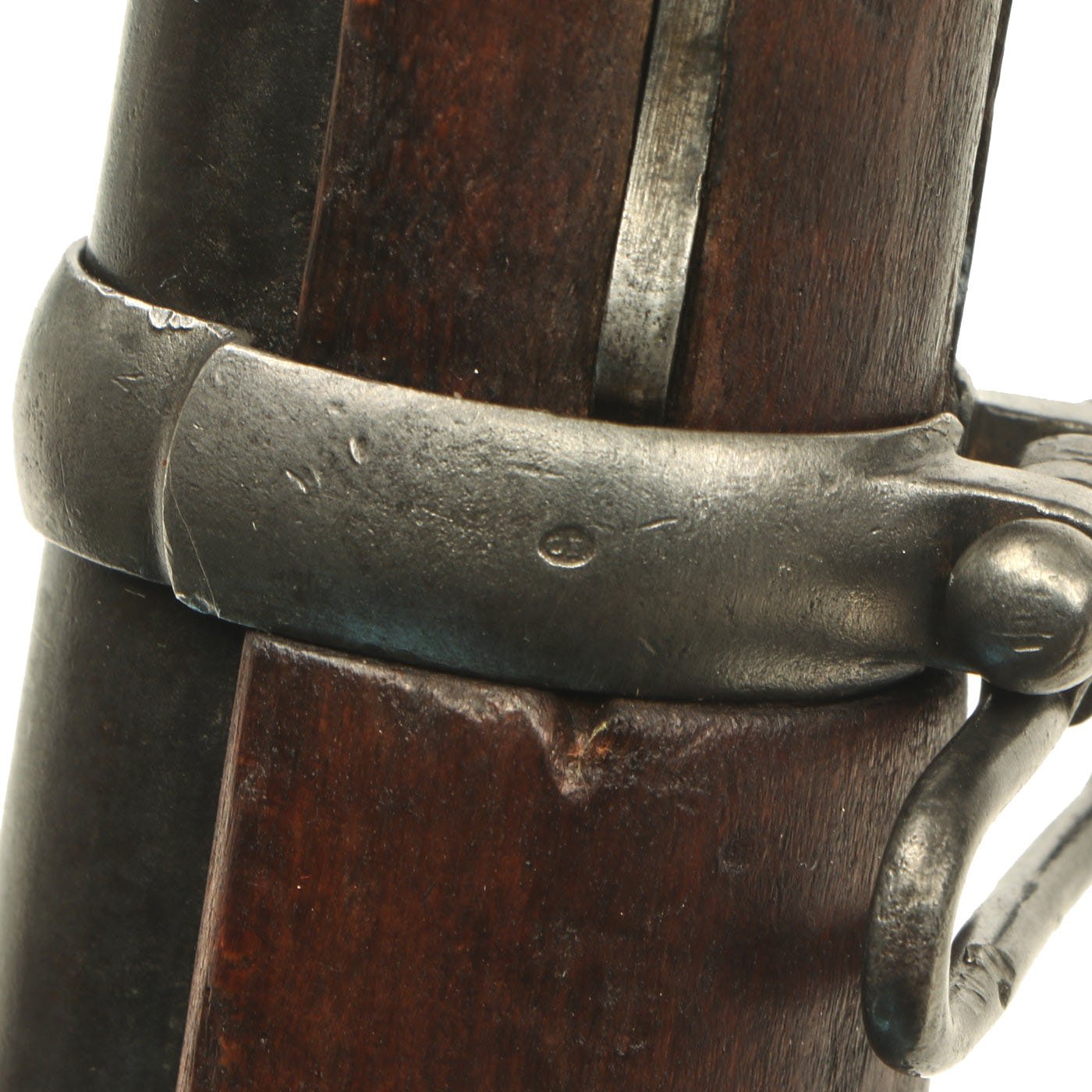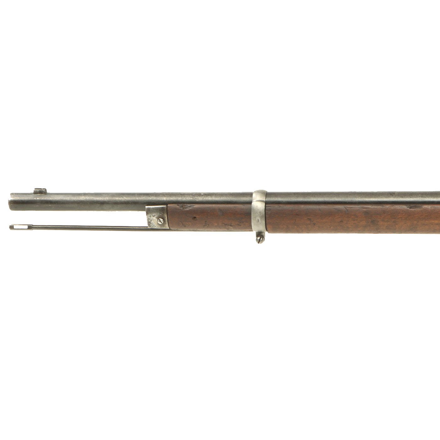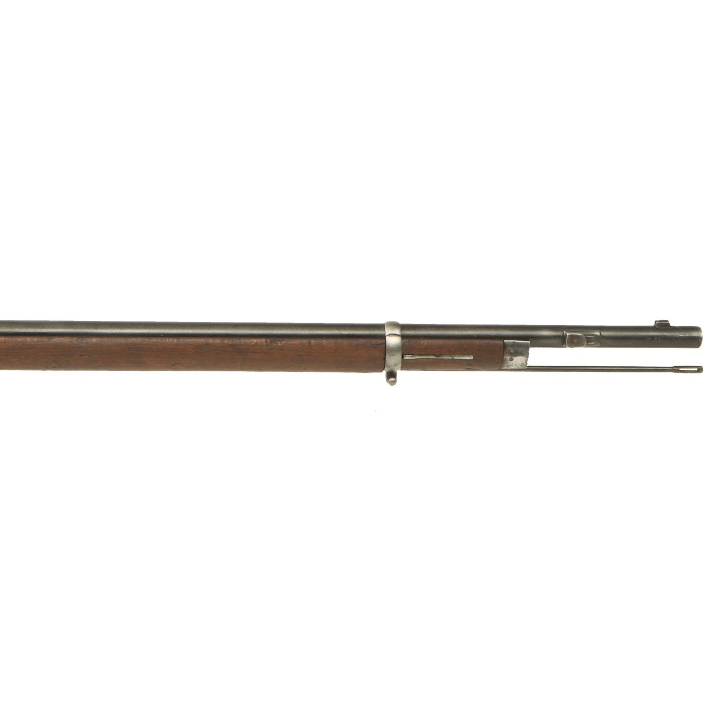 This example bears serial number PM 5860 on the barrel, and is offered in very good condition. It is marked BRESCIA over an 1890 date on the barrel, indicating manufacture in Brescia, a major gunmaking region of Italy. There is a maker symbol on the top of the nocks form, but it is unfortunately not one that we recognize. As this rifle was made in 1890, it was most likely originally manufactured in the M1870/87 configuration with a magazine. Mechanically in very good condition, this rifle has a good bore with clear lands and grooves, though the grooves are a bit dark. As usual for these rifles, there is a bit of slop with the bolt action, though the bolt handle itself is rather stiff.