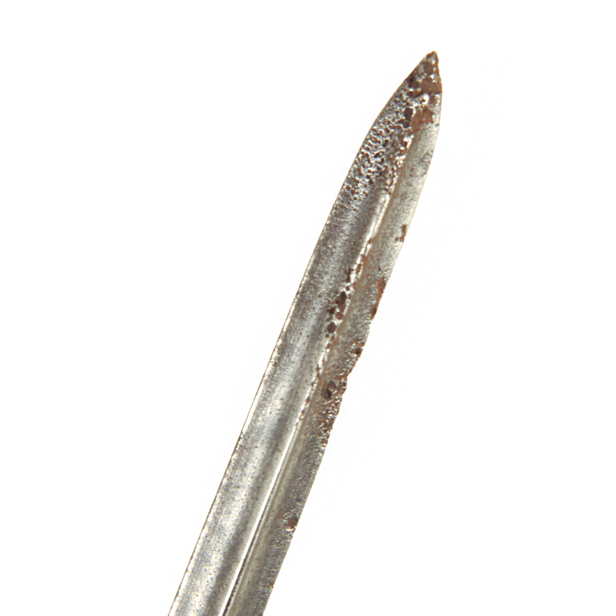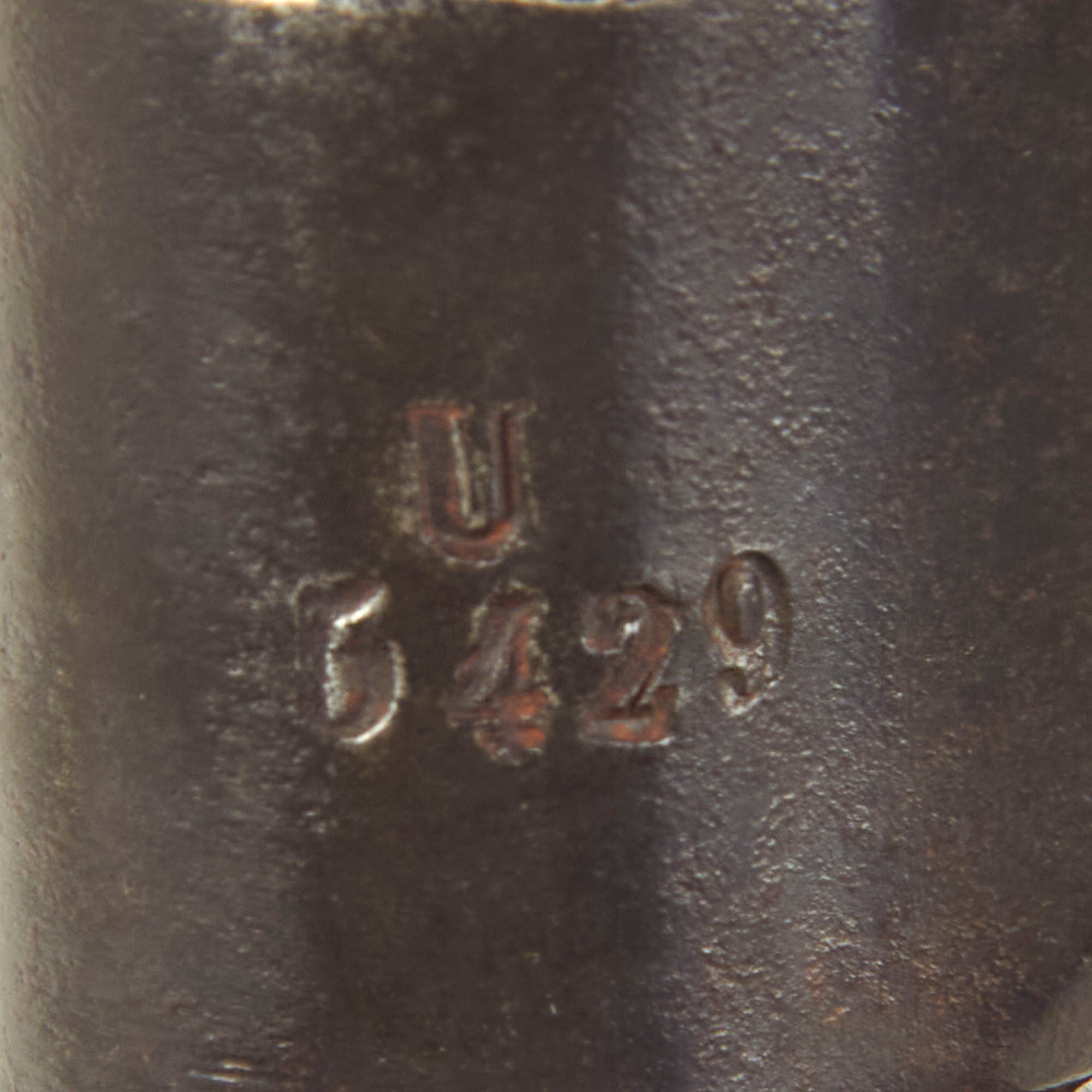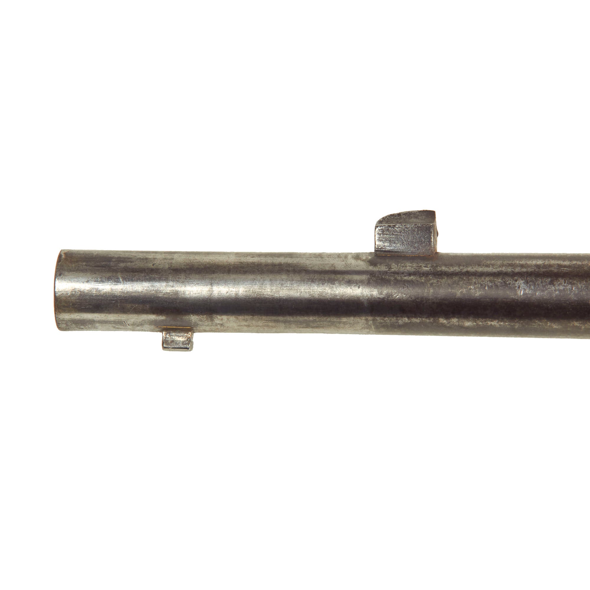 The interesting feature of the 1870 Carbine is that it was issued with a rather long socket bayonet, intended to give the trooper reach when confronted with a Cavalryman. This bayonet is stored by being reversed on the barrel front and pointed backward when not in use, as there was a purpose built slot in the carbine's fore stock to accept the blade of the socket bayonet. Finding a carbine still with the bayonet is exceedingly rare. This bayonet is in good condition, and the locking ring is intact, though it is a bit loose. The bayonet correctly fits in both positions.