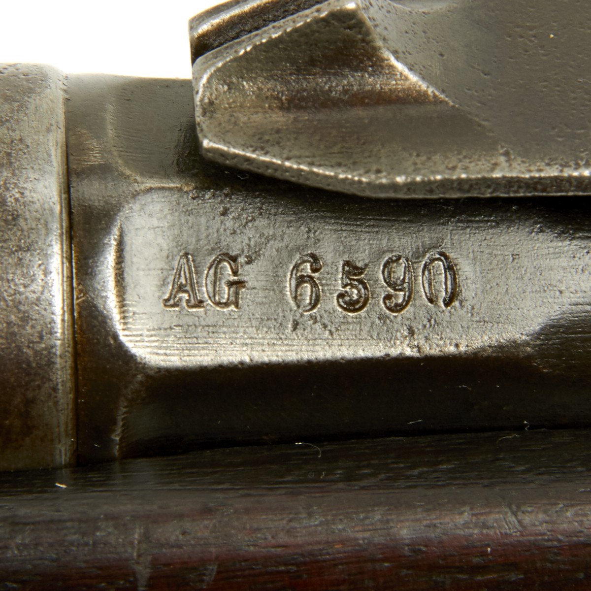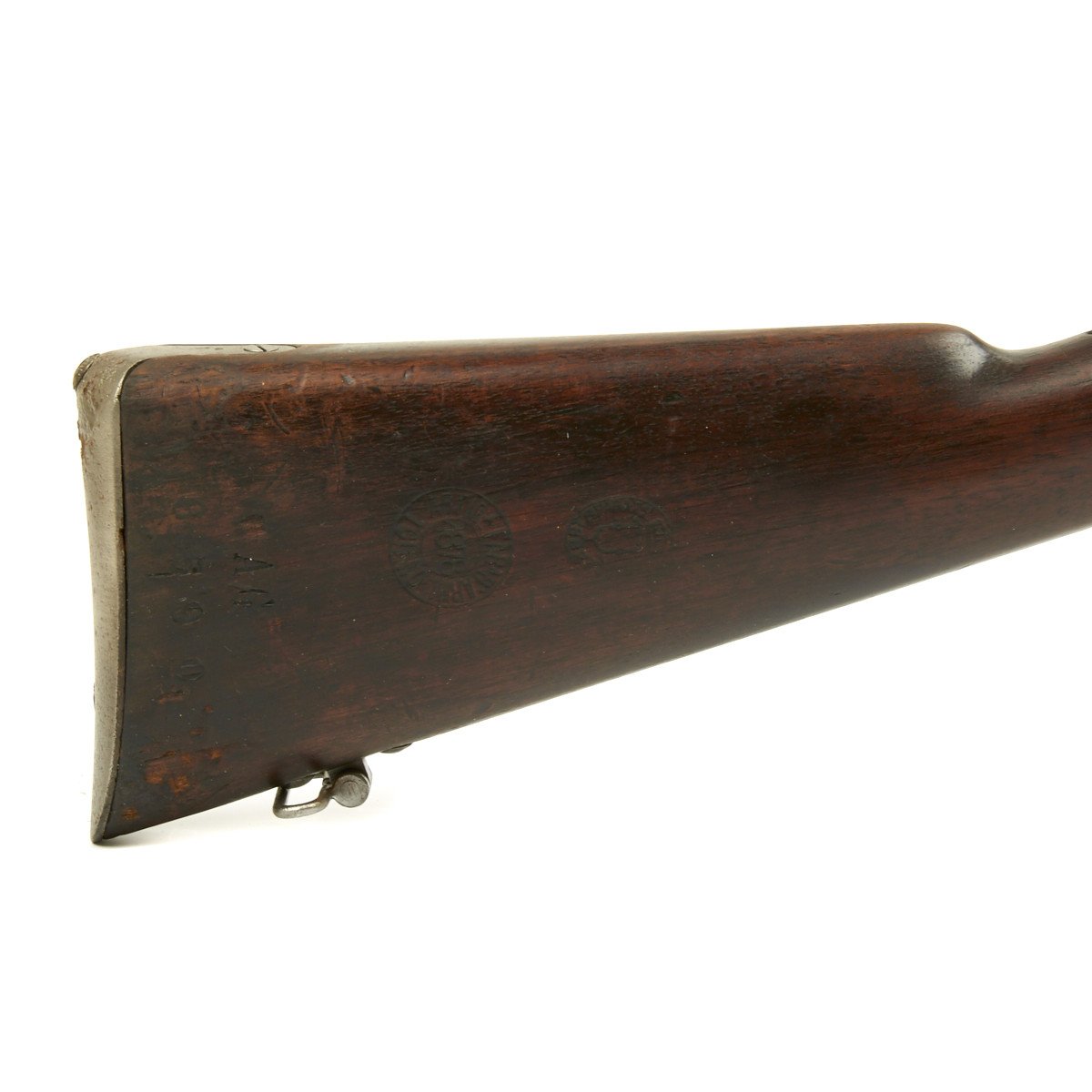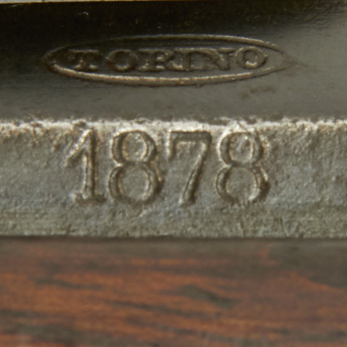 The example serial number 6950 is offered in very good condition. It is marked TORINO on the butt stock and 1878 date on both the barrel and stock. There is also a crisp Royal Italian cartouche on the butt stock. Mechanically in excellent condition with a crisp bore. Overall a very nice example of this somewhat rare and desirable weapon.