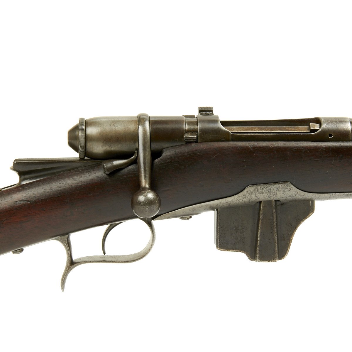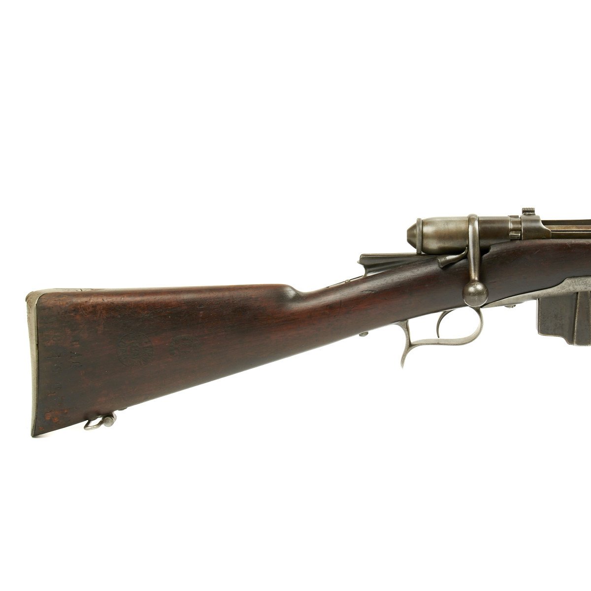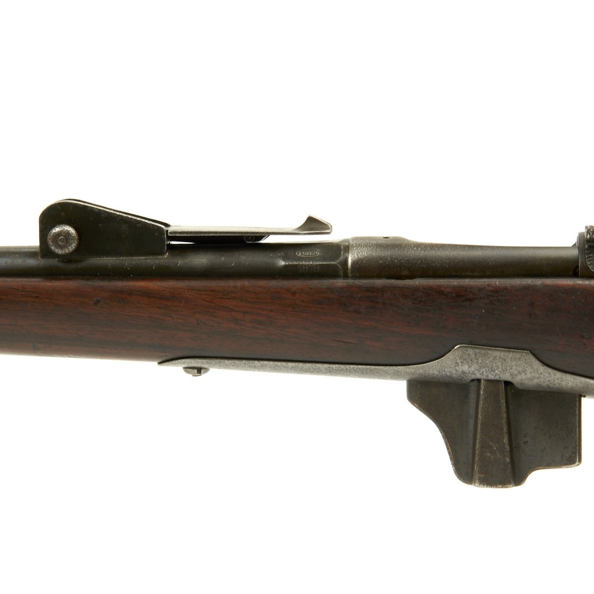 The example serial number 6950 is offered in very good condition. It is marked TORINO on the butt stock and 1878 date on both the barrel and stock. There is also a crisp Royal Italian cartouche on the butt stock. Mechanically in excellent condition with a crisp bore. Overall a very nice example of this somewhat rare and desirable weapon.