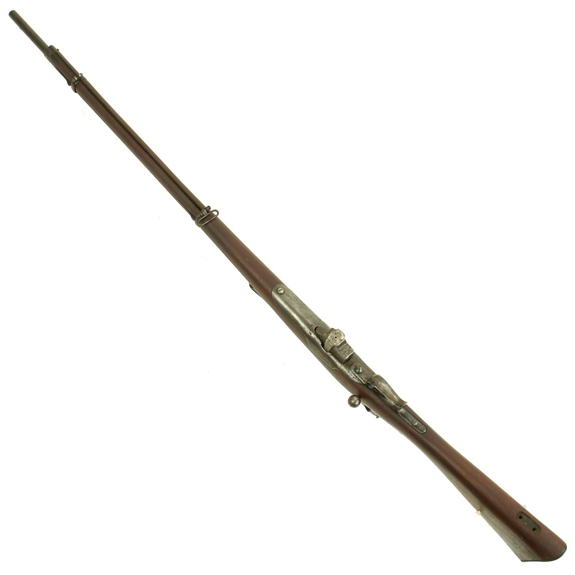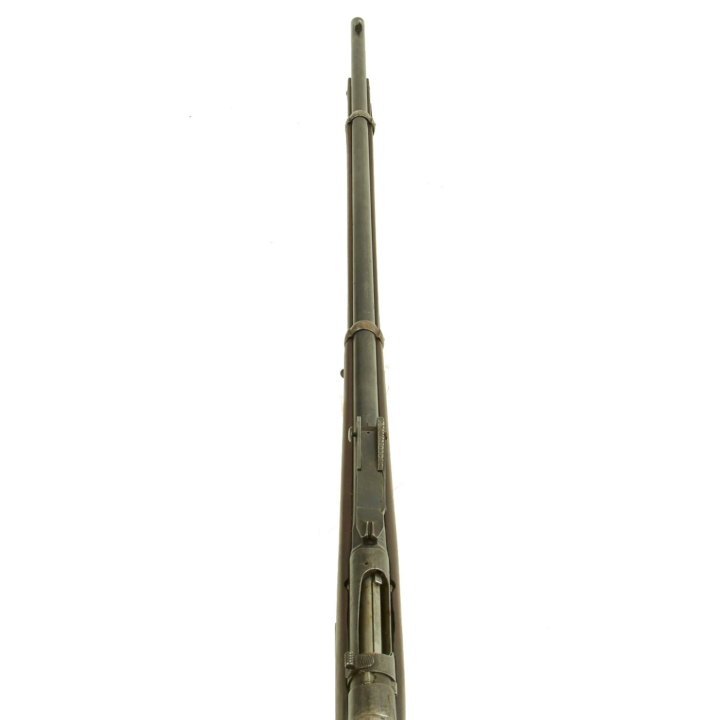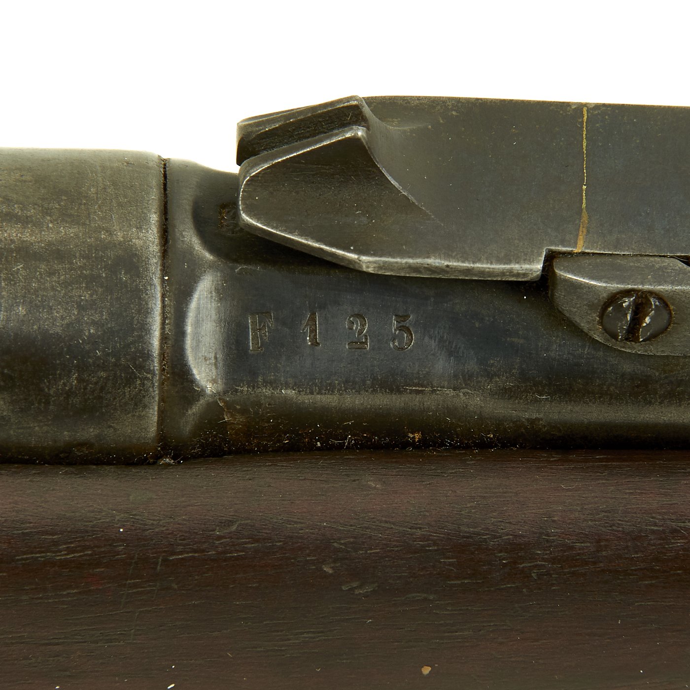 This example bears serial number AF 192 on the barrel nocks form, and is offered in very good condition. It is marked TORINO in an oval over an 1871 date on the barrel, indicating manufacture at the Turin Arsenal in 1871, only the second year of production for this model. It also has markings on top of the nocks form, but we cannot make them out. The stock has been reconditioned at arsenal, which has unfortunately made the markings on the stock faint, but we do not think the serial number is matching.
