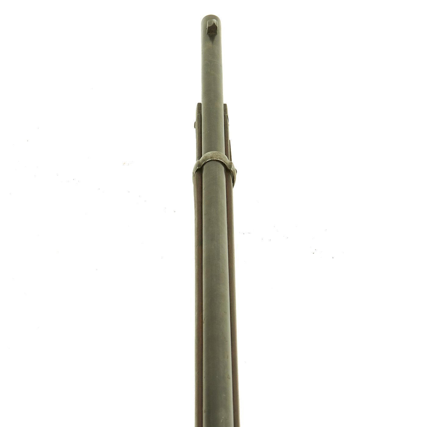 The metalwork still has a lot of the original arsenal blue, with wear around the receiver area. The rifle is mechanically in very good condition with a nice crisp bore that has a bright finish and clear lands and grooves, with just a bit of wear. It is however missing the cleaning rod, as well as the lower sling swivel on the butt stock. The sight is fully functional, with an intact adjustment button.