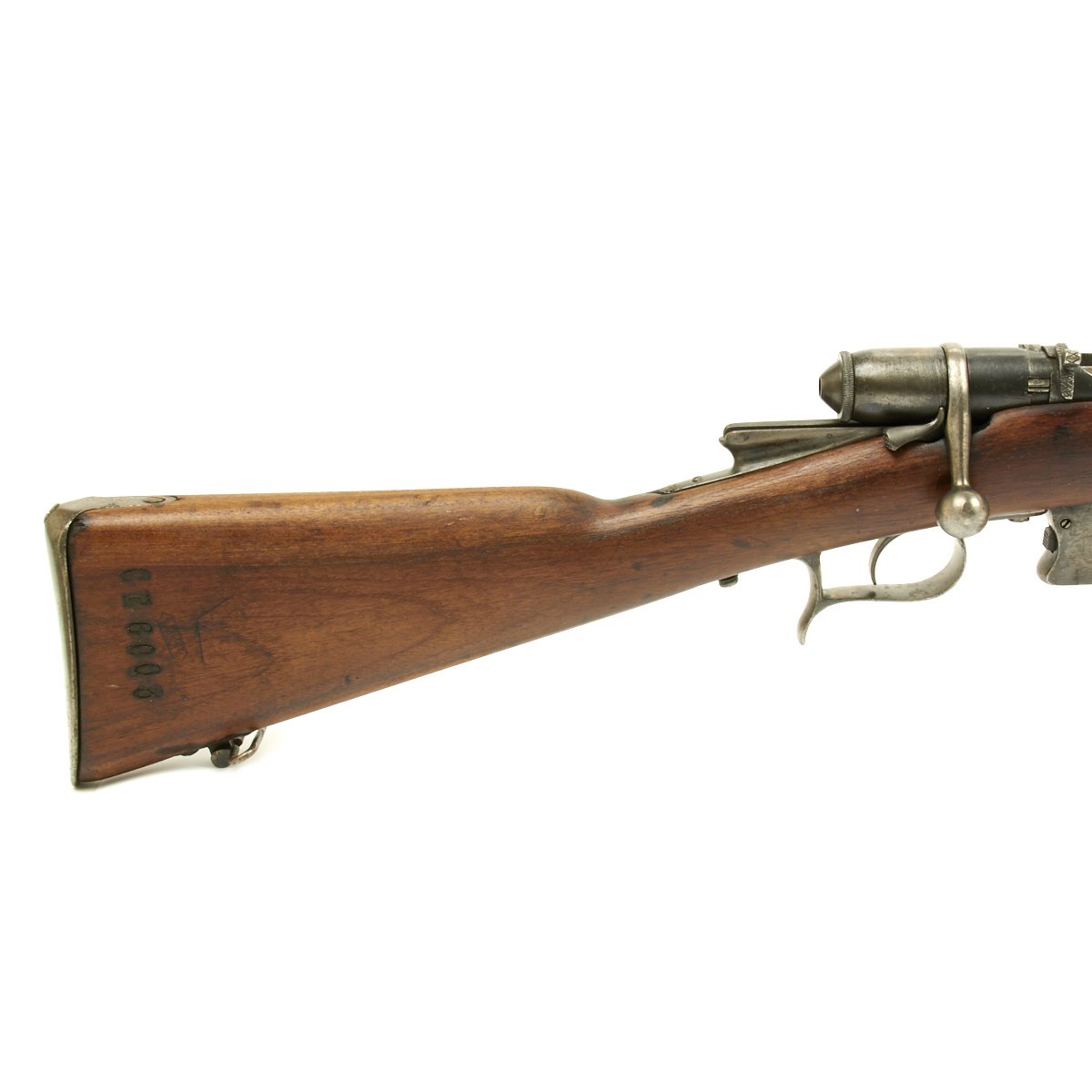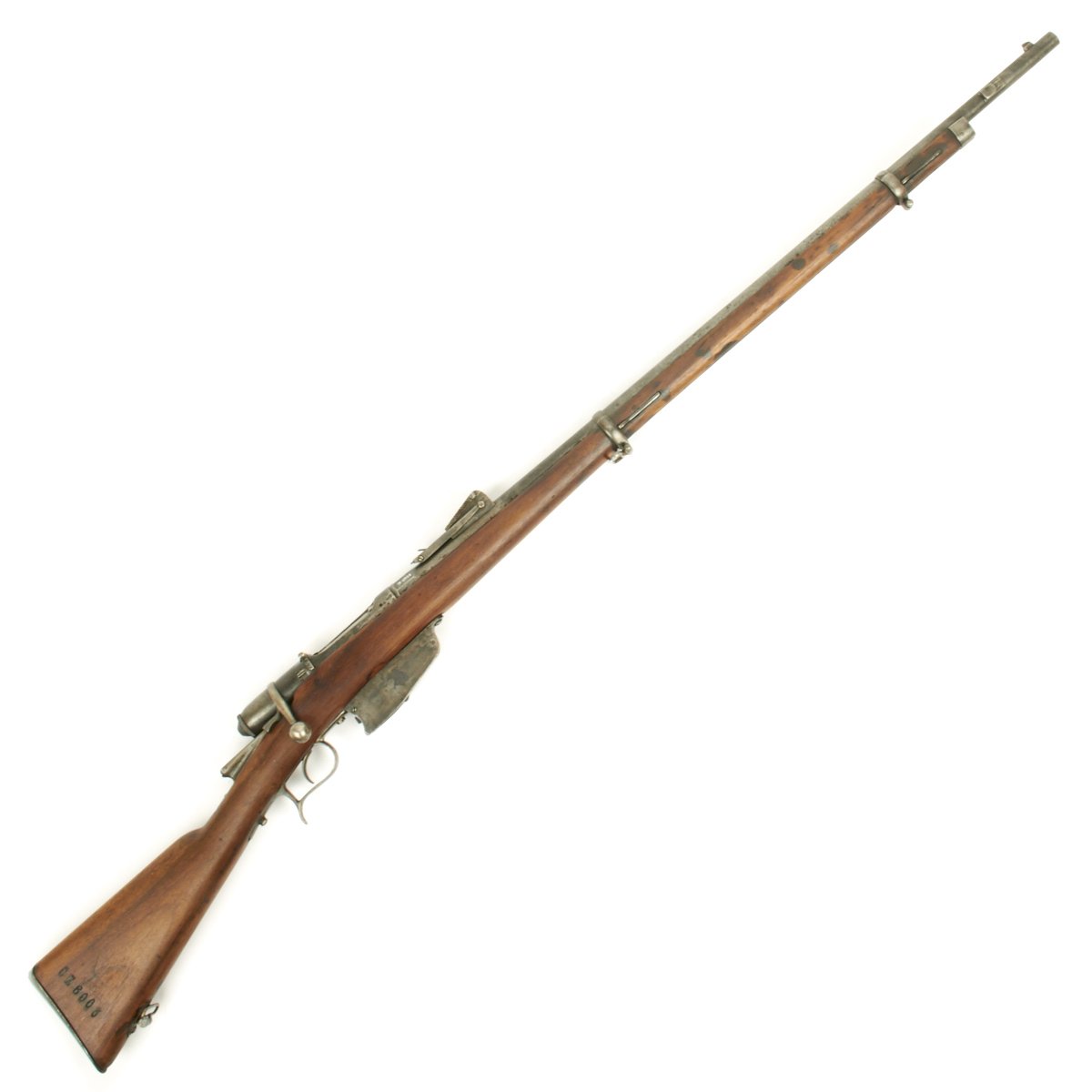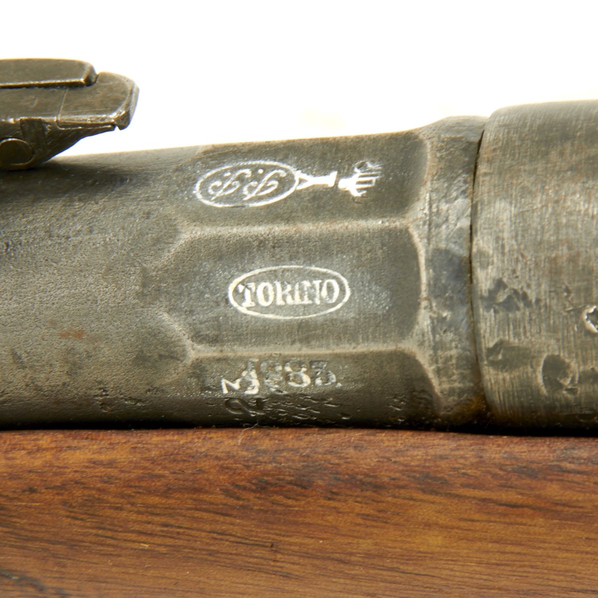 This example bears serial number CE 6003 on the barrel and stock, and is offered in very good condition. It is marked TORINO over an 1883 date on the barrel knoxform, indicating manufacture at the Turin (Torino) Arsenal in 1883. Mechanically in excellent condition with a nice crisp bore that has a bright finish and clear lands and grooves. Stock is in good shape,though it does have some staining from age, and the cleaning rod is unfortunately missing.