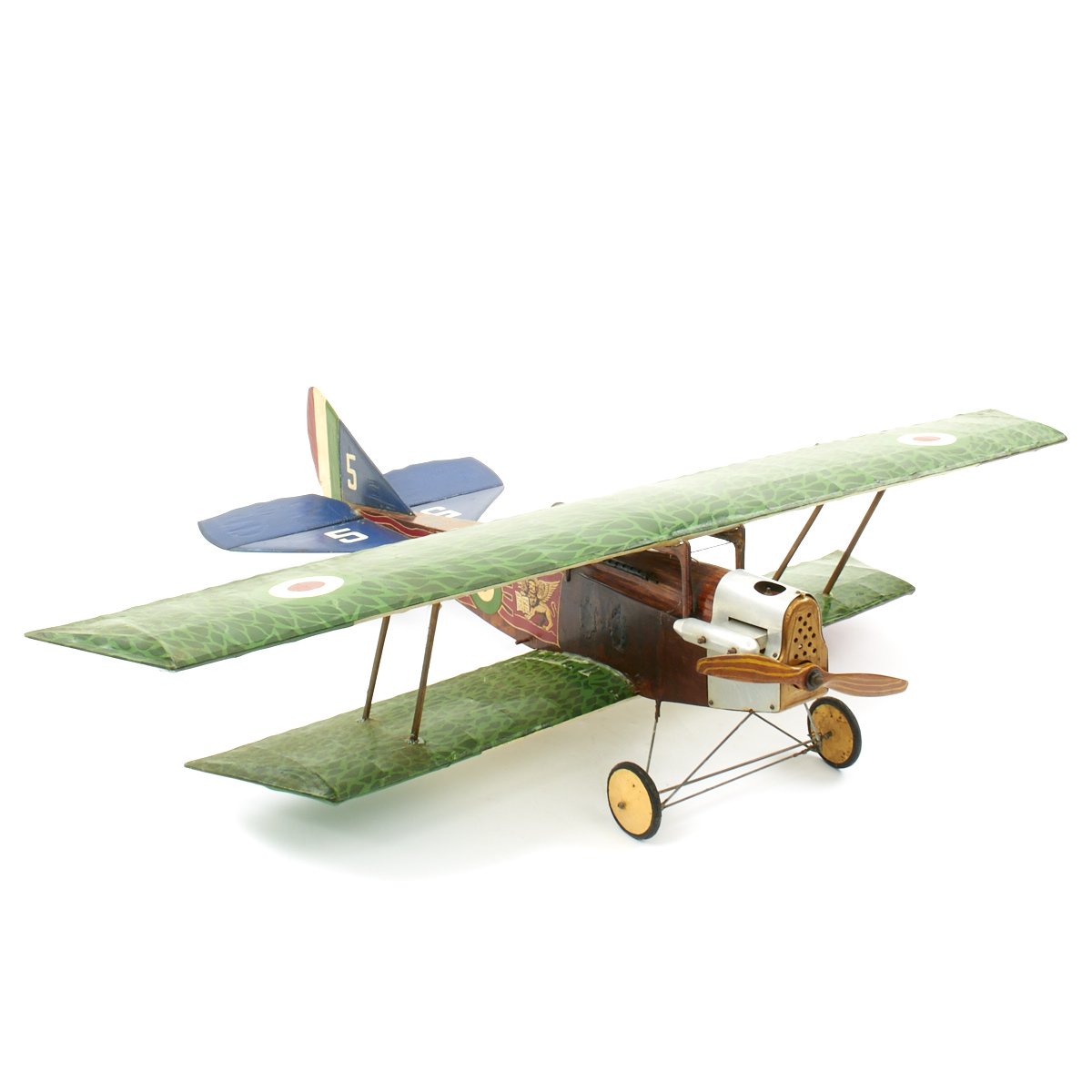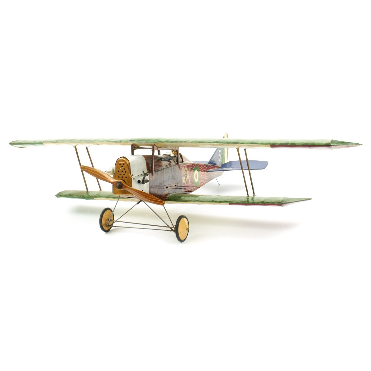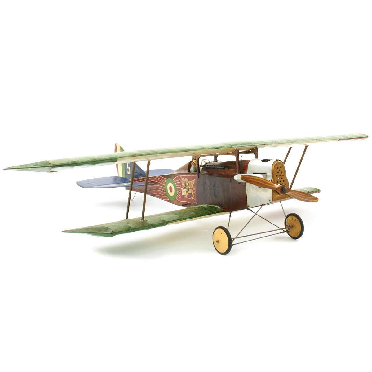 Original Item: Only One Available. This is an incredible custom hand made model World War One Royal Aircraft Ansaldo SVA biplane that was constructed, we were told, as set decoration for the 1927 film WINGS. It is uses period materials (wood, canvas, wire, etc) and construction methods and is built to exacting detail. The plane measures 47" (wingspan) x 38" (tail to propeller) x 10" (tall). It is offered in excellent condition and even has a small Vickers mounted to the port side of the fuselage in front of the cockpit just like the original Ansaldo SVA fighter plane. The pilot, cockpit, and paint design are all highly detailed, making this a truly unique and wonderful display.