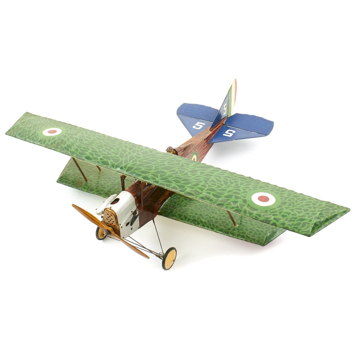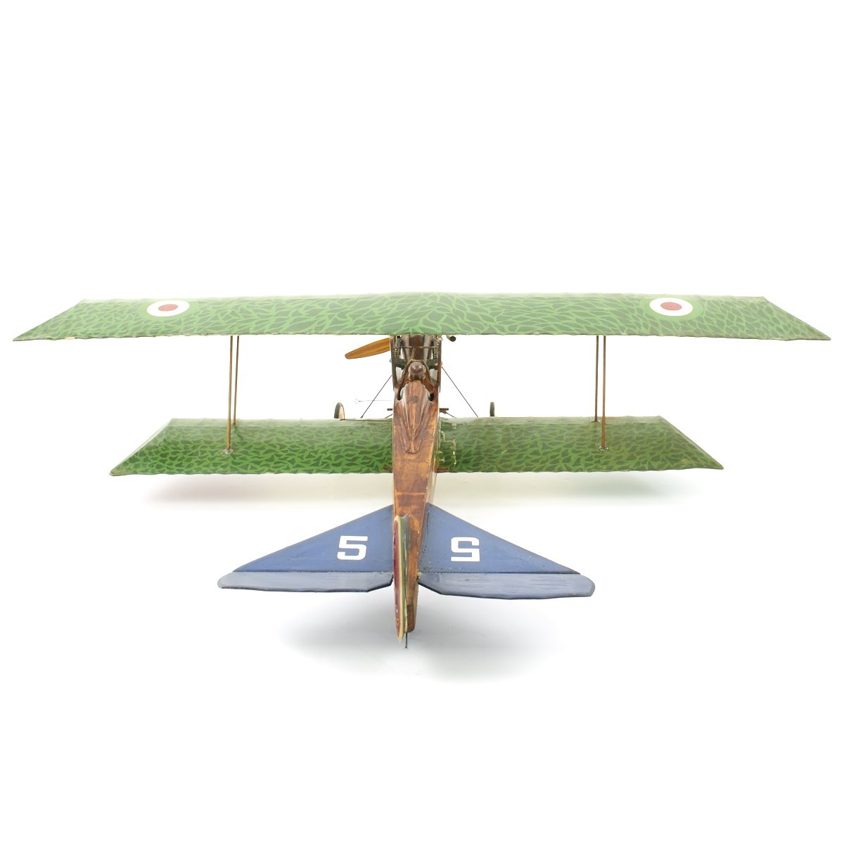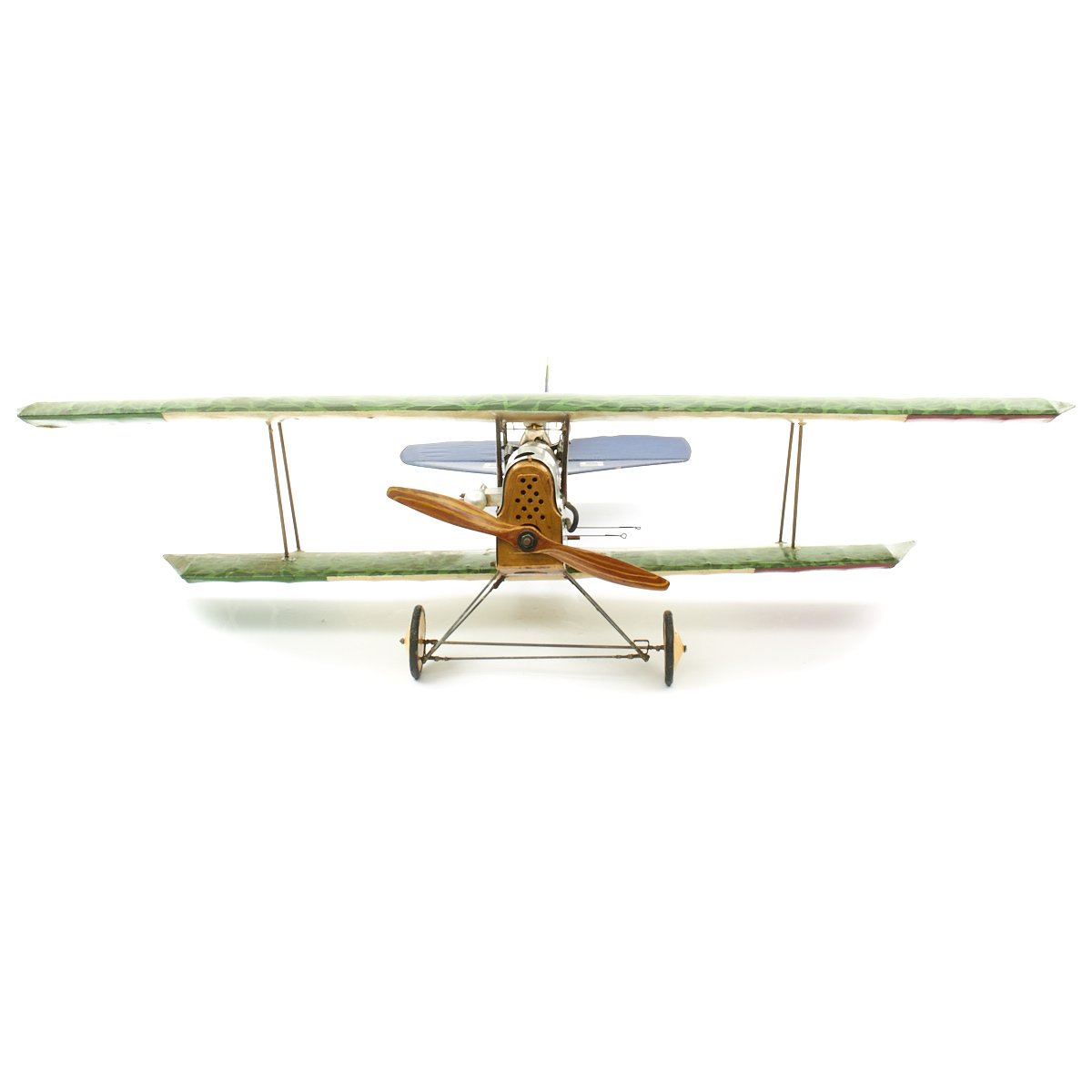Original Item: Only One Available. This is an incredible custom hand made model World War One Royal Aircraft Ansaldo SVA biplane that was constructed, we were told, as set decoration for the 1927 film WINGS. It is uses period materials (wood, canvas, wire, etc) and construction methods and is built to exacting detail. The plane measures 47" (wingspan) x 38" (tail to propeller) x 10" (tall). It is offered in excellent condition and even has a small Vickers mounted to the port side of the fuselage in front of the cockpit just like the original Ansaldo SVA fighter plane. The pilot, cockpit, and paint design are all highly detailed, making this a truly unique and wonderful display.
