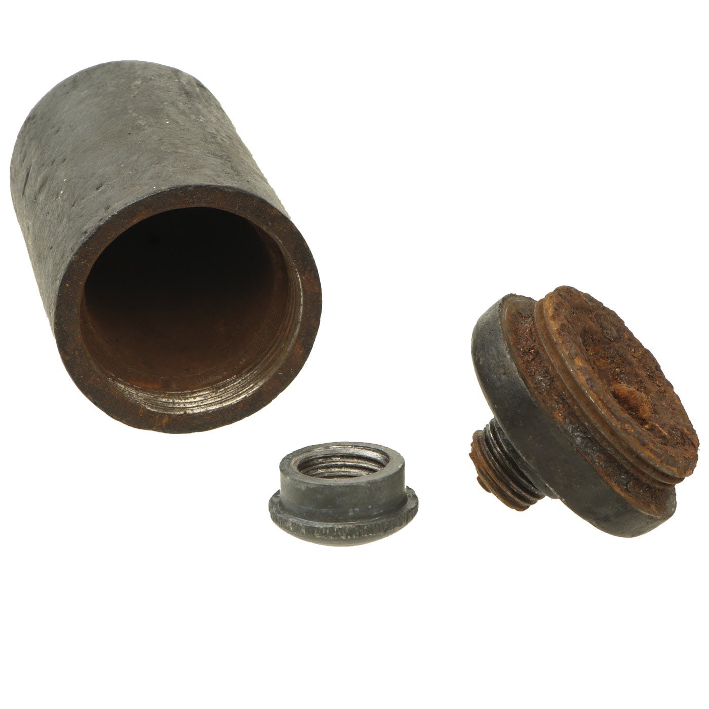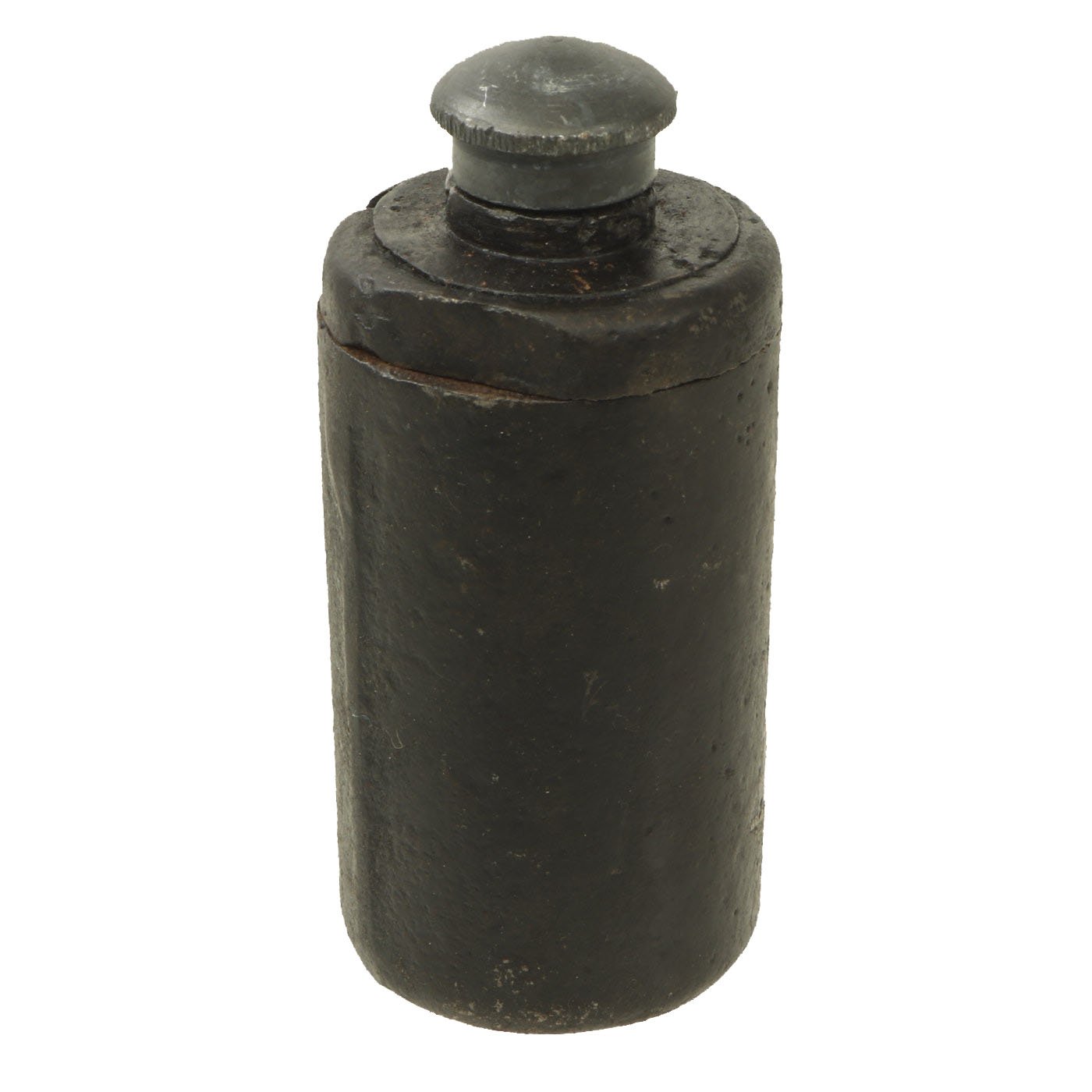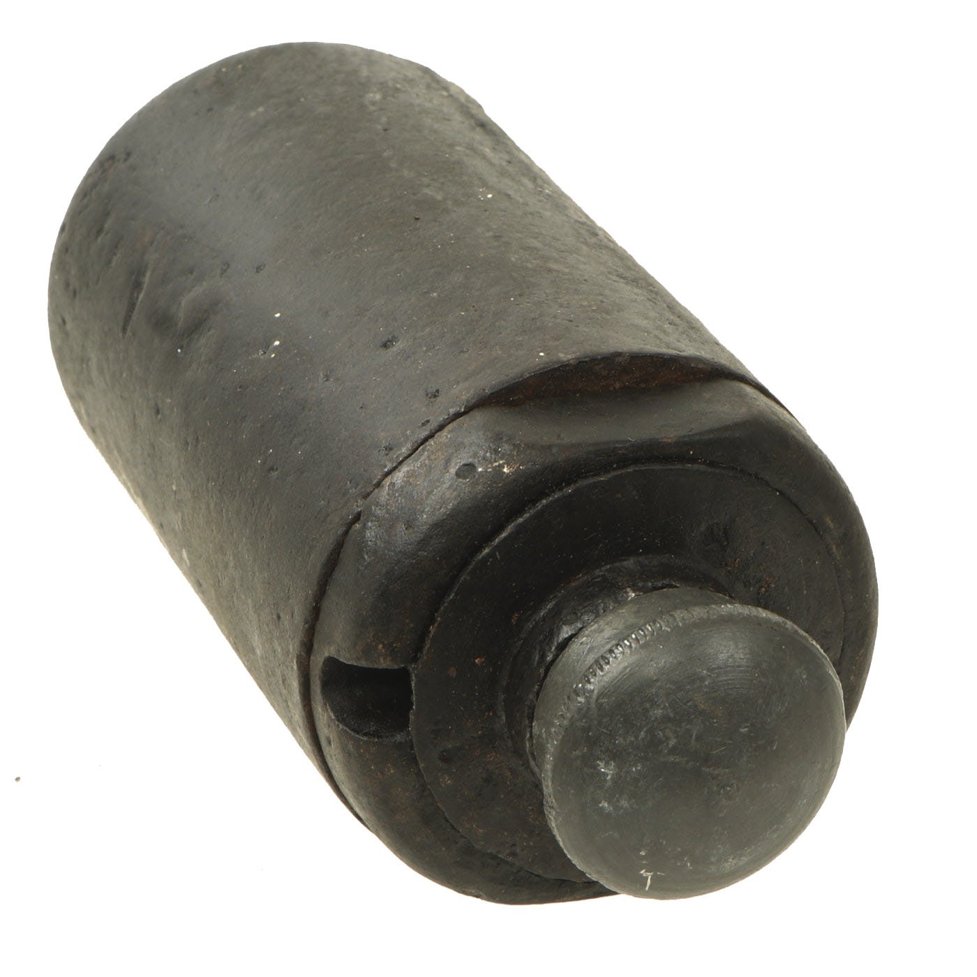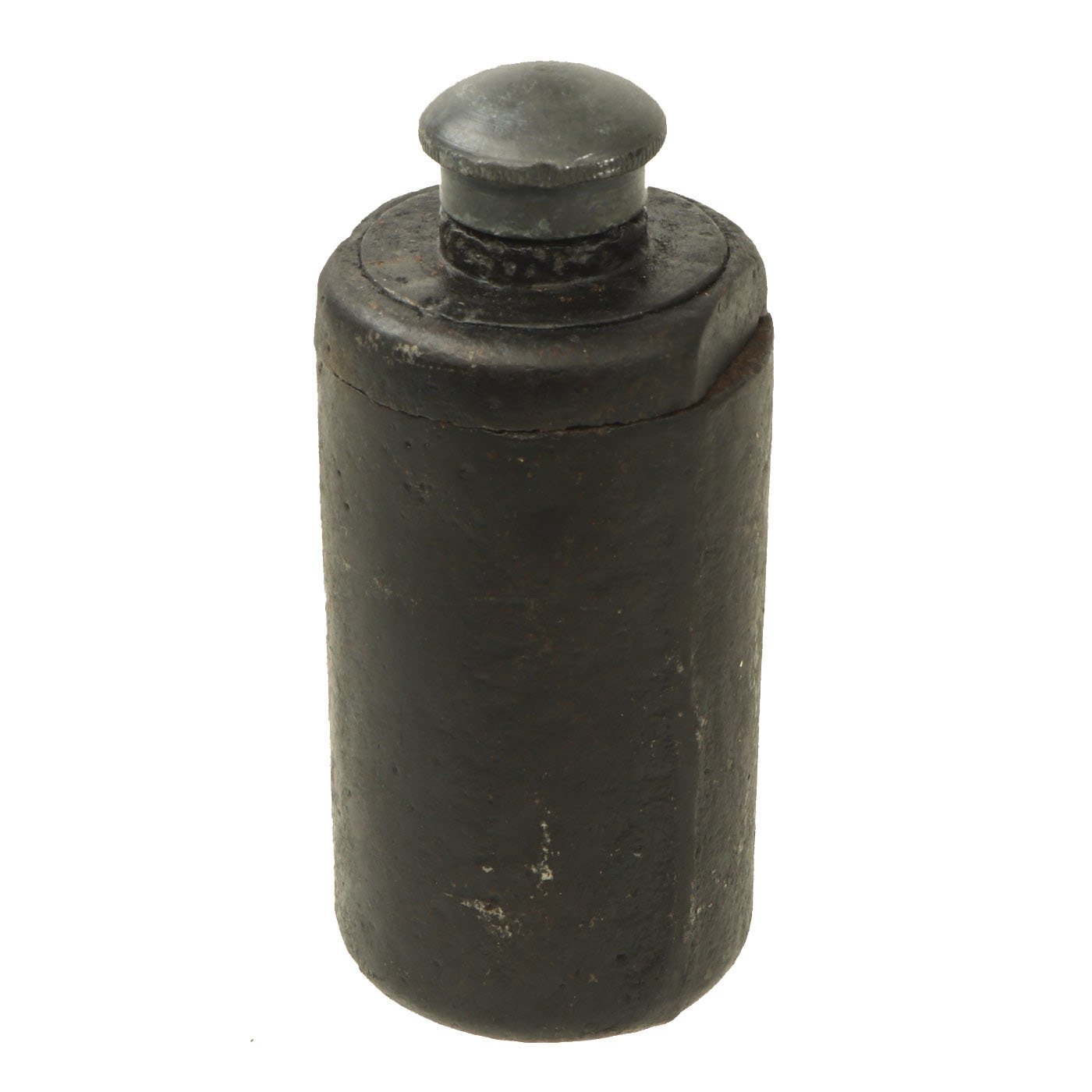The Italian WWI BPD Grenade was mostly used on the Austro-Italian front during WWI, where most examples have been found. The BPD has a cylindrical cast body with a threaded cover on the top. This cover protects the fuze, which had to be struck to a hard surface to ignite the delay. The grenade was filled with explosives, with a guncotton core to distribute the ignition.