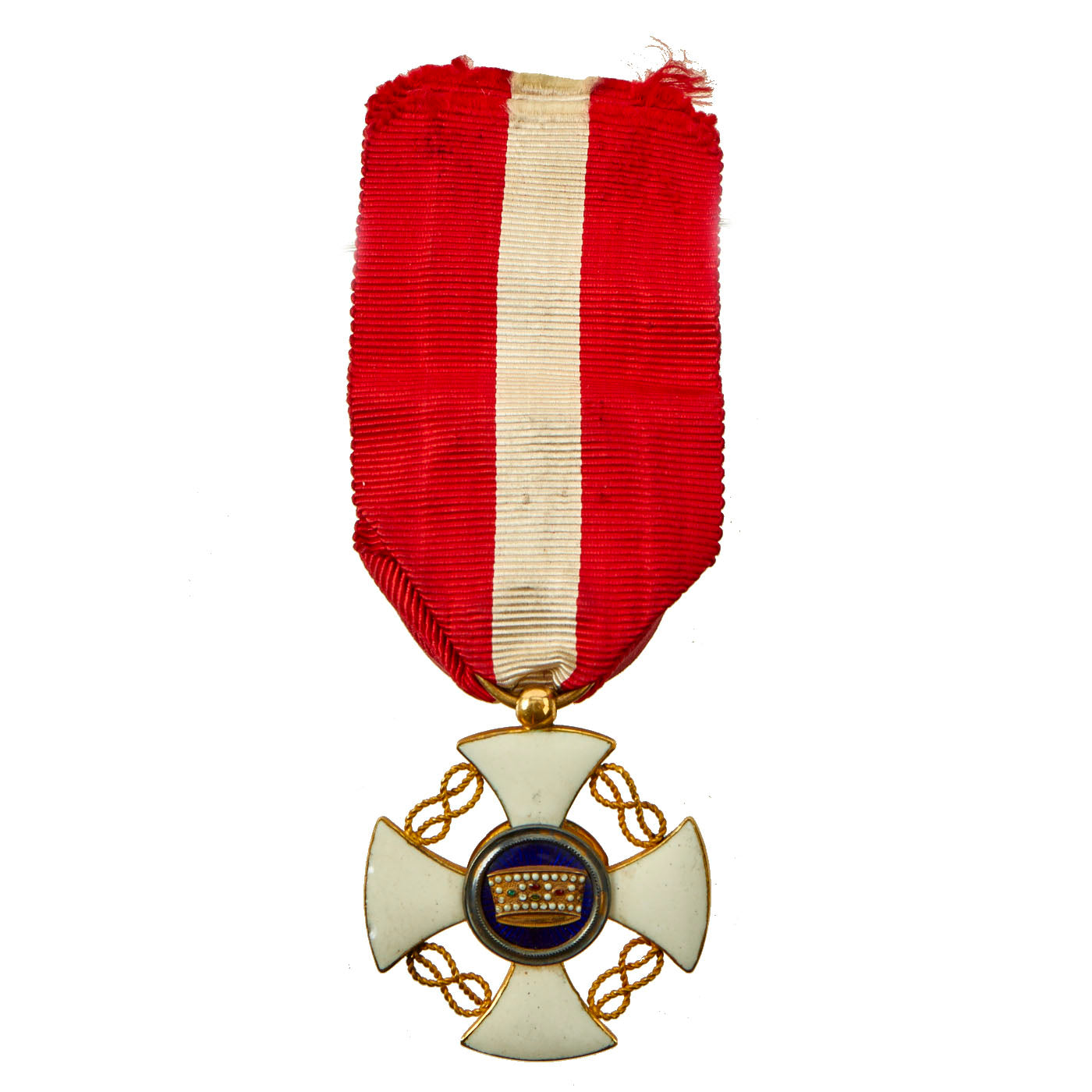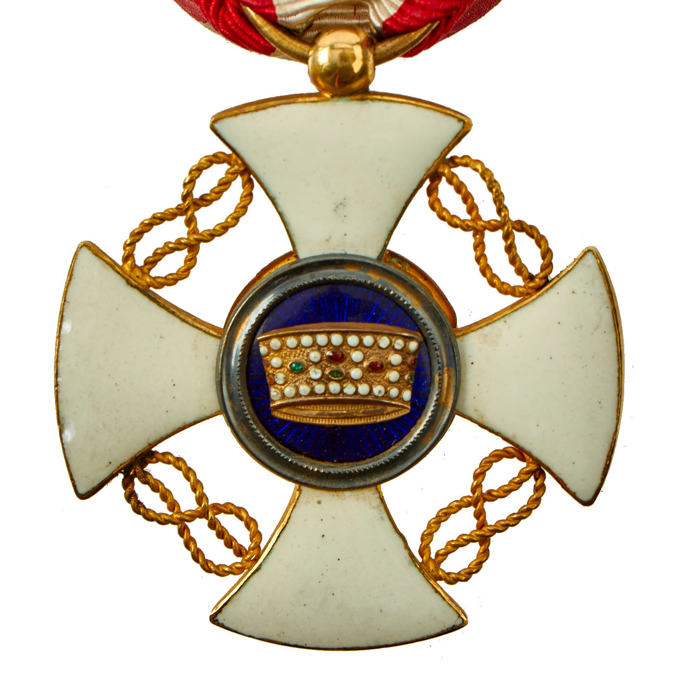 Original Item: Only One Available. This is a lovely example of a genuine WWI era Officer Order of the Crown of Italy with its original presentation box. The Order of the Crown of Italy was founded as a national order in 1868 by King Vittorio Emanuele II, to commemorate the unification of Italy in 1861. It was awarded in five degrees for civilian and military merit.