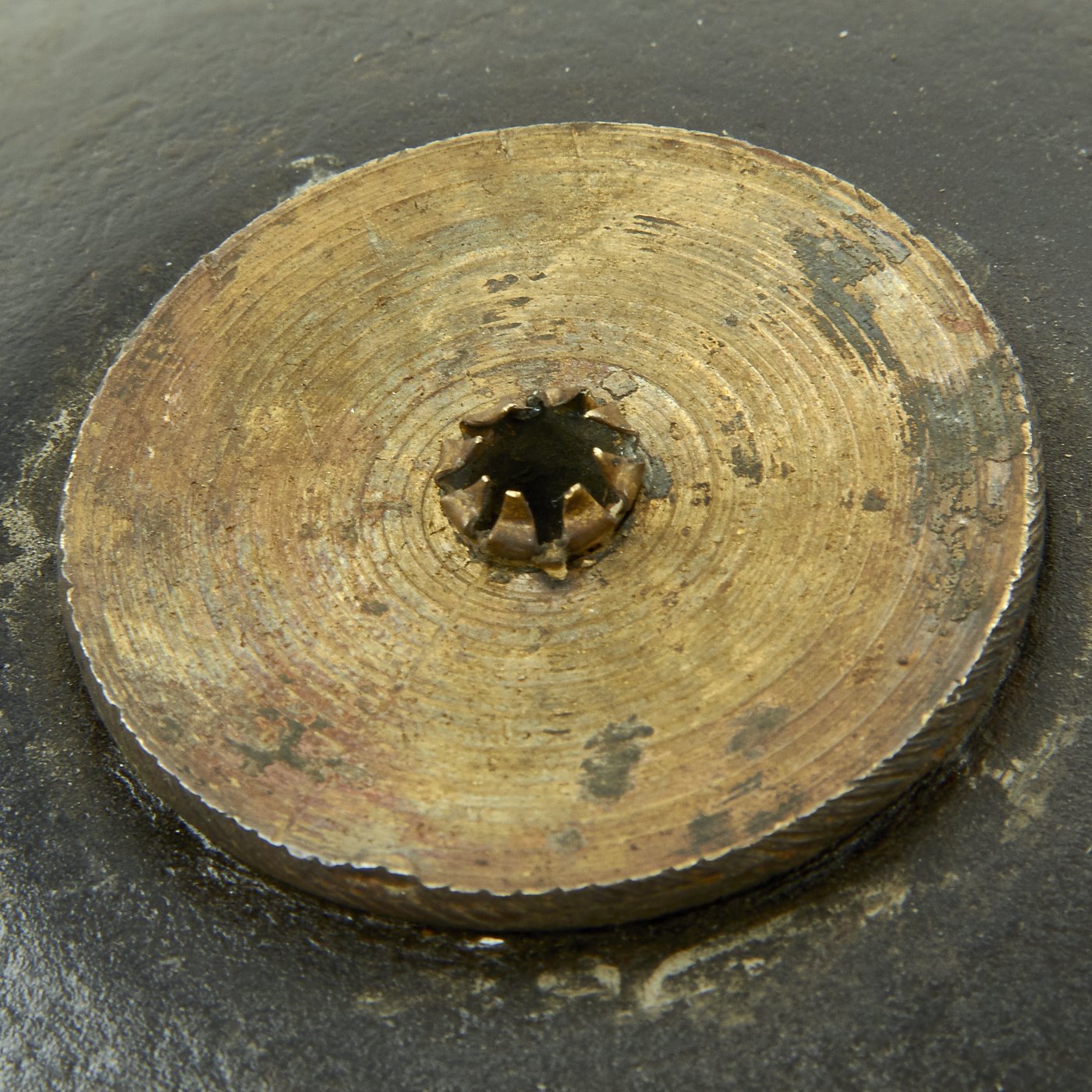 As the name suggests, these grenades have a lenticular "biconvex" shape, just like the discus thrown in Track & Field events. The grenade was also thrown the same way, with the spin imparted aiding in the stability of flight. It was detonated by a cord fuze, which was held in place by the brass fuze cap. The fuze would be lit before throwing, and would hopefully be timed right so it detonated soon after landing.