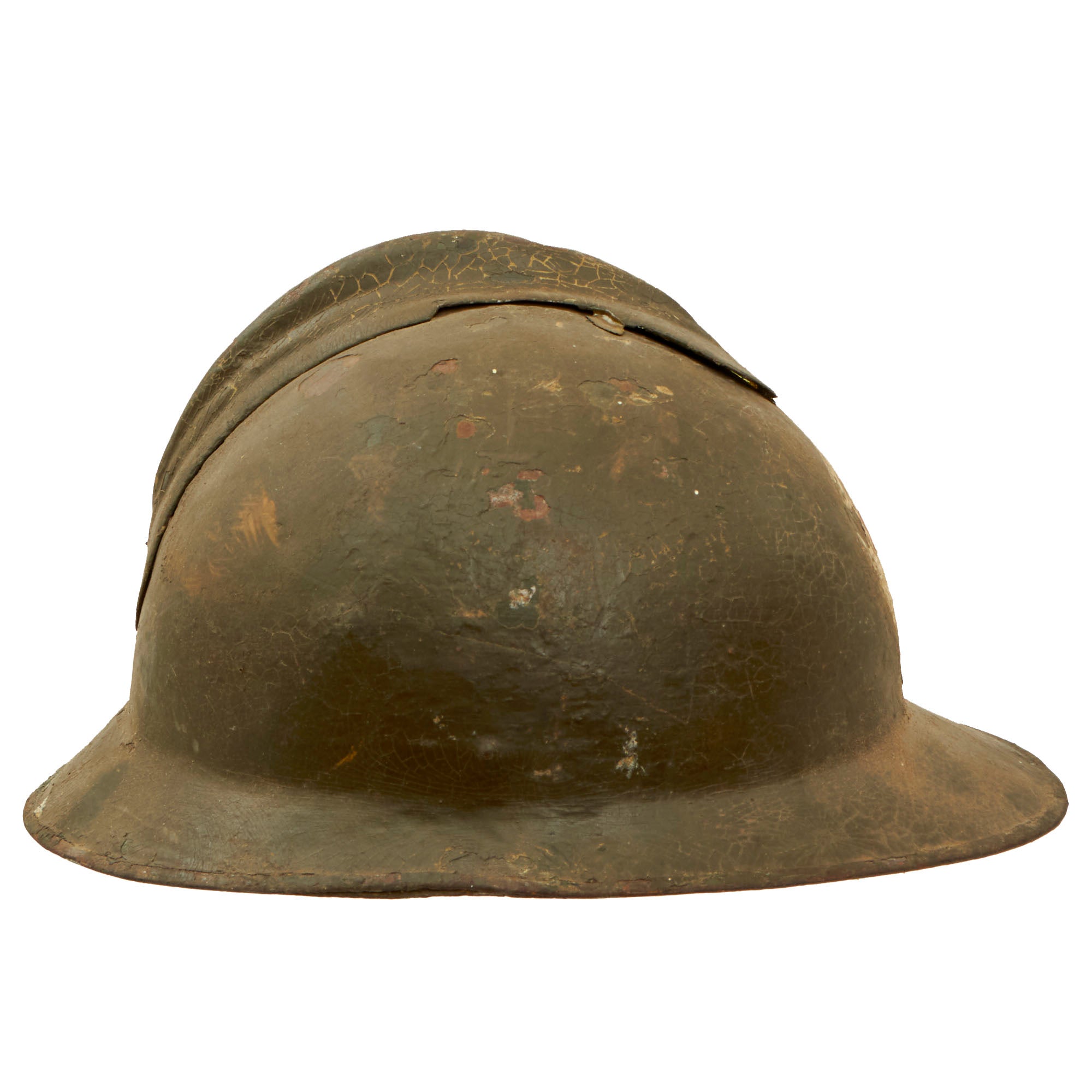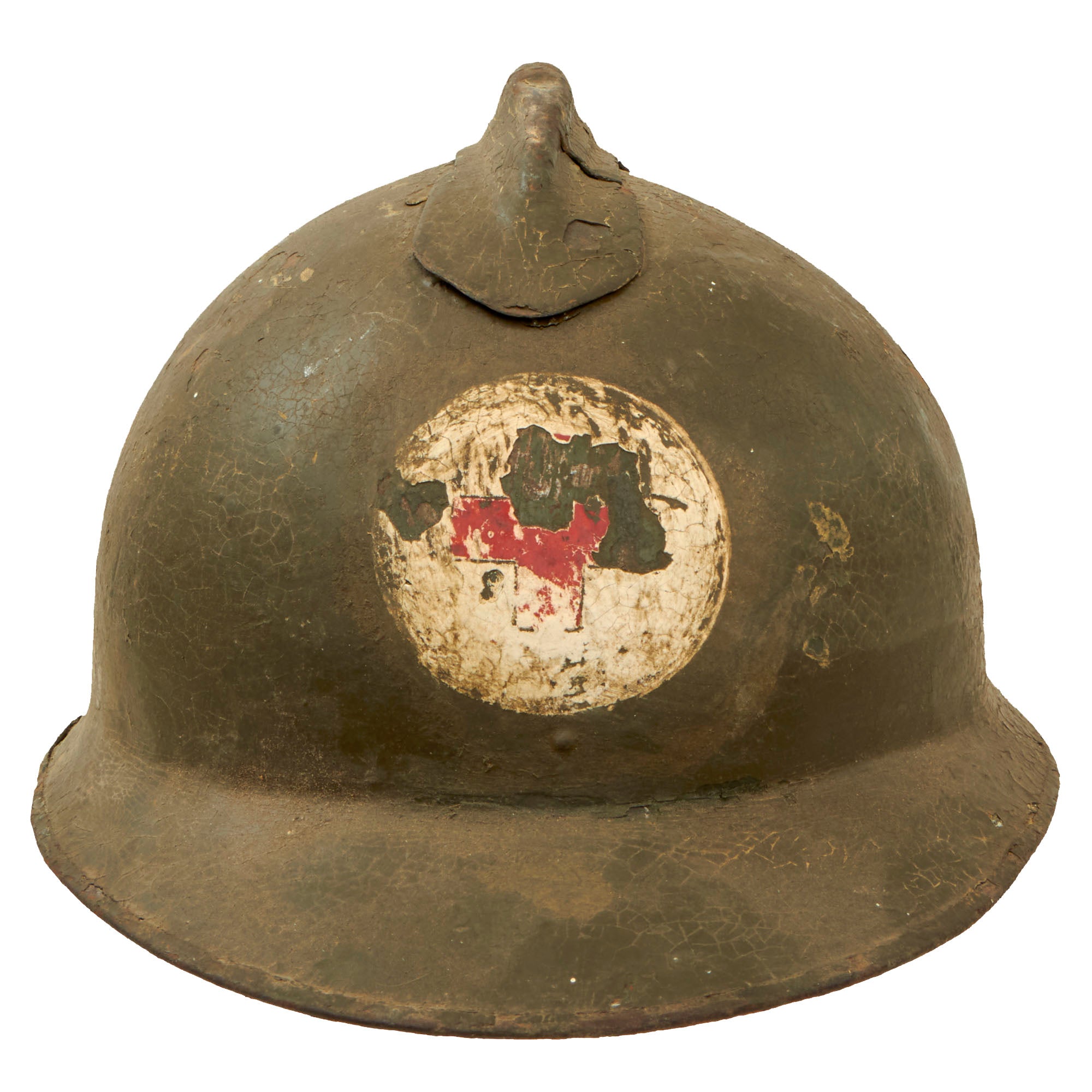 Original Item: Only One Available. This is a very nice genuine World War I Model 1916 Italian Army Medic’s "Adrian" helmet, referred to in official documents as the Modello Lippmann helmet after its designer. Initially during the war, Italy utilized Adrian Model 1915 helmets produced under contract by the French. These early war contract helmets were essentially identical to the regular French M1915 Adrian helmets, however they were painted green, instead of the "Horizon Blue" that the French used.