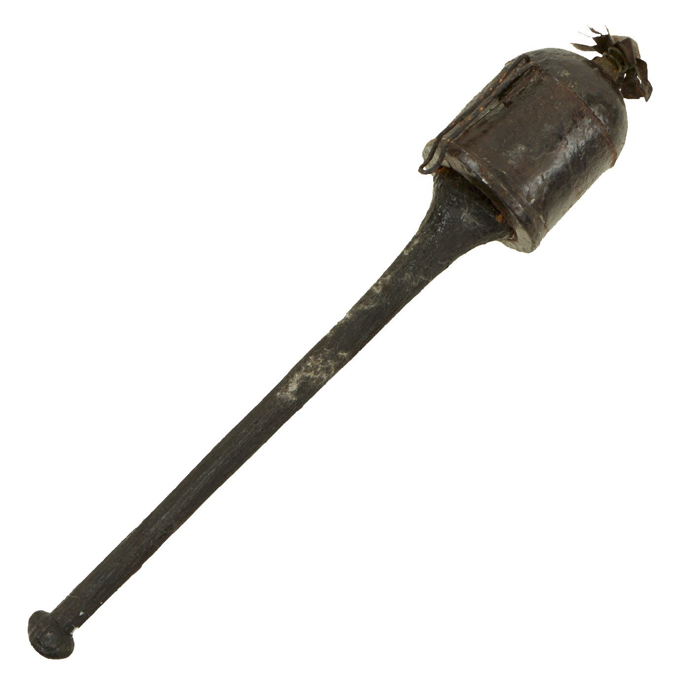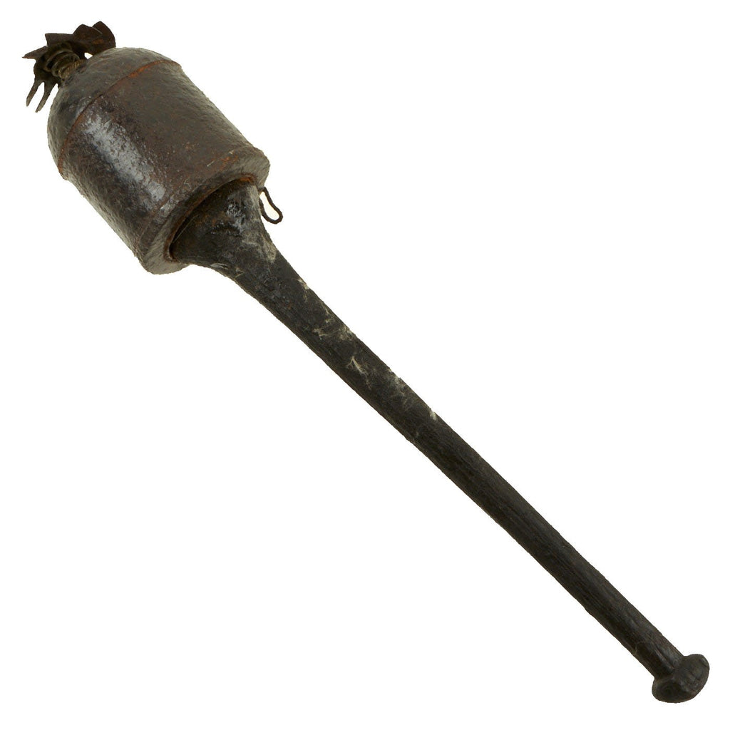 Original Item: Only One Available. This is a nice condition Italian WWII Excelsior-Thevenot P2 Stick Fragmentation grenade, a very rare grenade to find, offered in totally inert condition. The grenade, often nicknamed "Ballerina", is definitely an interesting design, and this is the first example we have even seen.