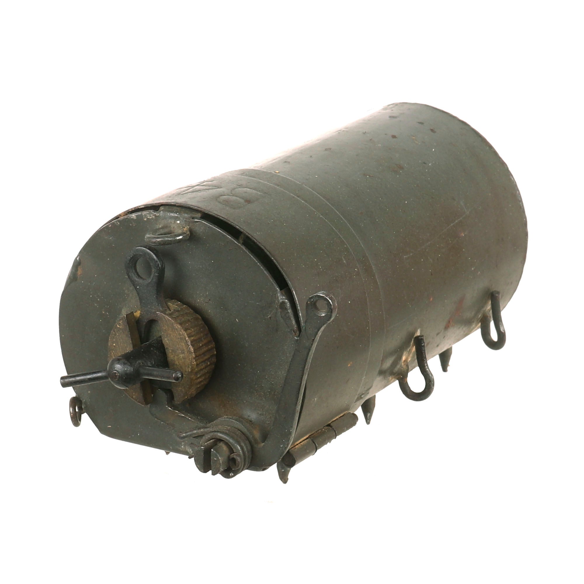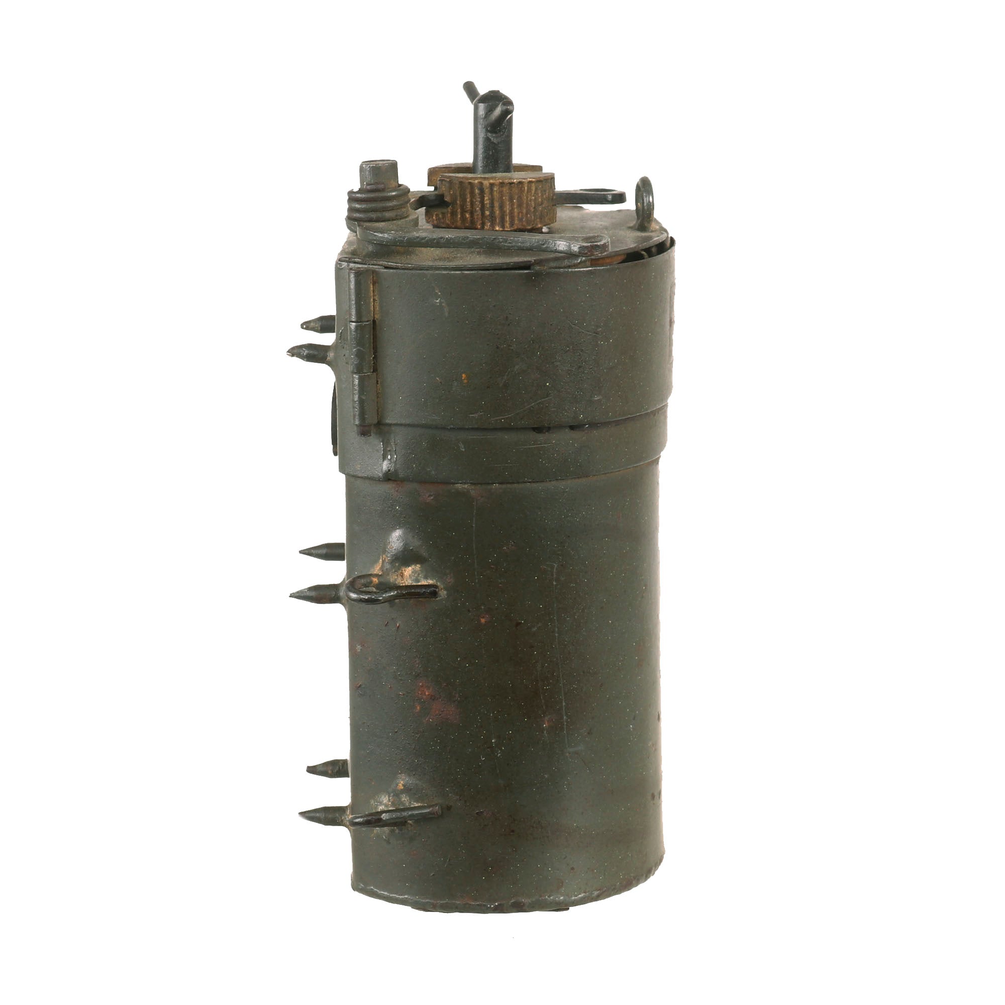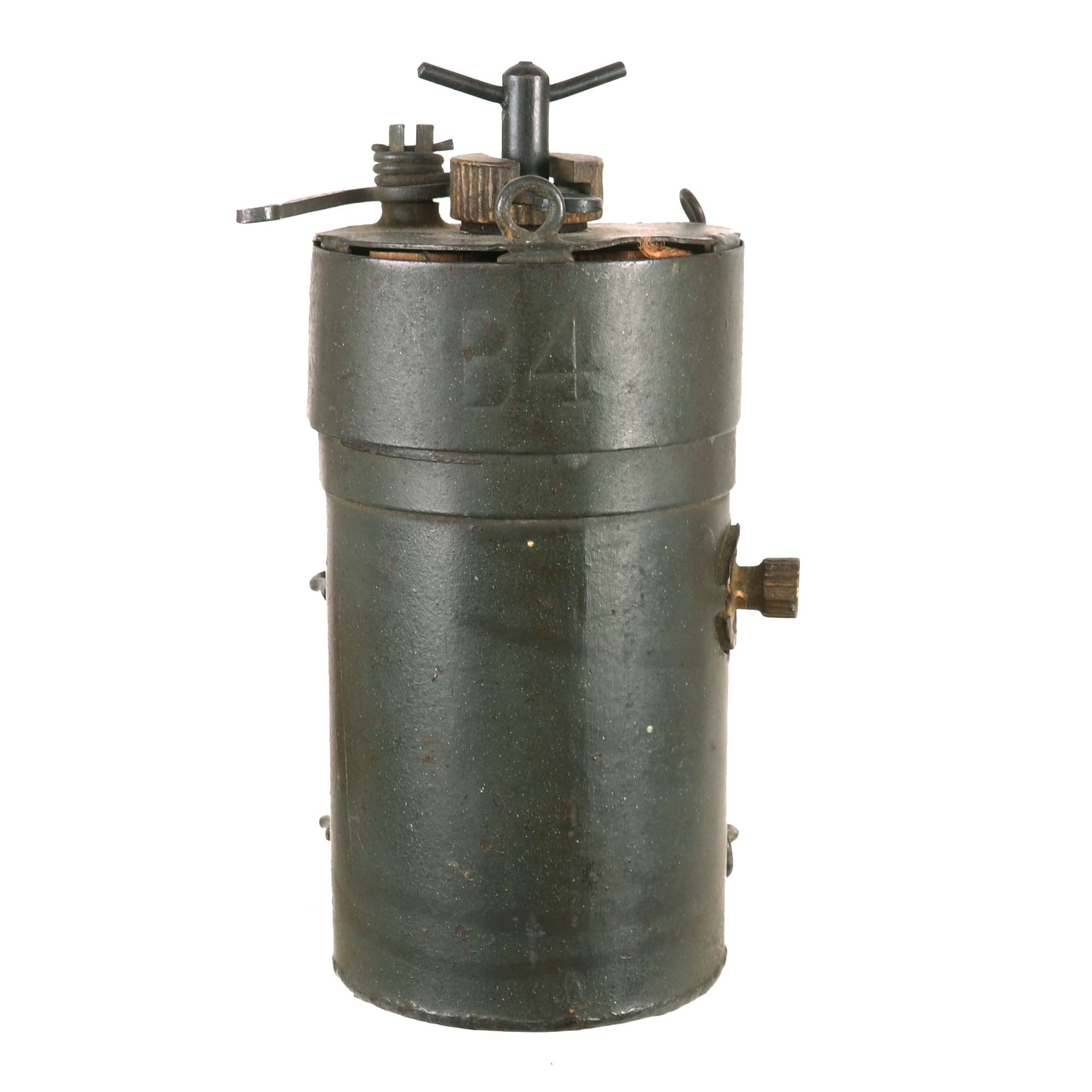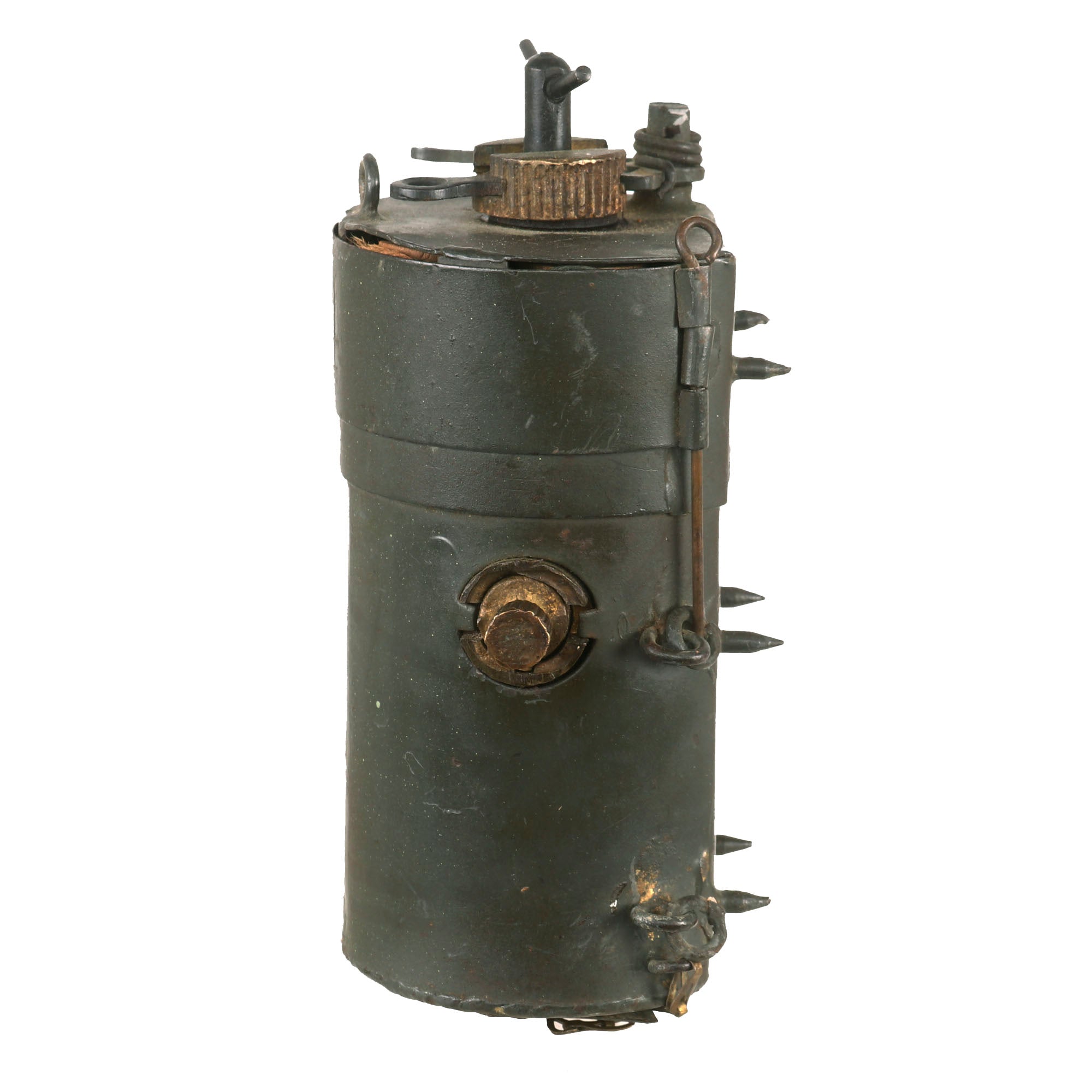 Original Item. Only One Available. The Vaudagna B4 is an Italian WWII era antipersonnel mine, based on the German S-Mine. Unlike the German counterpart, the B4 lacks the propellant charge underneath, so it was generally fixed to a tree or a post rather than being buried in the ground. This is the first example we have had the pleasure to offer. Like all deactivated ordnance, this example is Not Available for Export.