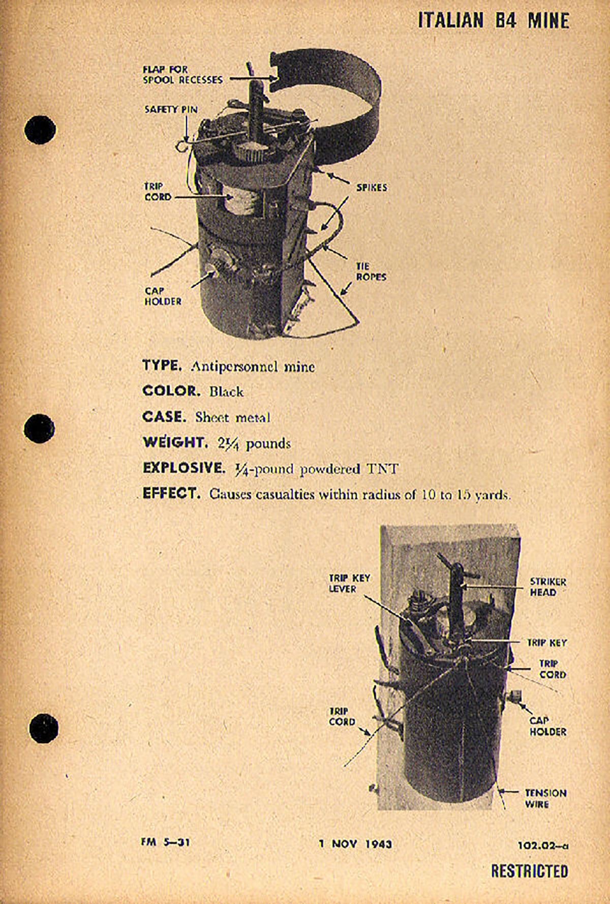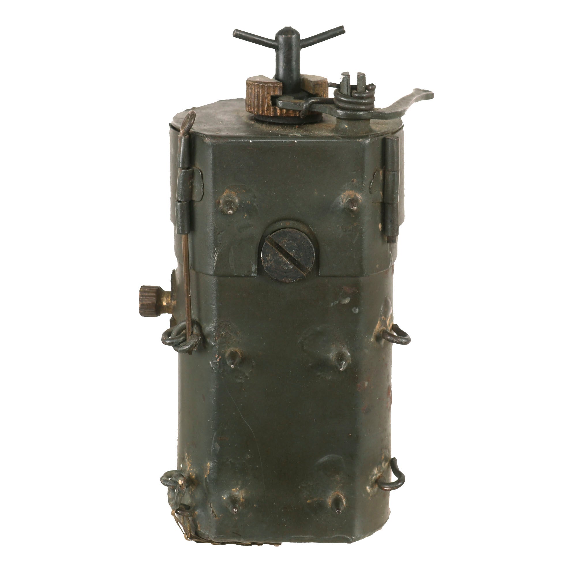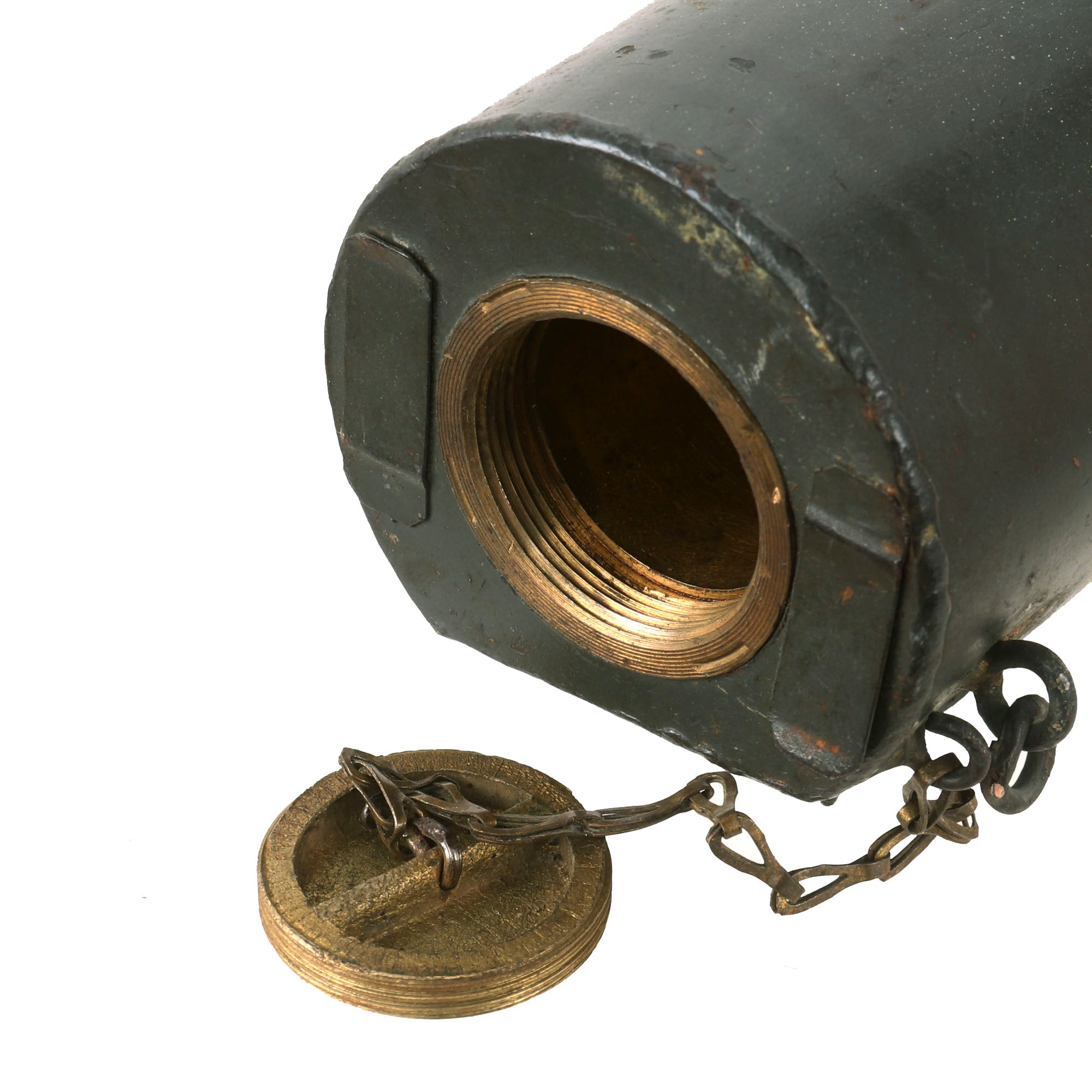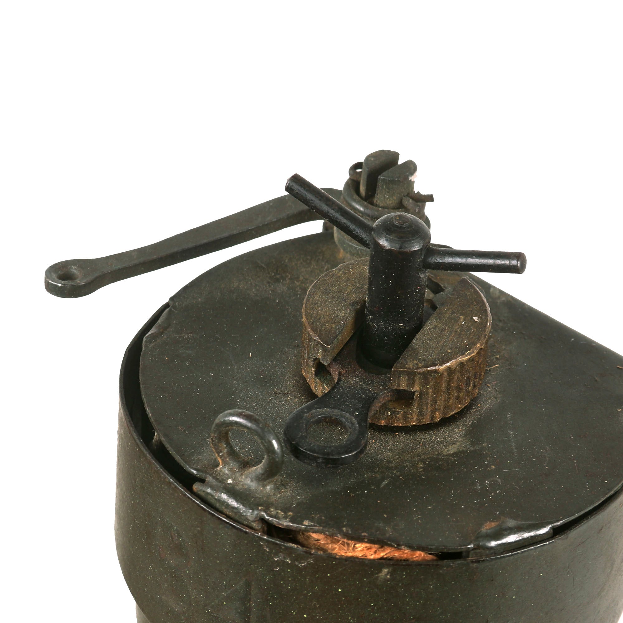 Original Item. Only One Available. The Vaudagna B4 is an Italian WWII era antipersonnel mine, based on the German S-Mine. Unlike the German counterpart, the B4 lacks the propellant charge underneath, so it was generally fixed to a tree or a post rather than being buried in the ground. This is the first example we have had the pleasure to offer. Like all deactivated ordnance, this example is Not Available for Export.