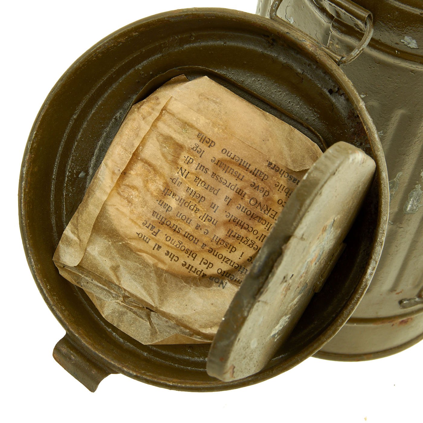 Original Items: Very Few Available. Genuine Italian M31 gas masks still is supple with all straps and, remarkably, a set of Anti-fogging disk inserts with instructions in Italian. The masks are in very good to excellent condition. Filter are unused / unopened by DAGSA, but most have been refurbished for further use and stamped with early 1960s dates. Also included are genuine canisters. Size III masks get German WWII gas mask canisters that have been repainted in matching Italian brown. Wonderful World War Two manufactured sets were re-issued but not used in the 1960s.
