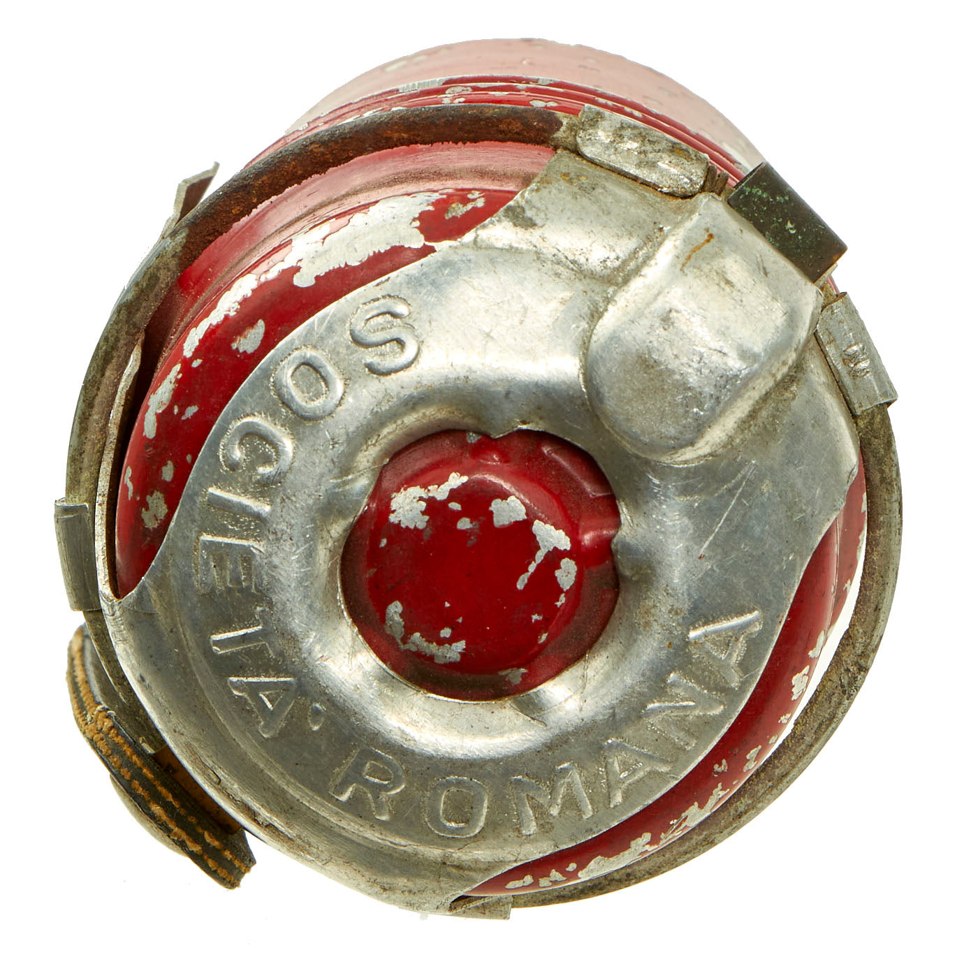Officially called Italian Bomba a Mano Mod. 35, these were a series of high explosive hand grenades used by the Italian Army during World War II. There were three main variation which were apparently developed more or less simultaneously and all have same numerical designation; Mod.35. They are offensive types of thin sheet metal construction (mostly aluminum) with All-ways impact fuzes. Painted a vivid red and having a notorious reputation of being dangerous when found in an unexploded condition they were nicknamed "Red Devils" by the British during the 1941-42 desert campaigns. The SCRM version was definitely the most advanced of the various models, and this version continued to be used up into the 1970s.