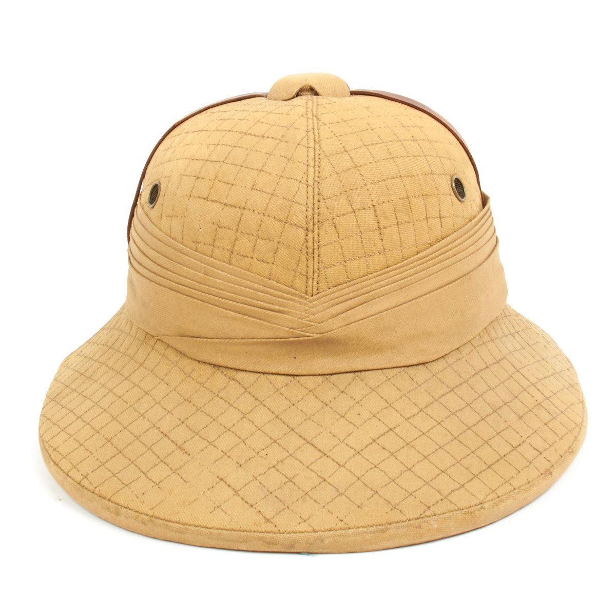 Originally dubbed the Cawnpore Tent Club hat, it was popularized by the Prince of Wales’ visit to India 1875-76. From the First World War to the 1930s the helmet was chosen by fashion thinking British Officers, but in 1938 the Commander-in-Chief India dictated that the Cawnpore Tent Club helmet along with the Wolseley were to be phased out in favor of the Khaki Solar Pith Hat.