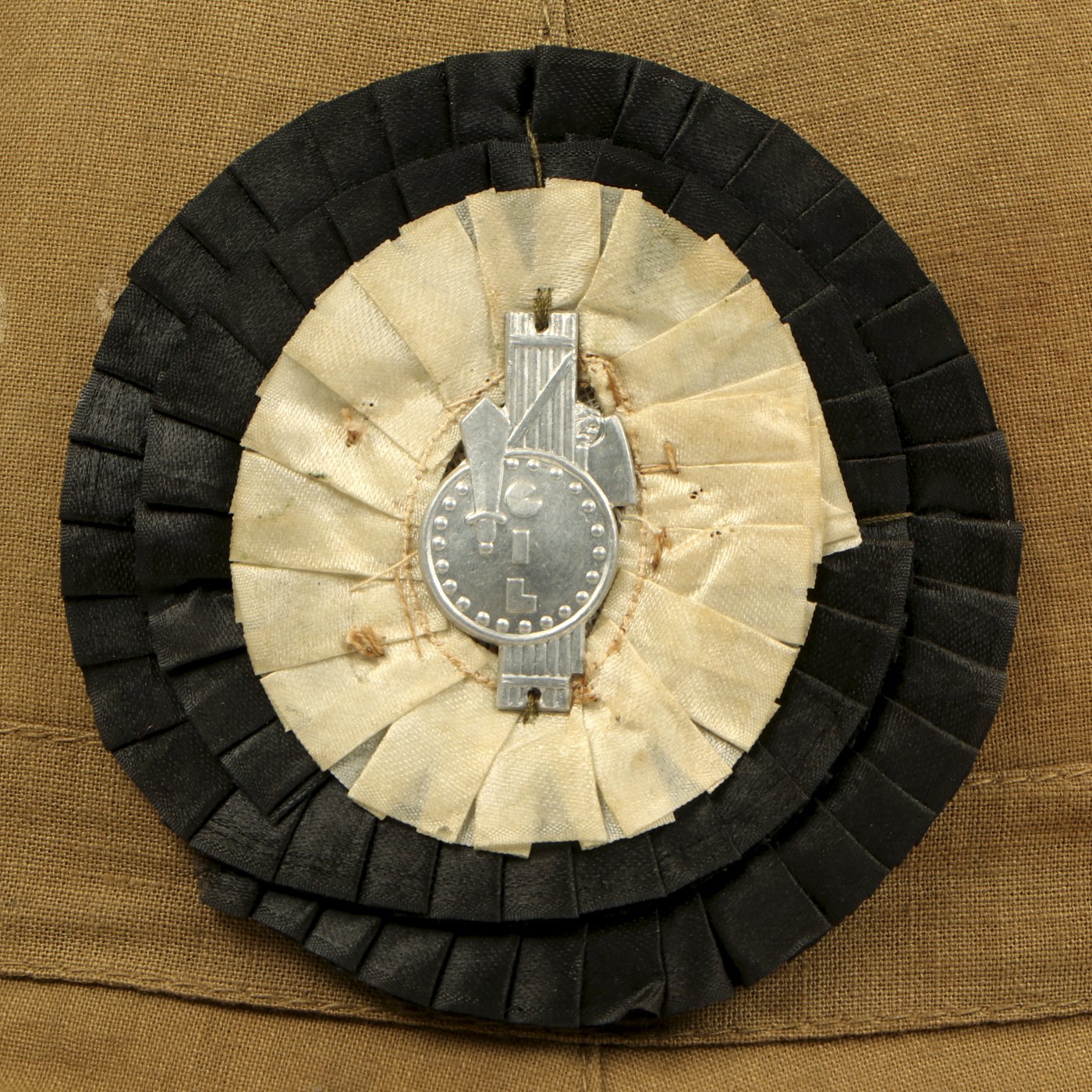 Original Item: Only One available. This is an very nice service worn condition example of an Italian model 1928 tropical sun helmet (first version pre-WW2). Overall a hard to find display helmet of an item used during the North African campaign by an Italian soldier who most probably came under the command of Rommel's Africa Korps. The front of the helmet has a very nice black and white cockade, and in the center is an Italian Fascist GIL badge, for the Gioventu Italiano Del Littorio (Italian Youth of the Lictor). This was basically the Italian "Black Shirts" Fascist youth organization, intended to indoctrinate. Most likely the owner of this helmet had been a member, and kept it as a memento.