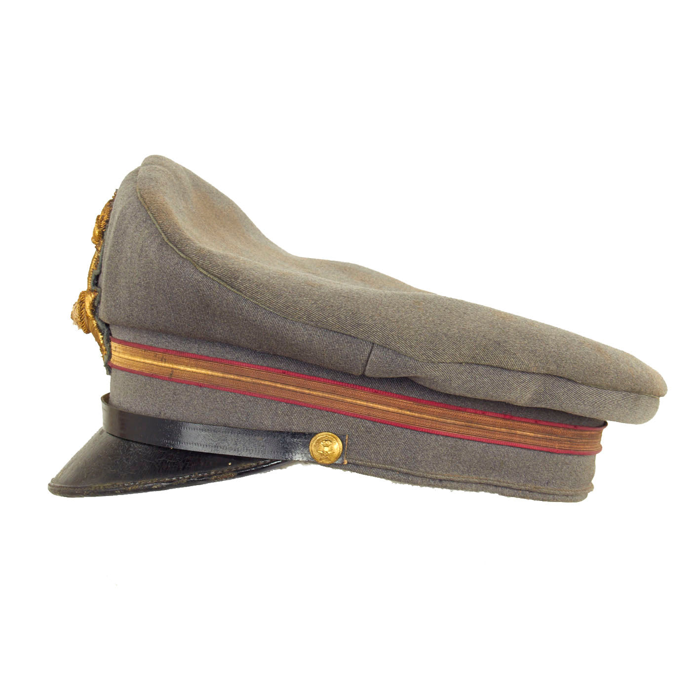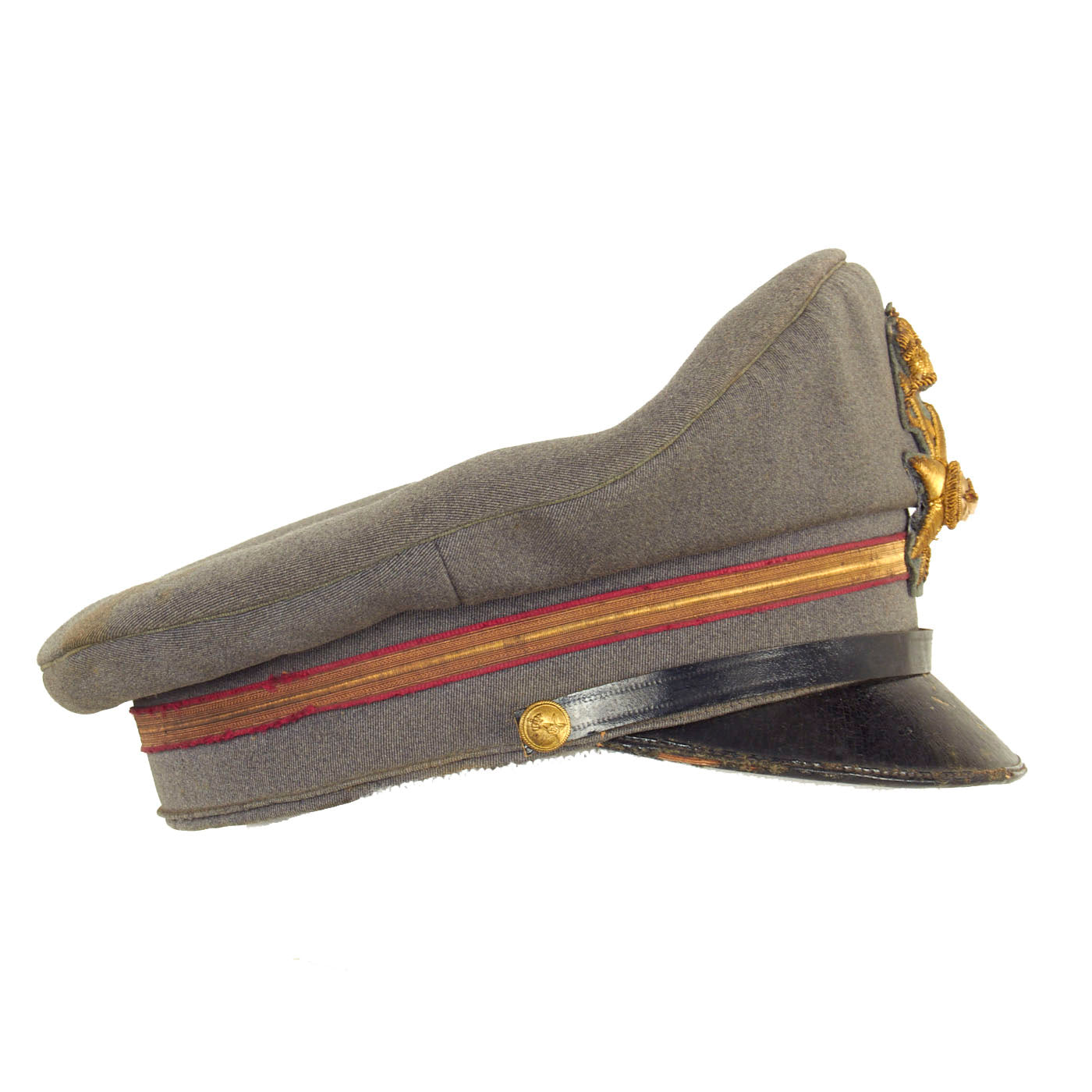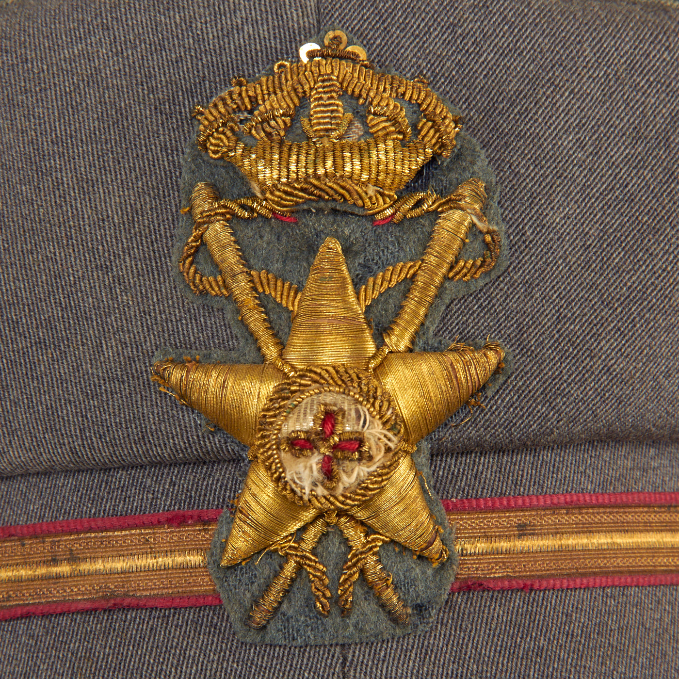 Original Item: Only One Available. This is a lovely example of a complete visor with bullion insignia for an Italian Royal Army Medical Officer. In March 1919 Benito Mussolini established the, Fascio di Combattimento, (Union of Combatants), political party in Milan and fascism was born in Italy. Shortly afterwards the FdC adopted the black shirts that the anarchist laborers of the Romagna region of Italy had worn previously. Mussolini was first elected as a member of the Chamber of Deputies in the general election of 1921. In a fortunate set of circumstances, due to a general strike, economic chaos and a dissatisfied populace, Mussolini was able to depose Premier Luigi Facta and was appointed as Premier by King Victor Emmanuel III following the infamous "March on Rome", on October 28TH 1922. Now with Mussolini’s Partito Nazonale Fascita, (National Fascist Party), firmly in control the black shirts were to become ubiquitous through-out Italy. A decree of February 1ST 1923 reorganized the fascist militia and introduced a new designation, MVSN, Milizia Volontaria Sicurezza Nazonale, (Volunteer National Security Militia). The Italian army had originally adopted a grey-green uniform in 1909 which remained in use until it underwent modifications in 1925. The 1925 uniform underwent further modifications in 1933 and again in 1935 and remained basically unchanged through-out WWII.