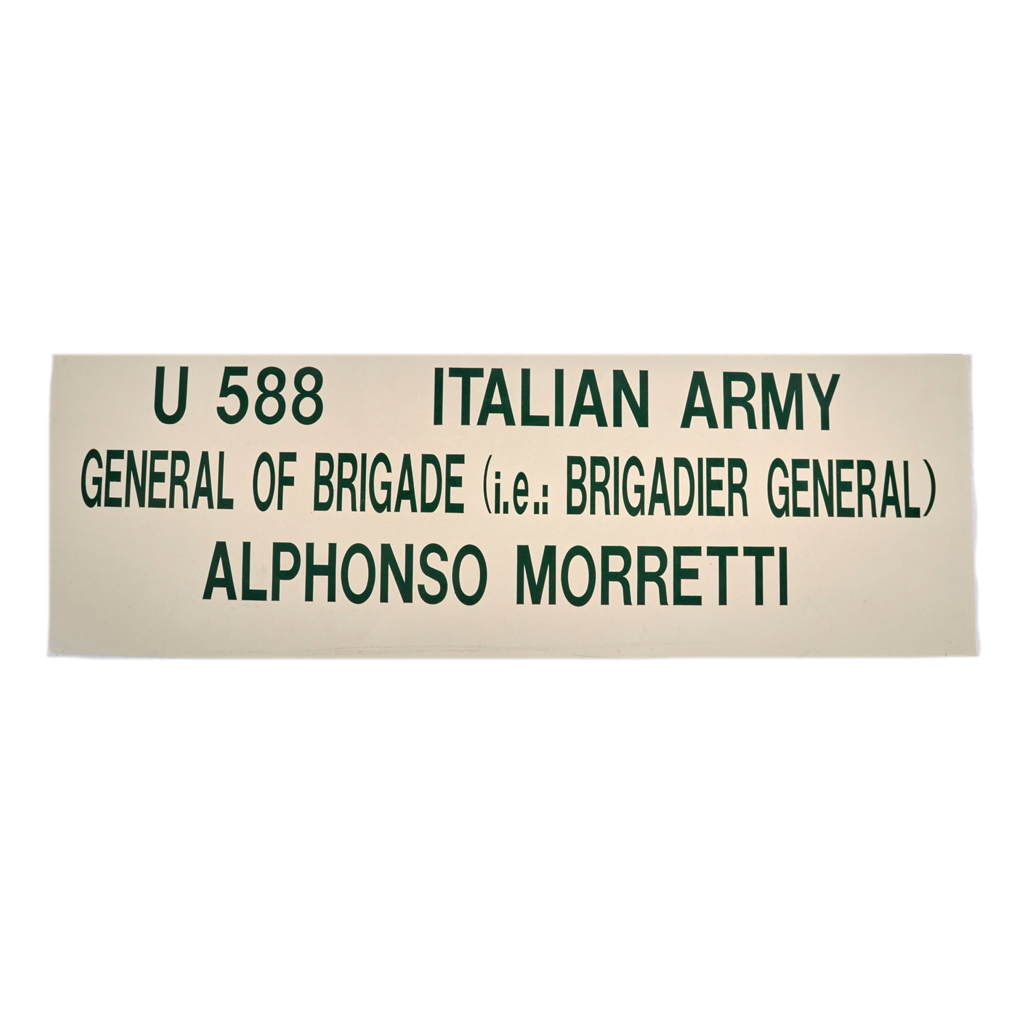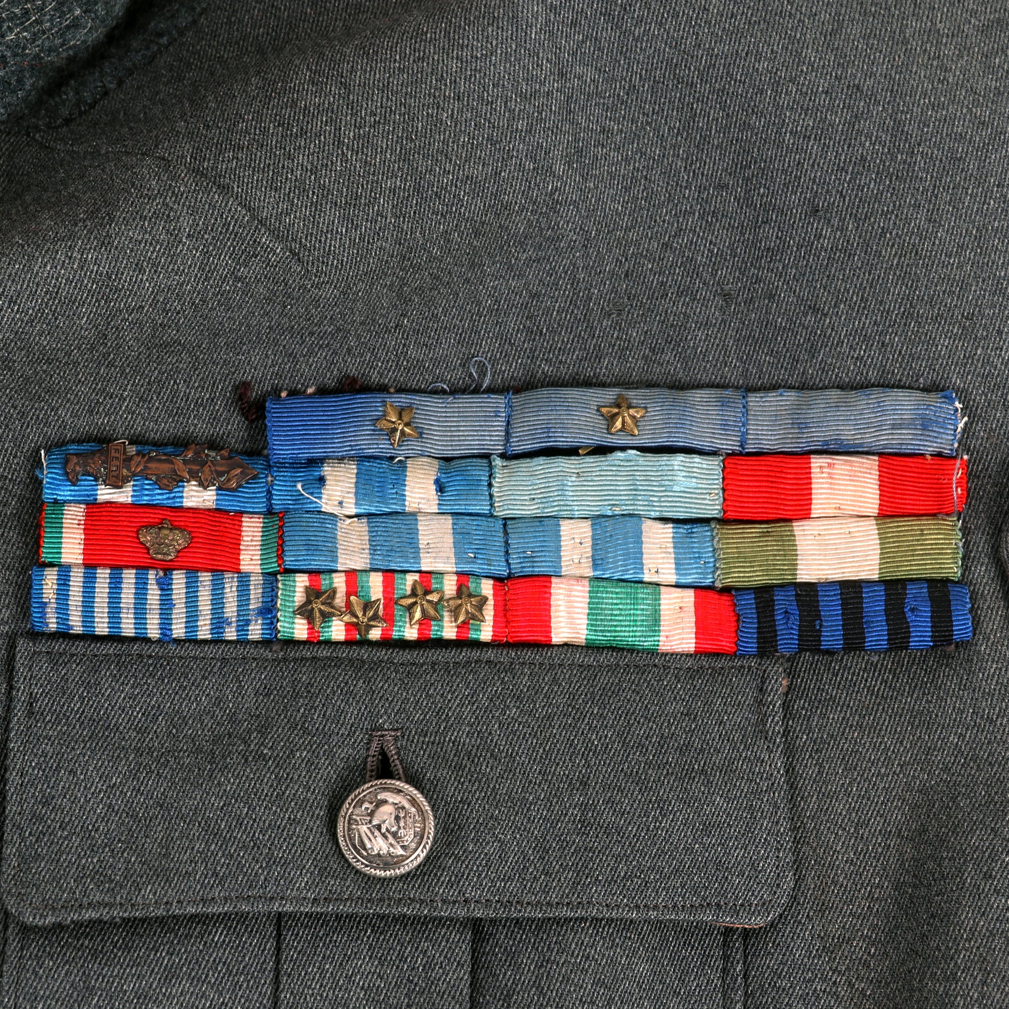 The uniform came to us with the knowledge that it once belonged to General of Brigade Alfonso Morretti. Aside from word of mouth, there are no markings on this uniform though one will be able to trace the awards and narrow it down.