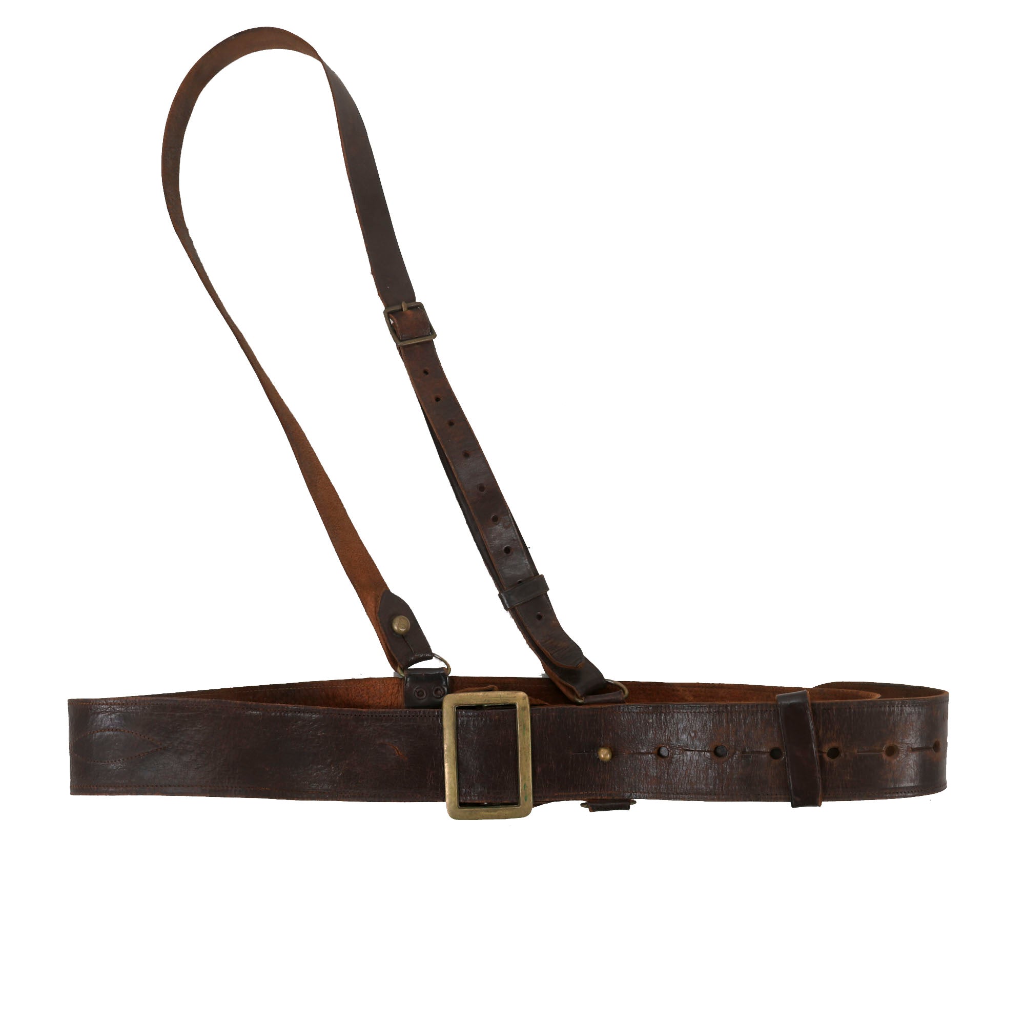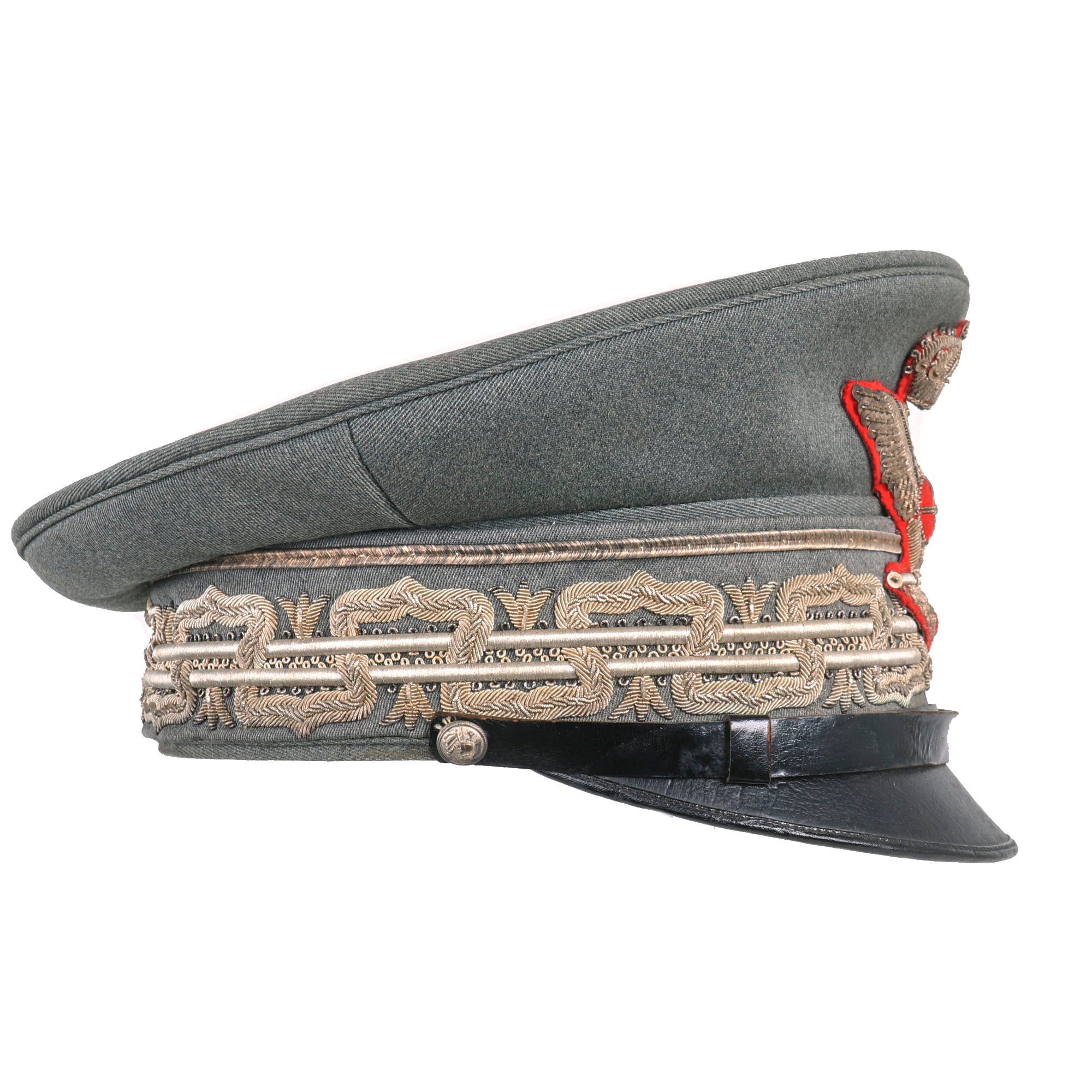This service dress uniform is of the 1930's period. It is an Italian Army, Service Dress uniform. It is known that this uniform grouping belonged to a General of Brigade (ie a Brigadier General), named Alphonso Morretti. General Morretti was born in Naples in 1892. He served for 4 years on the Italian / Austrian Front from 1915 to 1918. He was wounded in combat at that time. He went on to become a Brigadier General in 1938. It is believed that Morretti served in Ethiopia, Libya, and possibly in the Sudan. General Morretti is also believed to have commanded a Motorized Regiment, and then a Motorized Brigade. He surrendered to the Germans in Yugoslavia in 1943, and was sent home. It was at that time he retired. Morretti died in Naples in 1958. This uniform grouping belonging to Morretti includes his matching general's trousers, commercial shirt, a tie, a "Sam Brown" style leather belt, and his general's peaked cap.