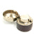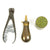 Bullet mold and a small brass powder flask. There are a few lead balls in a lidded compartment.