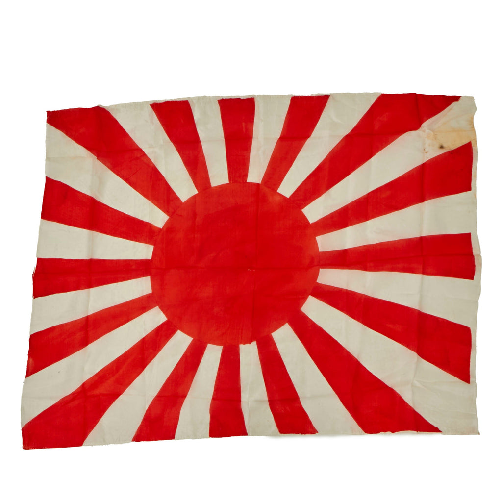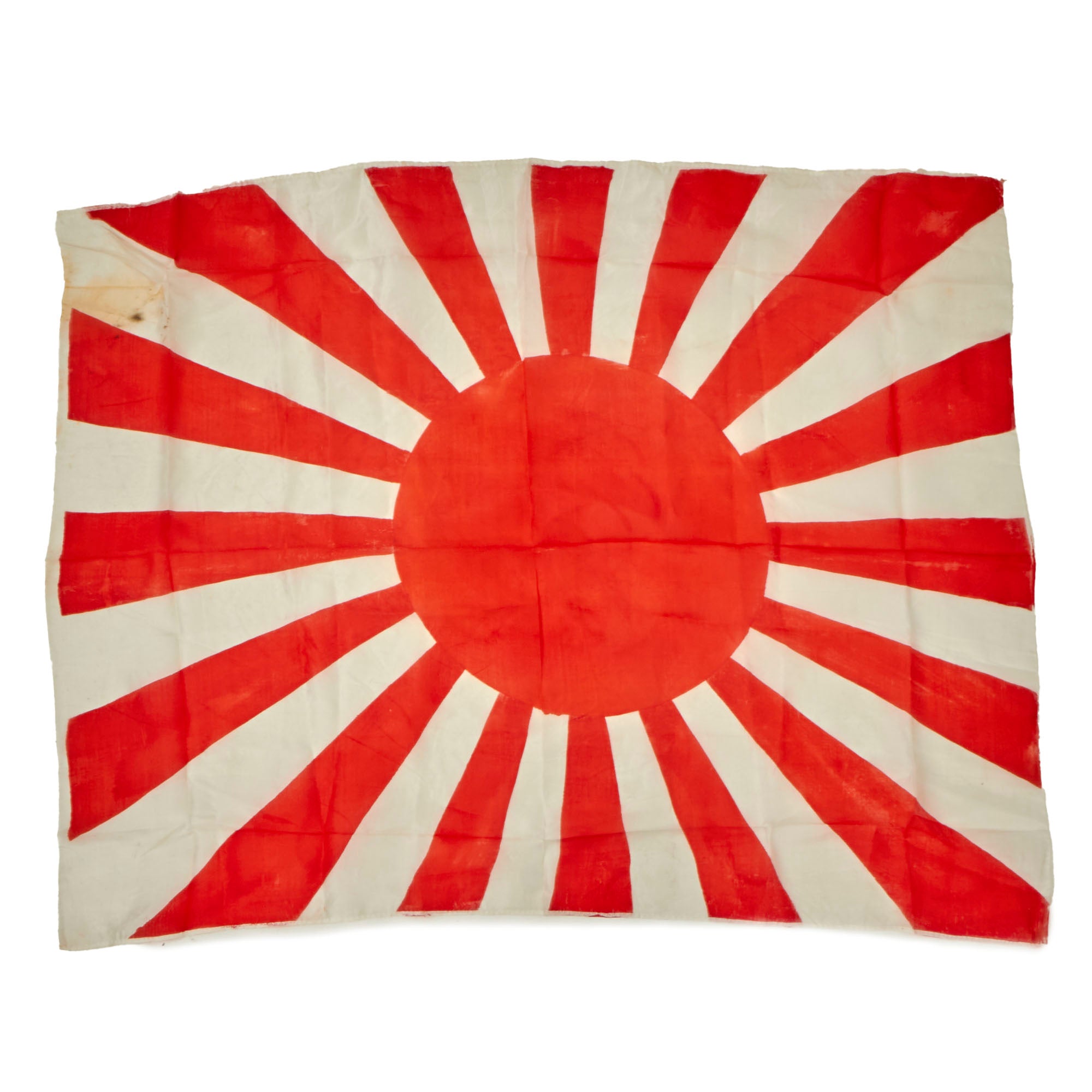 Original Item: Only One Available. The Rising Sun Flag (旭日旗 Kyokujitsu-ki) design was originally used by feudal warlords in Japan during the Edo period. On May 15, 1870, as a policy of the Meiji government, it was adopted as the war flag of the Imperial Japanese Army, and on October 7, 1889, it was adopted as the naval ensign of the Imperial Japanese Navy (Naval flags have the sun off center to the left). With the sun in the center, this is a flag of the IJA (Imperial Japanese Army).