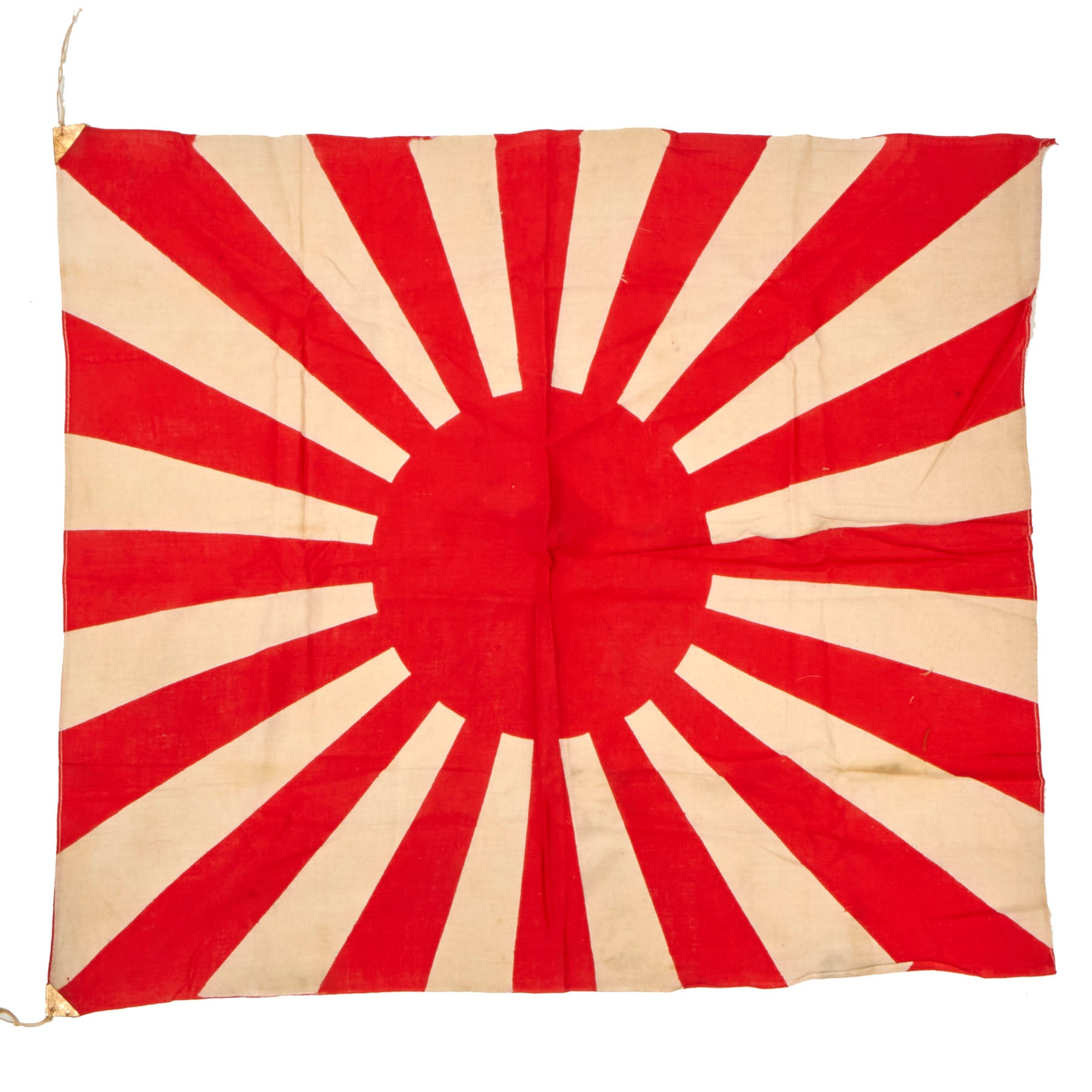 Original Item: Only One Available. The Rising Sun Flag (旭日旗 Kyokujitsu-ki) design was originally used by feudal warlords in Japan during the Edo period. On May 15, 1870, as a policy of the Meiji government, it was adopted as the war flag of the Imperial Japanese Army, and on October 7, 1889, it was adopted as the naval ensign of the Imperial Japanese Navy (Naval flags have the sun off center to the left). With the sun in the center, this is a flag of the IJA (Imperial Japanese Army).
