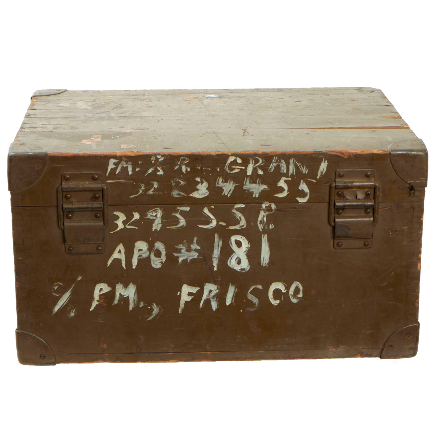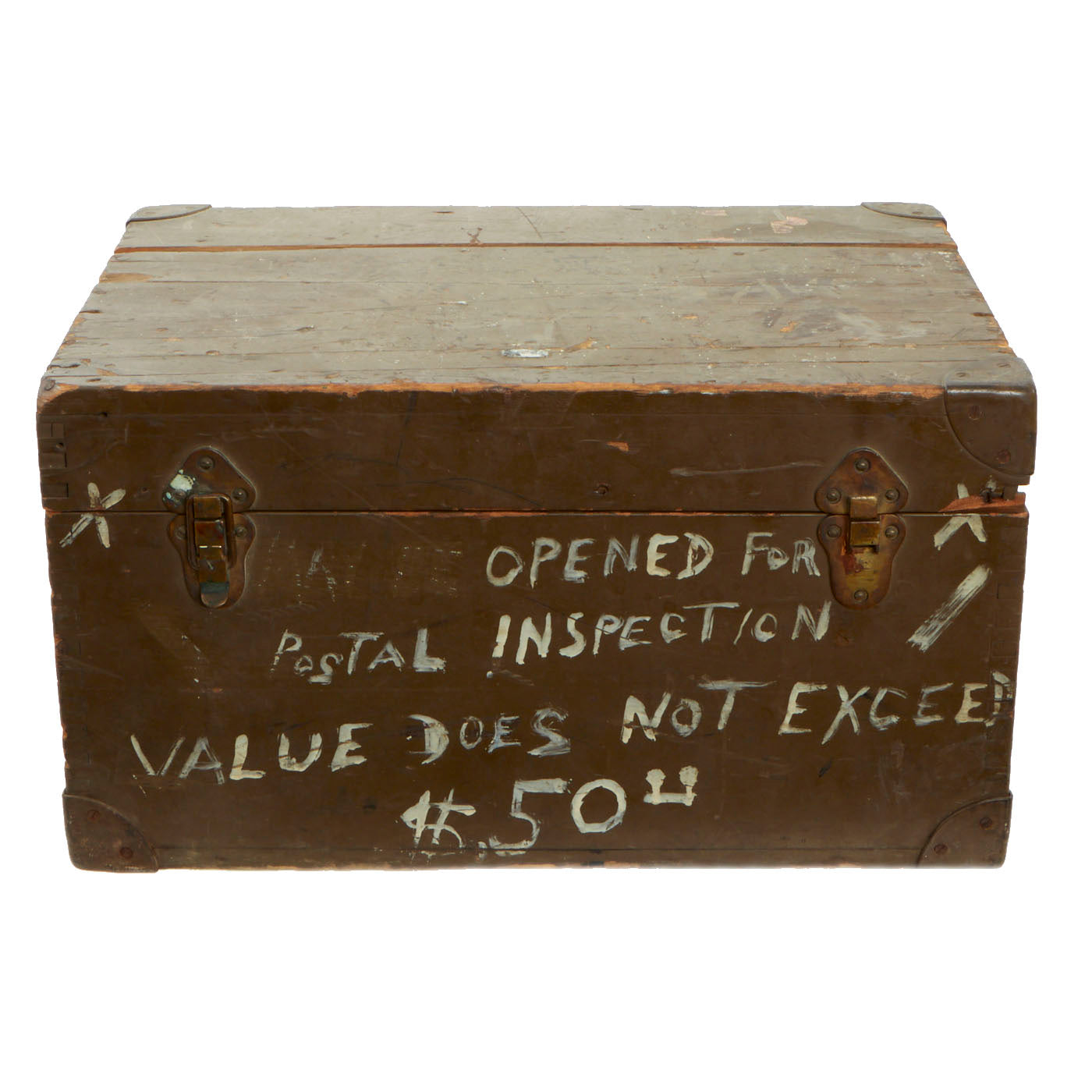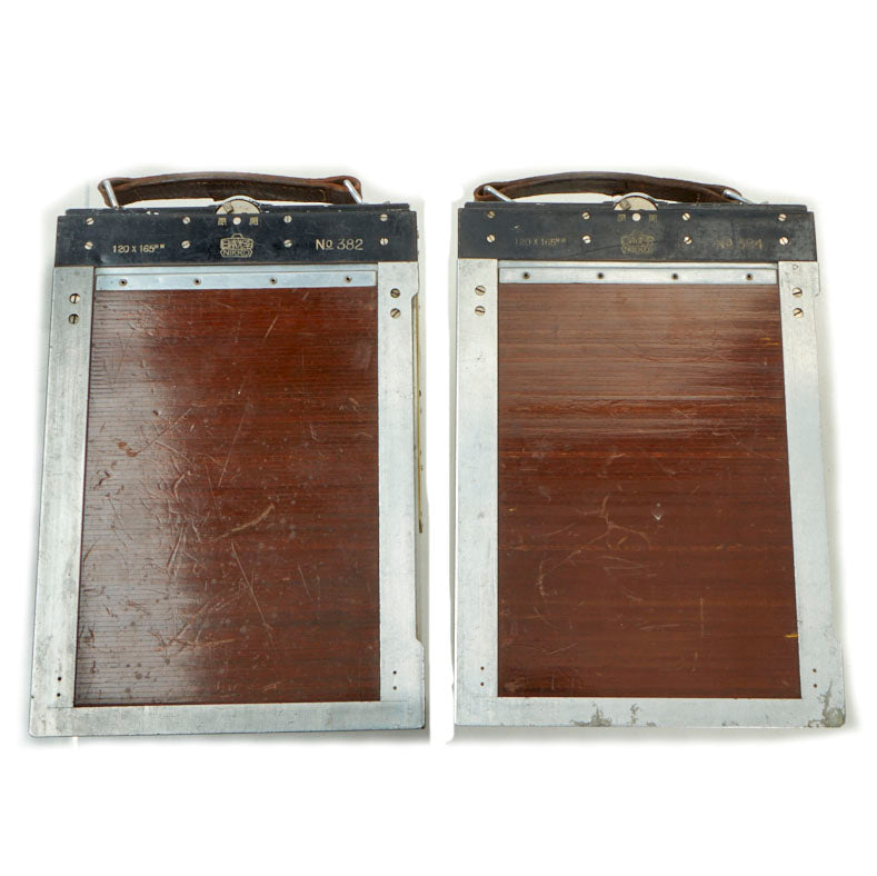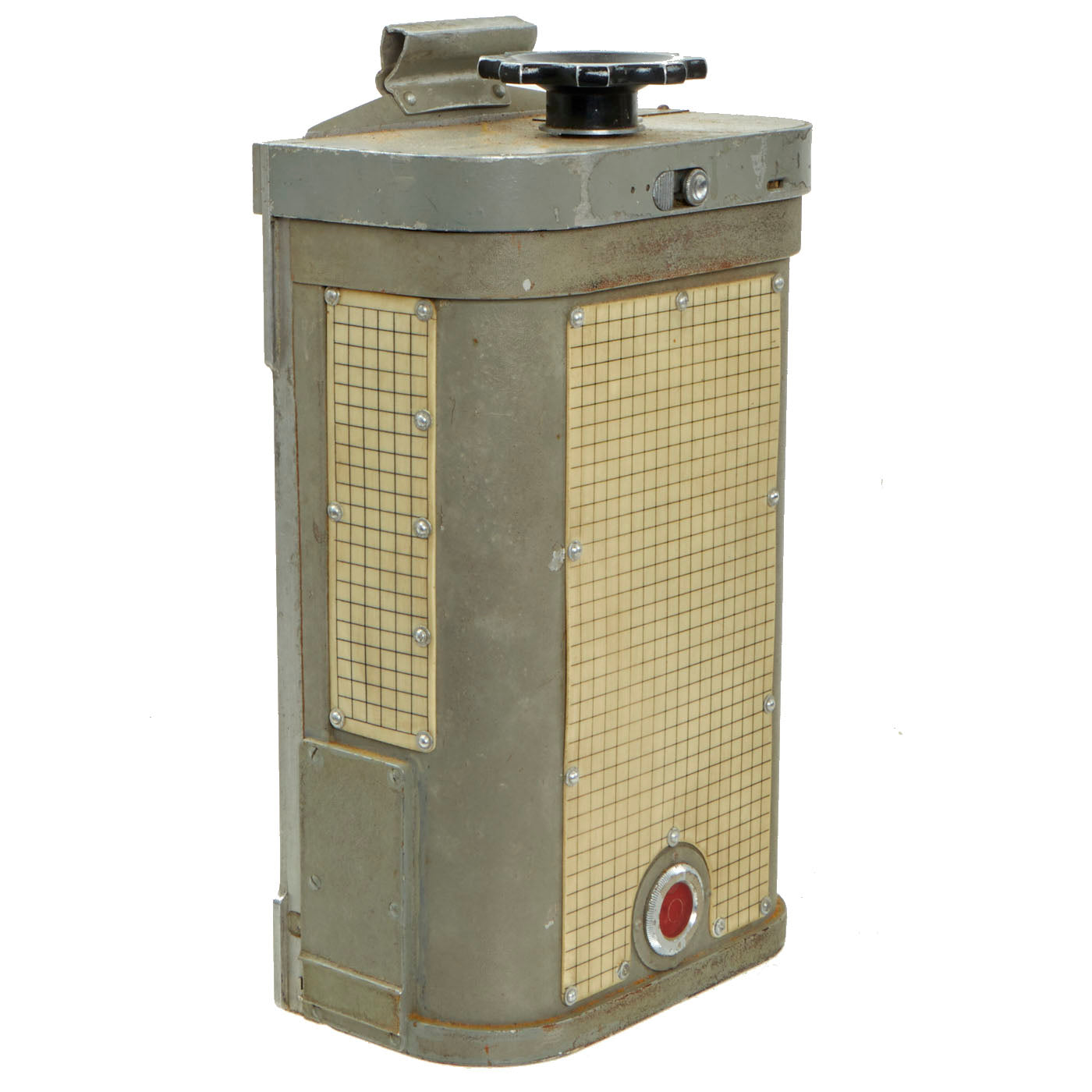 This Type 96 had a short service life and suffered from a variety of reliability issues but was still one of the most sophisticated cameras made for the Japanese Army. It was fitted with heater elements in both the camera body and the lenses. It was equipped with two light projectors to use in recording the tilt of the camera while positioned over the film. It used 18cm Roll Film and was mainly used by the Army Ministry for Cartography. The camera could be mounted in an aircraft as well as operated in “handheld” mode. It was manufactured by Rokuoh-sha and has a Nippon-Kogaku lens (189137). The camera comes in the original wooden box which still has USGI bring-back information written on it, roll fill, glass negatives that contain images and the electric heater camera.