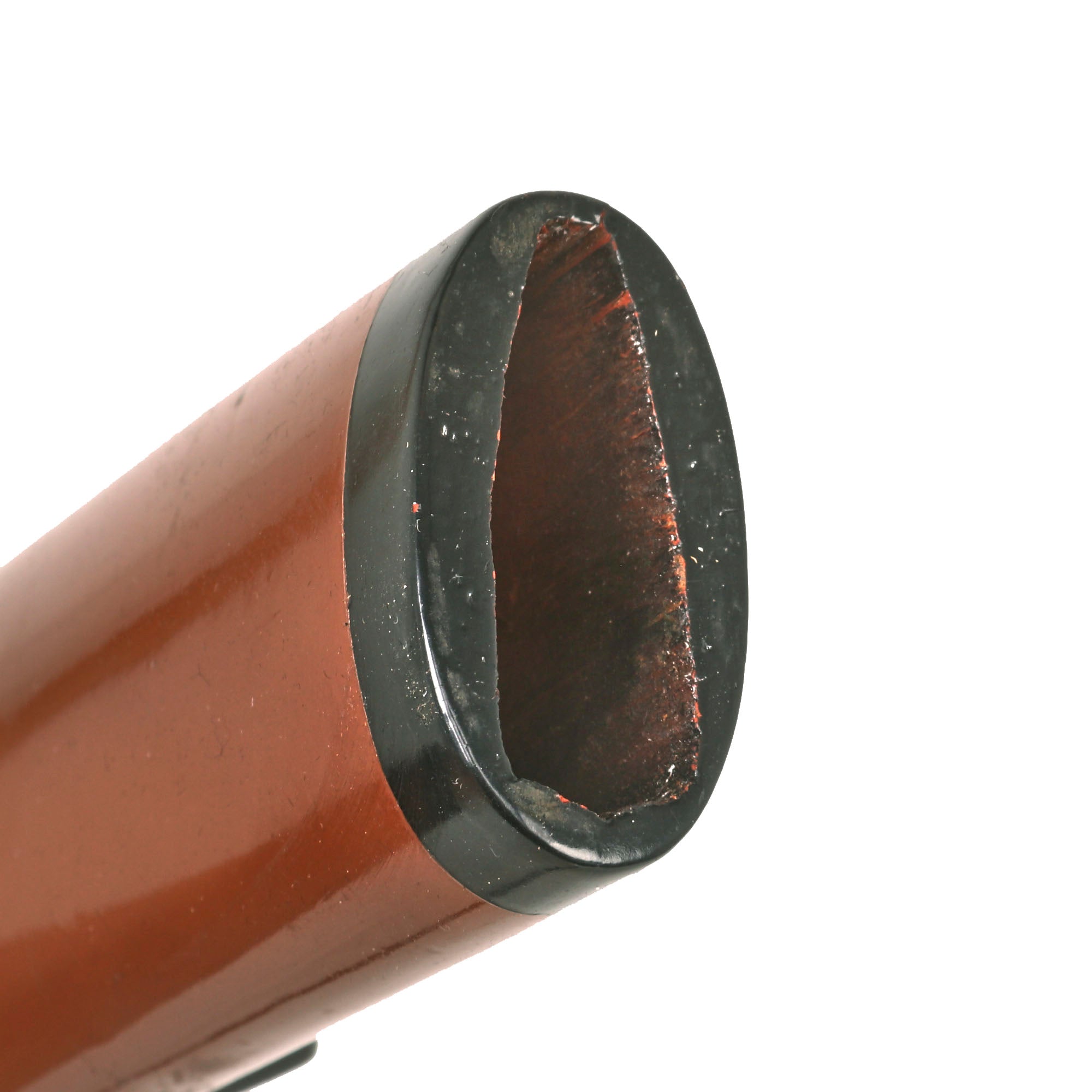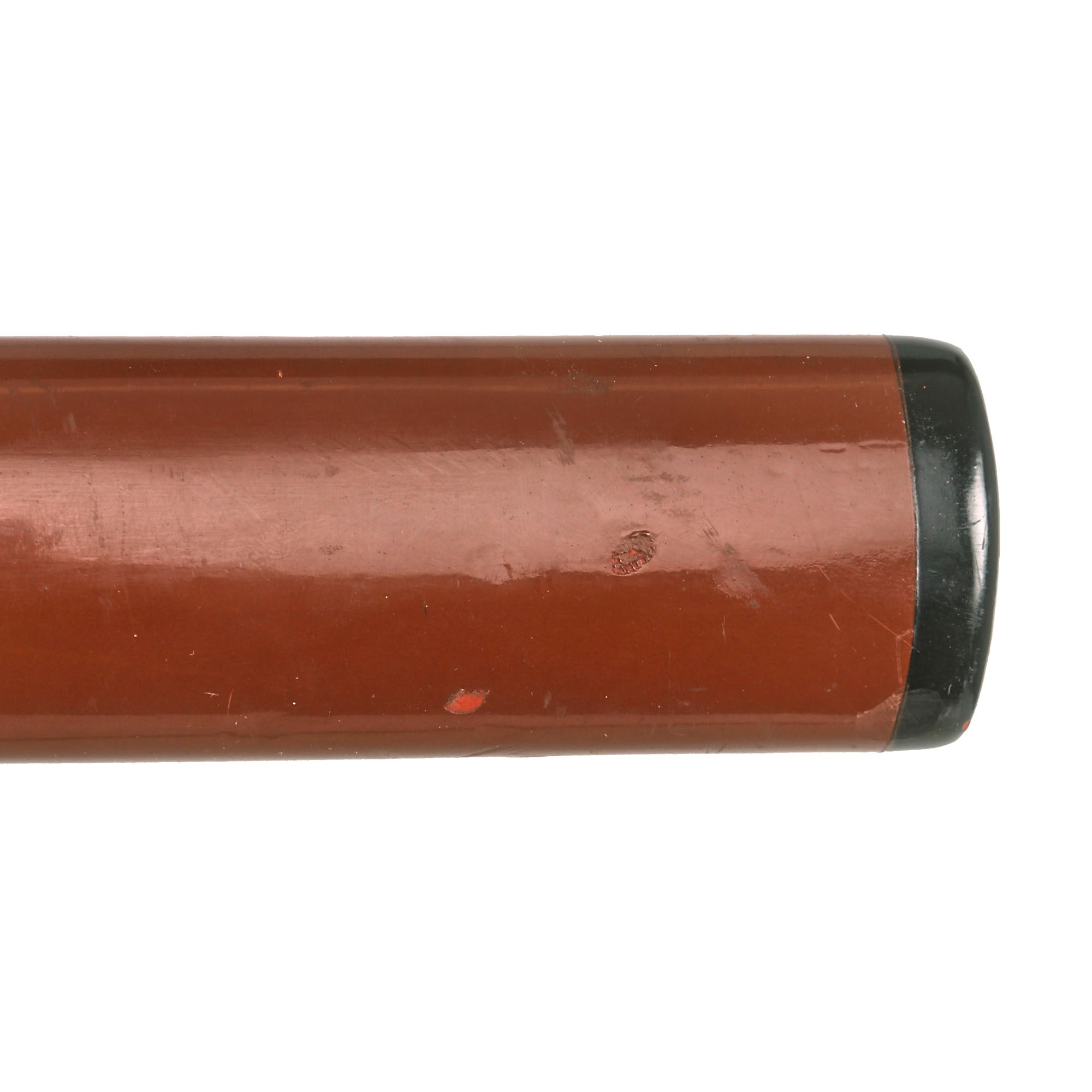 The sword comes in a well fitting wooden scabbard (SAYA), which has a very attractive gloss brown URUSHI lacquer finish. It looks to be from the later Edo period, and may have had the exterior refinished at some point during the 20th century, as it really looks great. The side has the KURIKATA knob on the side for a SAGEO sword cord, and there is a lovely modern green and blue sageo tightly wrapped around the scabbard, which could be fitted through the kurikata if desired. Really a fantastic scabbard that fits the blade like a glove.