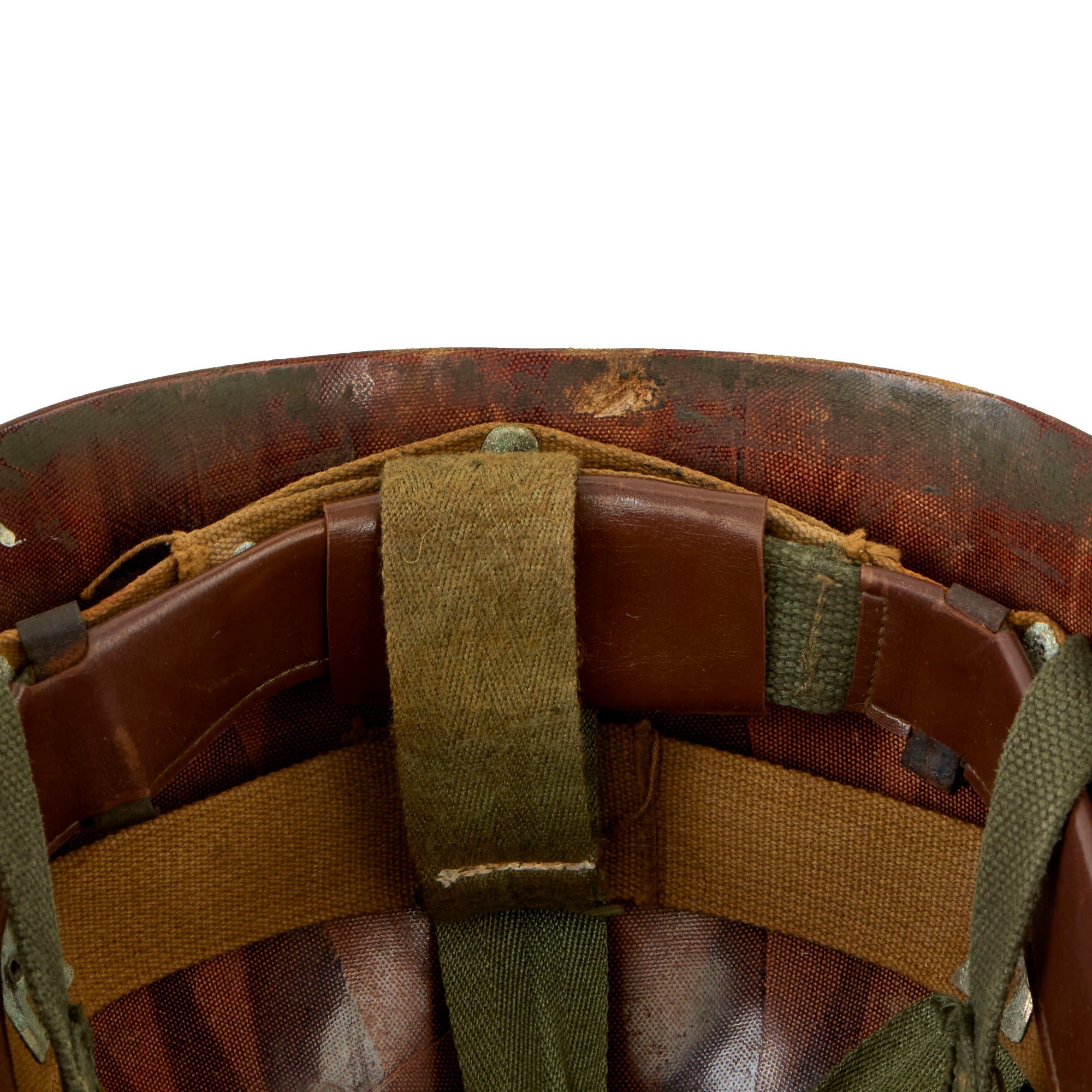 This example is in wonderful condition and does appear to be complete aside from a leather/web chinstrap for the liner. All components seem to be original to the helmet as does the stenciling on the front of both the shell and the liner. There are various markings that may be a name and should be easily translated.