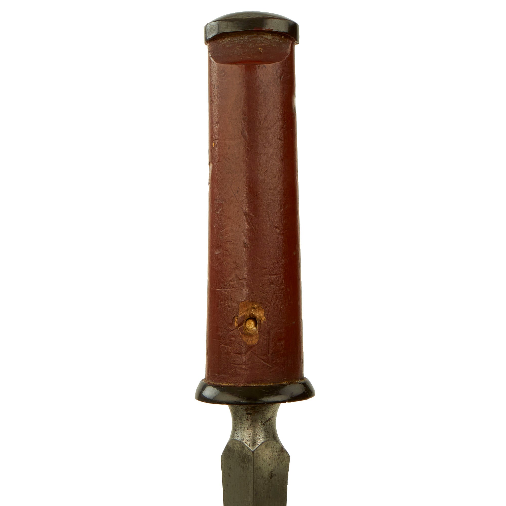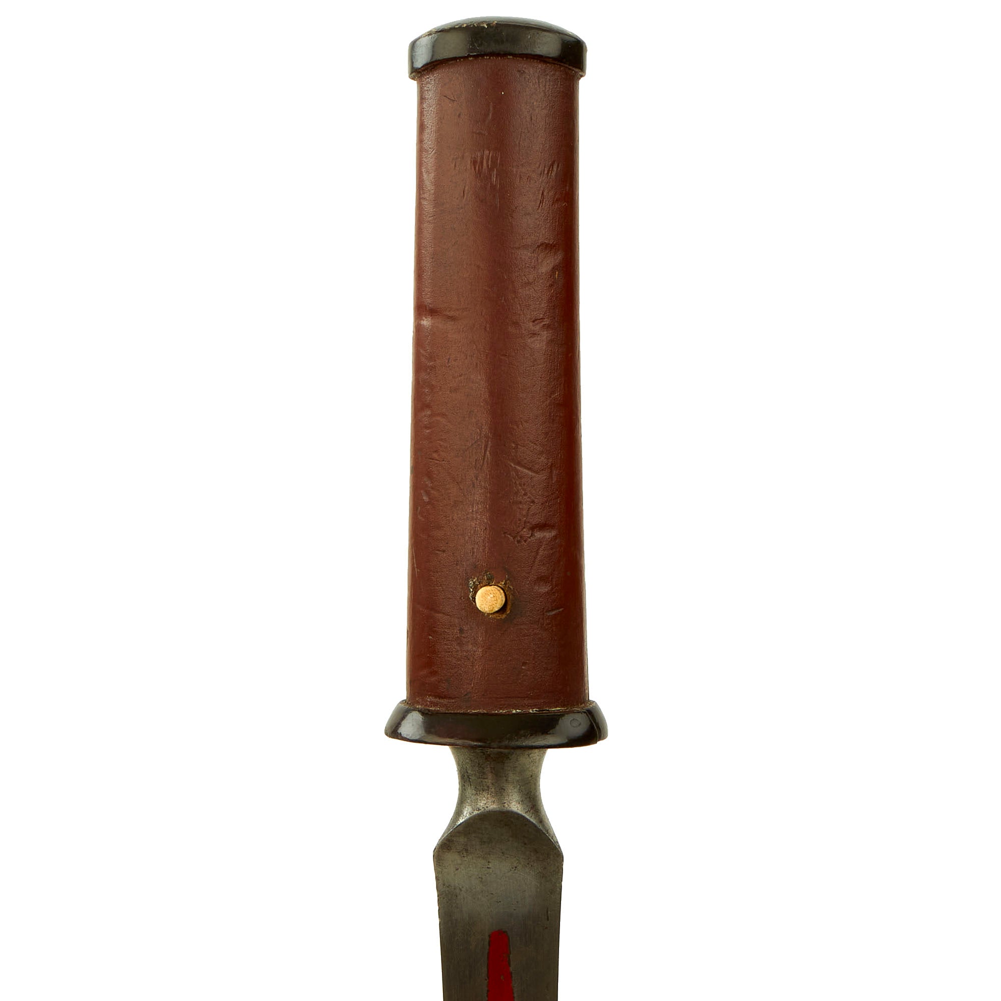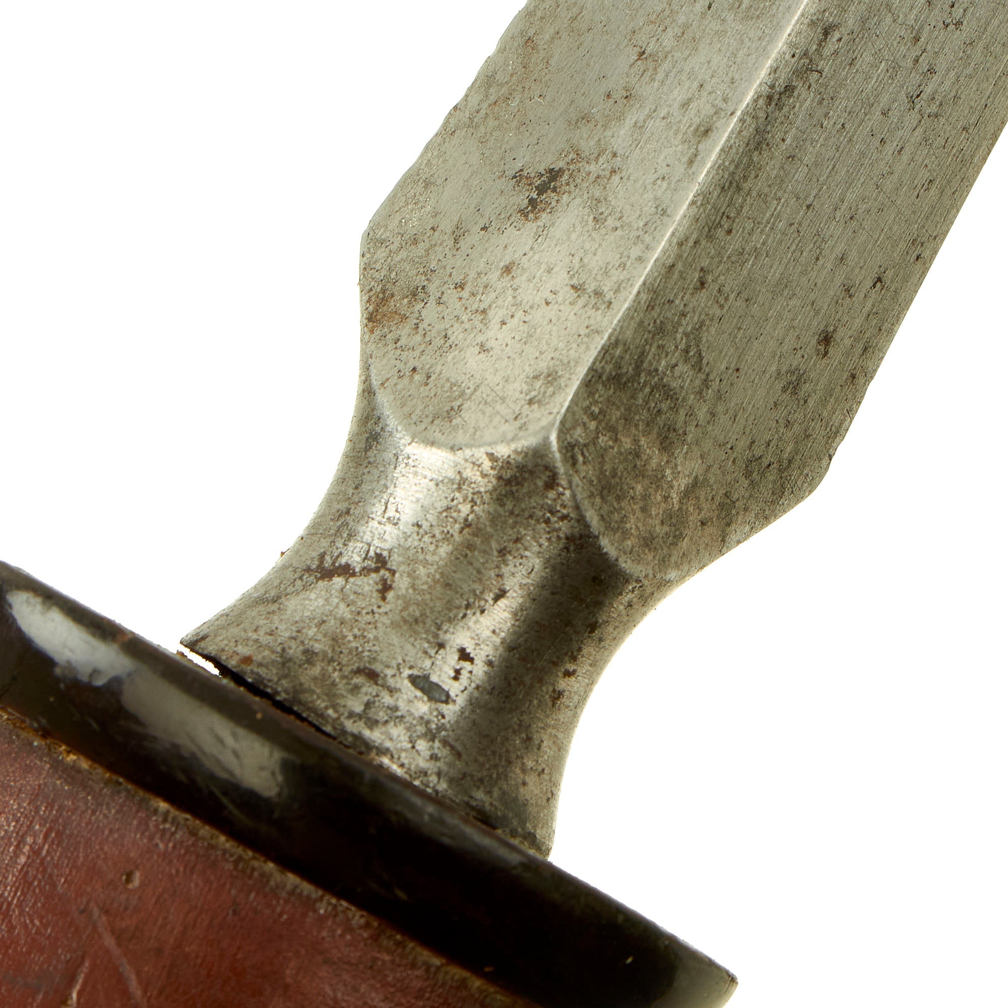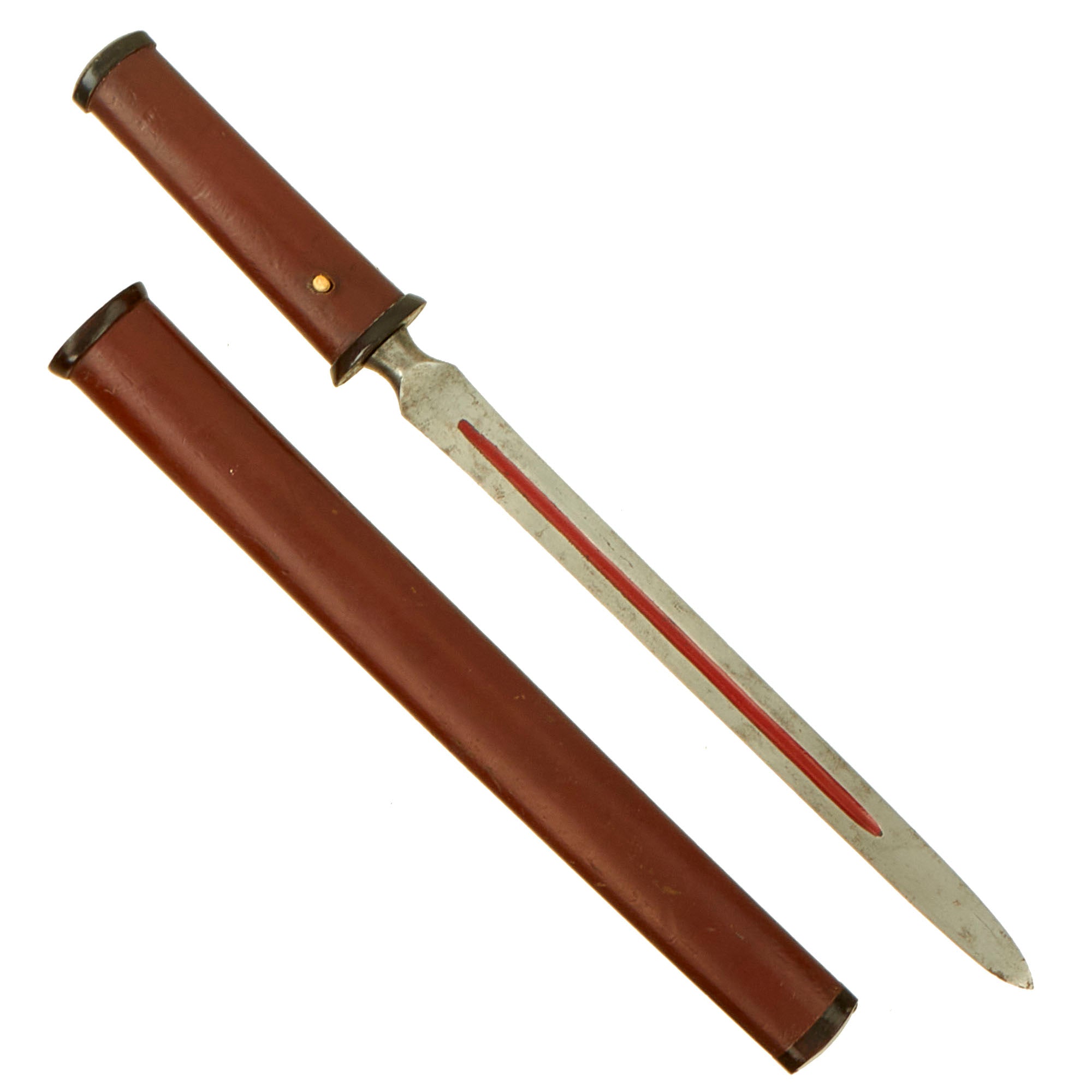 Original Item: Only One Available. Purchased at a recent military show, this is a very nice Japanese Tanto (短刀), which literally means short sword. These could be in any number of different shapes, depending on the requests of the person who ordered it. The blade length of a tanto is typically between 15 and 30 cm (5.9 to 11.8 inches), or 1 Japanese shaku, an ancient measurement. This example is a bit different from what we normally see, as the blade is actually taken from a yari (槍), a traditionally-made Japanese blade (nihonto) in the form of a spear, or more specifically, the straight-headed spear. We have seen these called both "Tanto Yari" as well as "Yari Tanto", and there does not appear to be any consensus on an "official" designation.