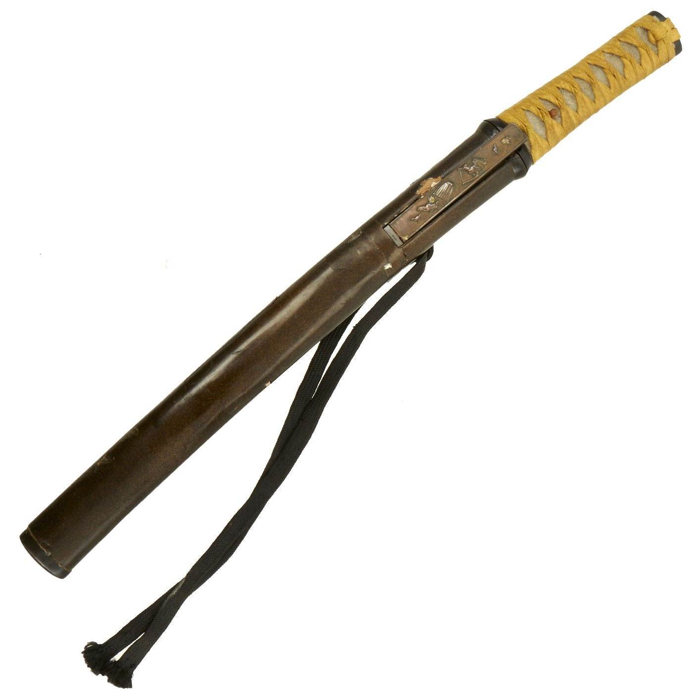Original Item: Only One Available. Purchased at a recent military show, this is a very nice Japanese Tanto (短刀), which literally means short sword. These could be in any number of different shapes, depending on the requests of the person who ordered it. The blade is in the typical "Hira Zukuri" shape, which means it is a blade without a shinogi, or ridge typical of longer blades. It comes as a complete set with lacquered decorative scabbard and Kogatana, which fits into a slot in the scabbard.