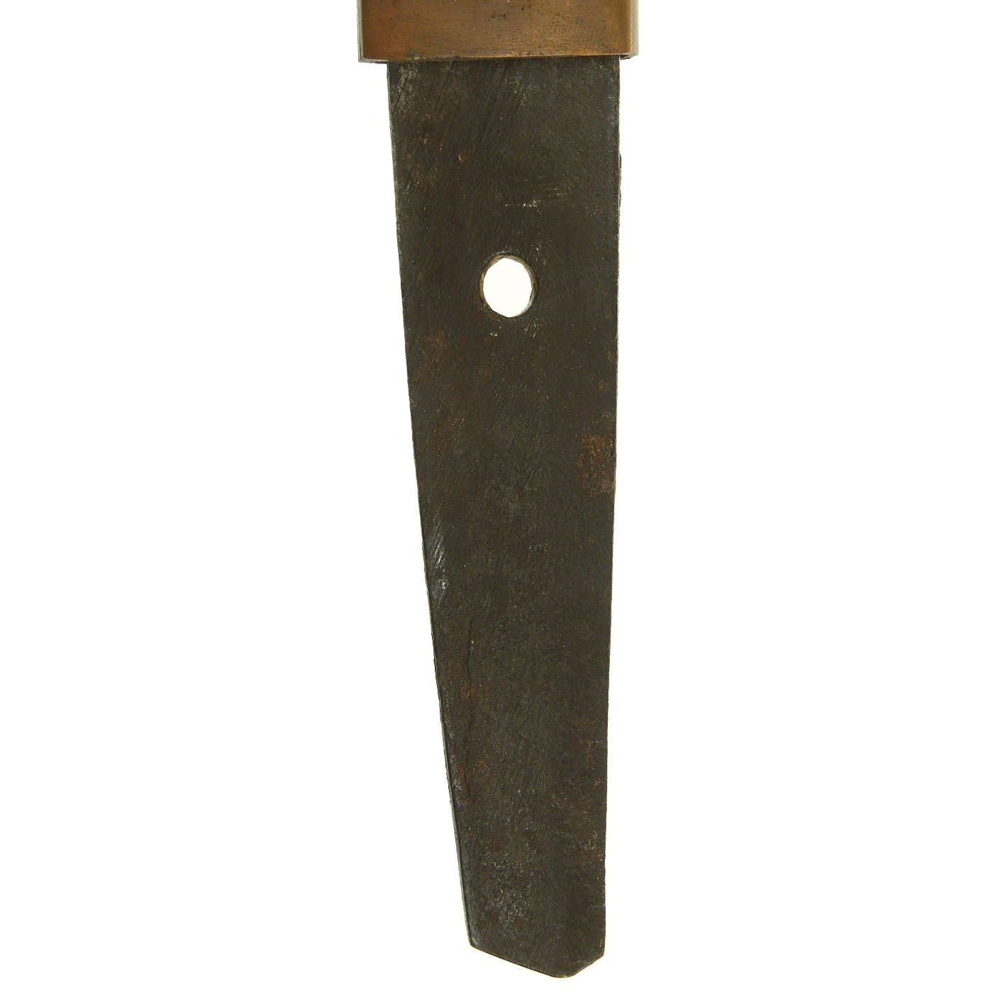 - Holes in tang are punch not drilled. Tang shows significant age.