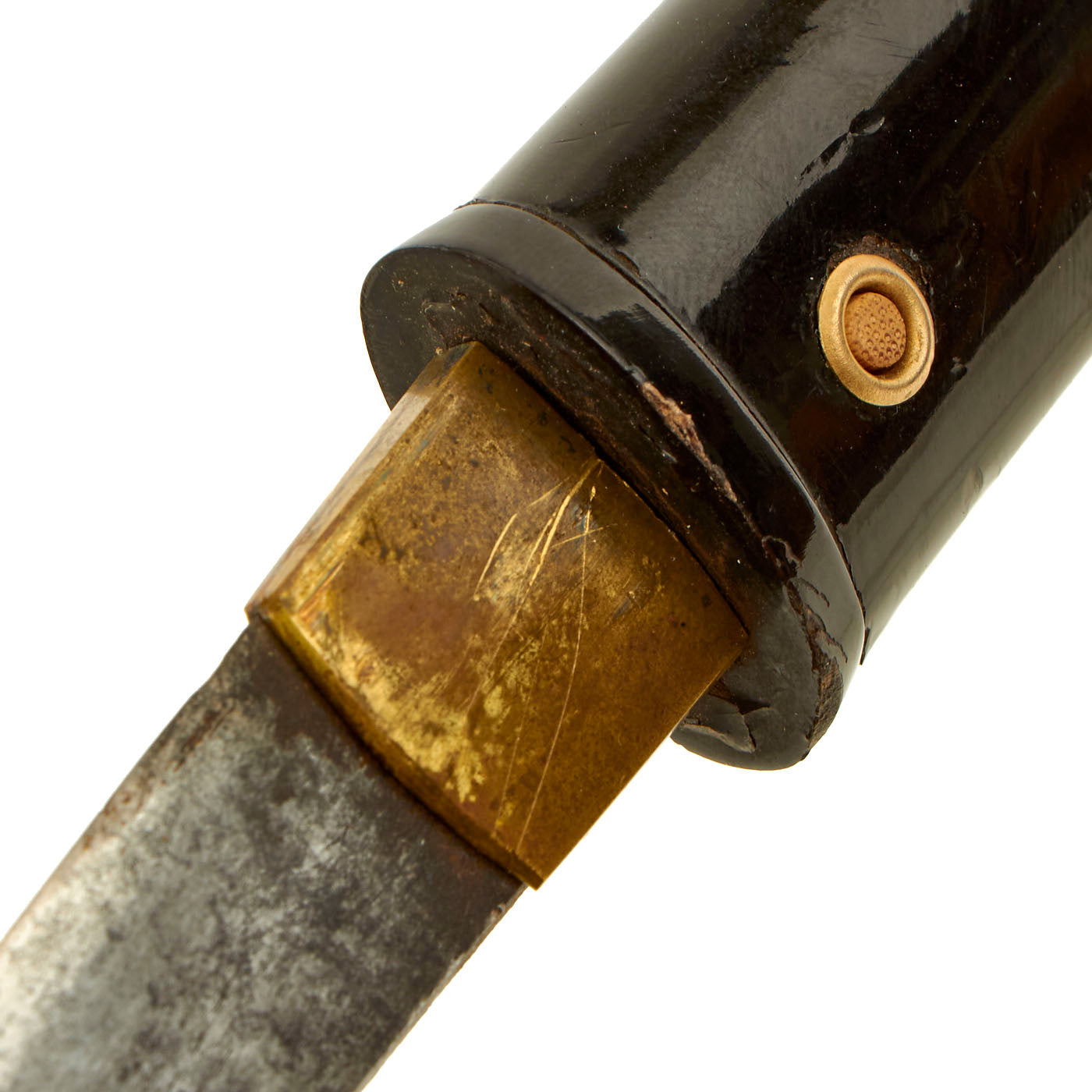 Original Item: Only One Available. Purchased at a recent military show, this is a very nice Japanese Kaiken (懐剣), which translates to "pocket sword". Very similar to the Tanto (短刀 - short sword), these were often worn by women, and were used strictly for combat and self-defense purposes. Typically measuring 20–25 cm (8–10 in) long with a single edged blade, these were usually housed in a plain mount with minimal ornamental fittings.