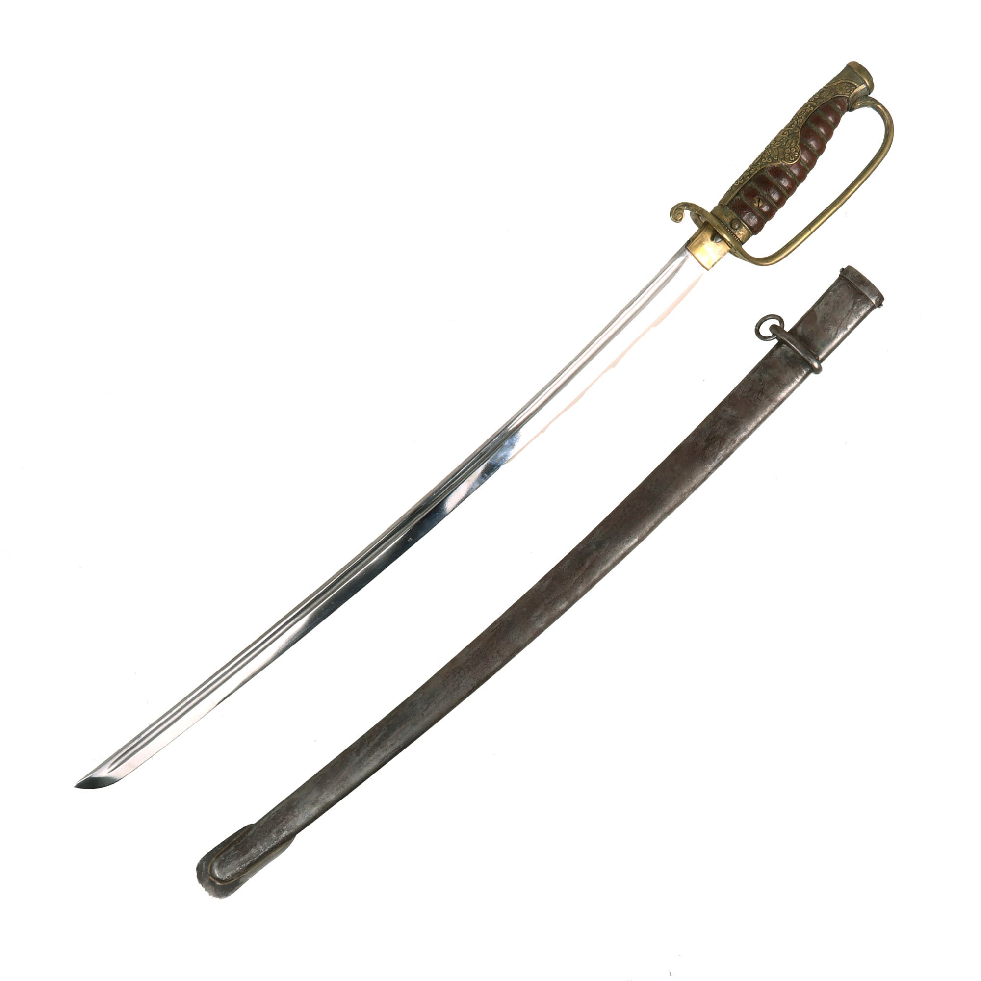 The kyu gunto was used from 1875 until 1934, it closely resembled European and American swords of the time, with a wraparound hand guard (also known as a D-Guard) and chrome plated scabbard (saya), the steel scabbard is said to have been introduced around 1900.