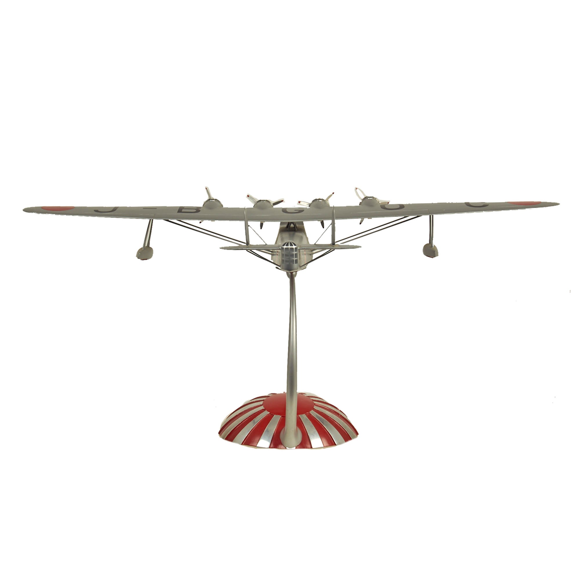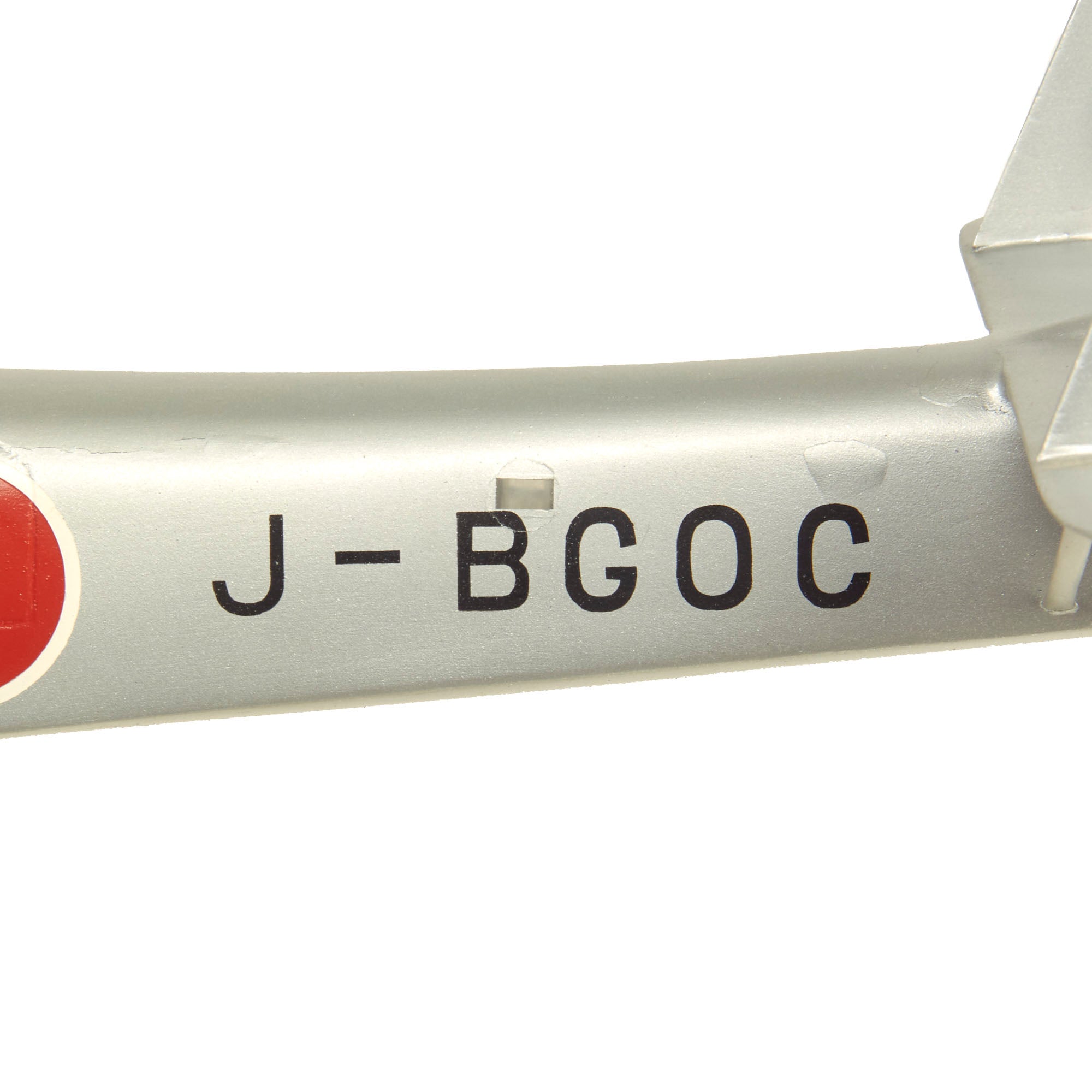 The model stands at 14” tall with the aircraft measuring 20” in length and a wingspan of 32”. Nearly all of the original paint has been retained with just minor areas of loss. The aircraft is secured to the arm via phillips head screw and is loose. We have not made any attempts to try and tighten the screw to mitigate any cause of damage.