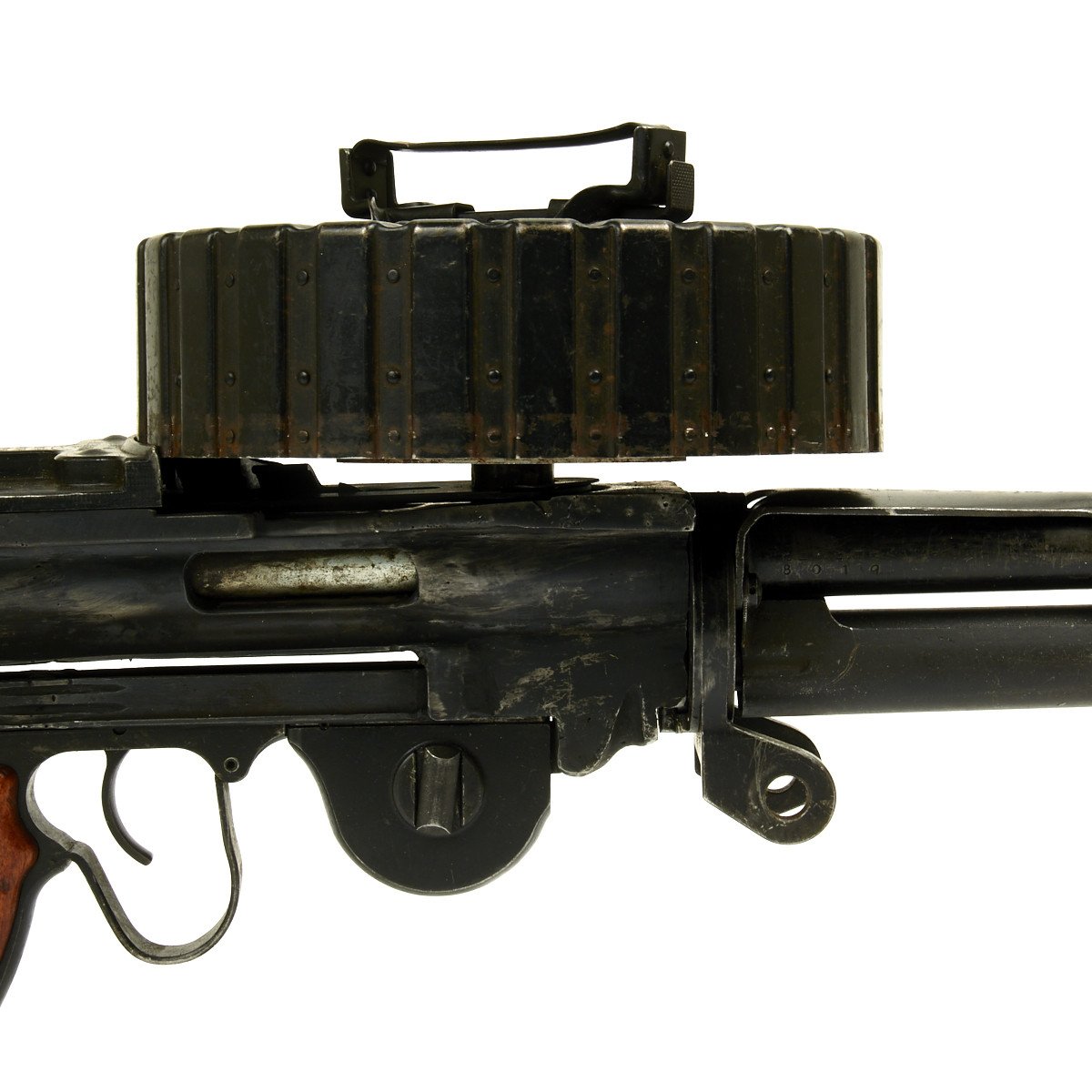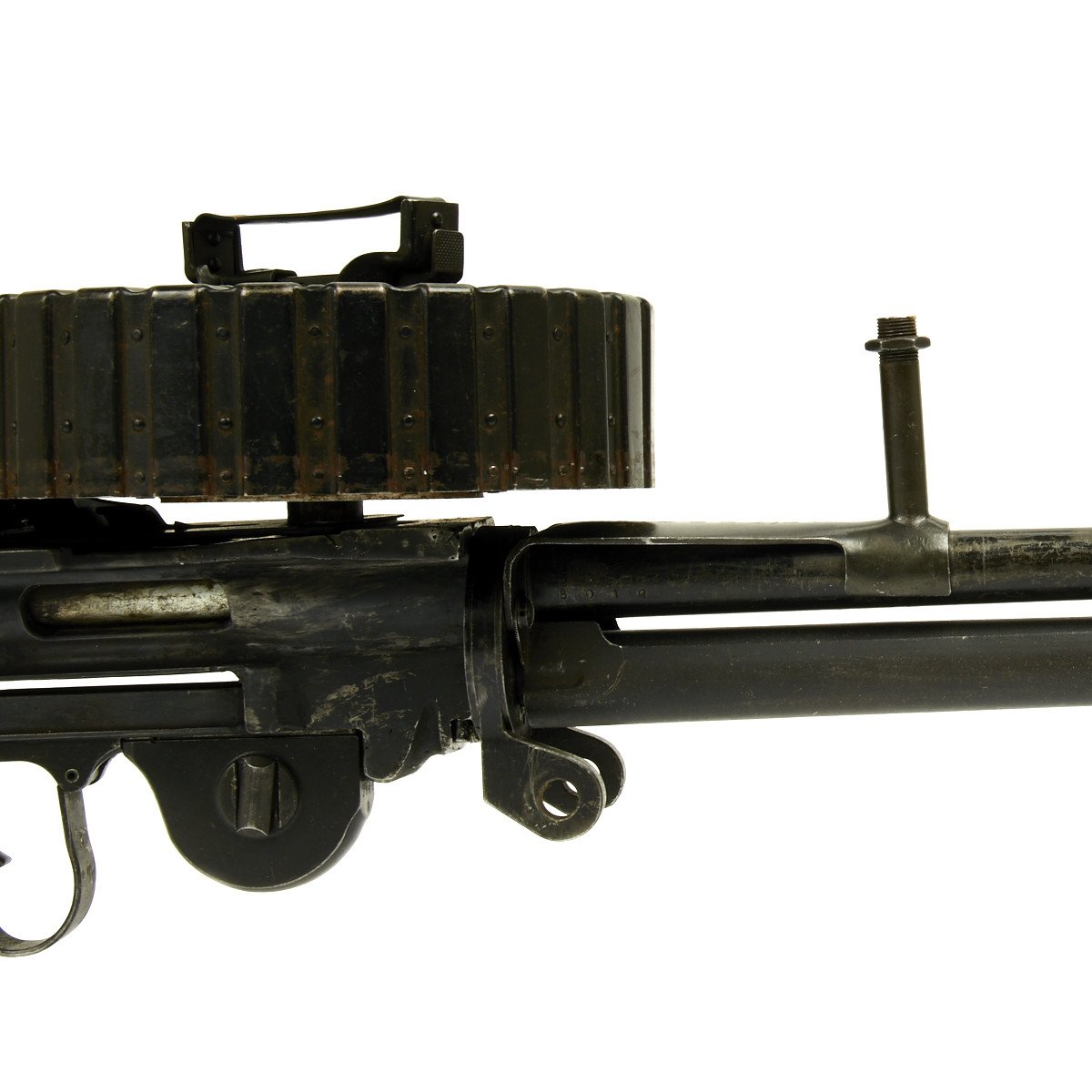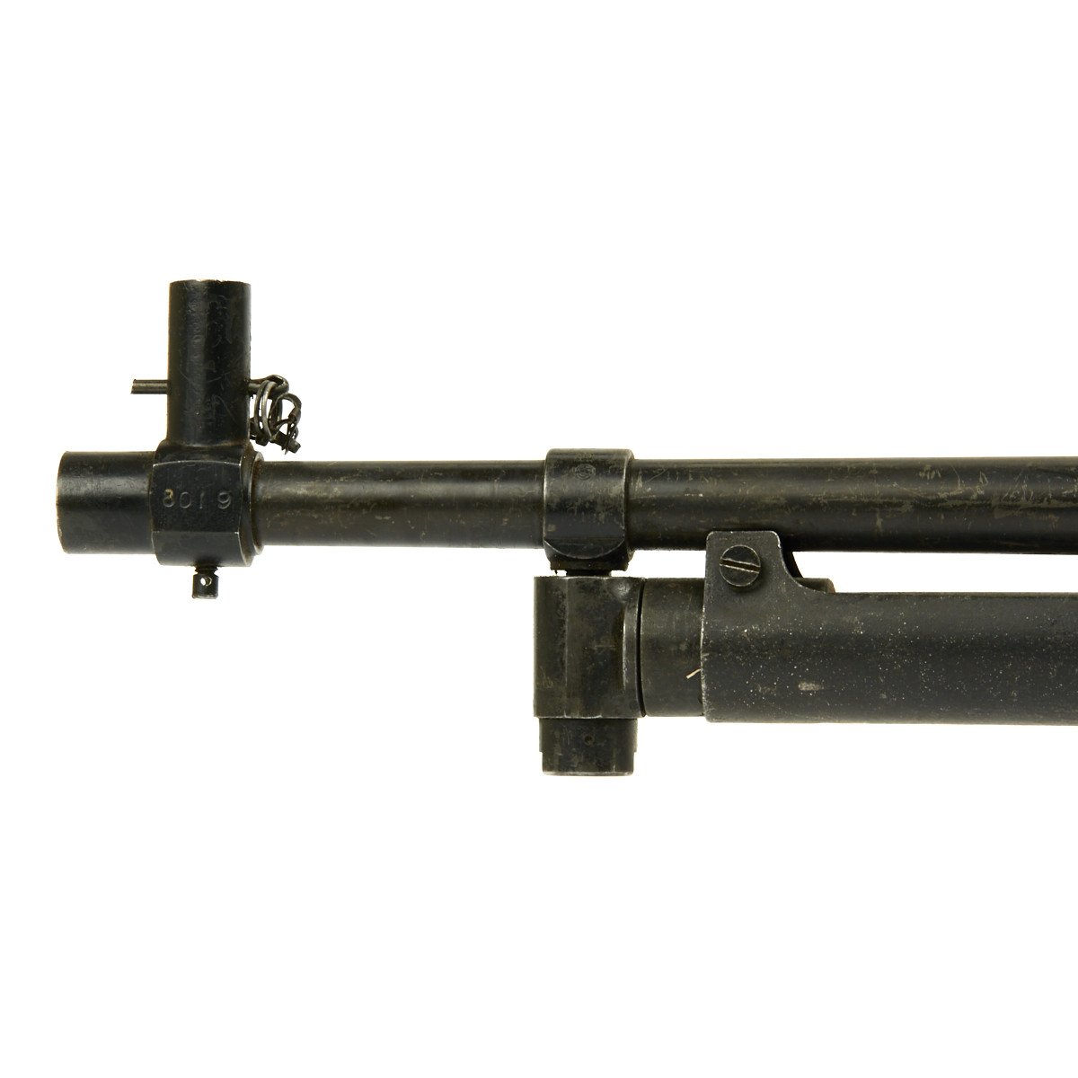 This example is exceptional rare, demilled and rebuilt into a non-firing display gun to BATF regulations with a flame cut receiver, this is the only display gun we’ve ever had. It bears all matching serial numbers 8019 on major parts and is offered in very good condition. Magazine bear Japanese naval anchor markings. Included is an original spare operating rod that does not match.