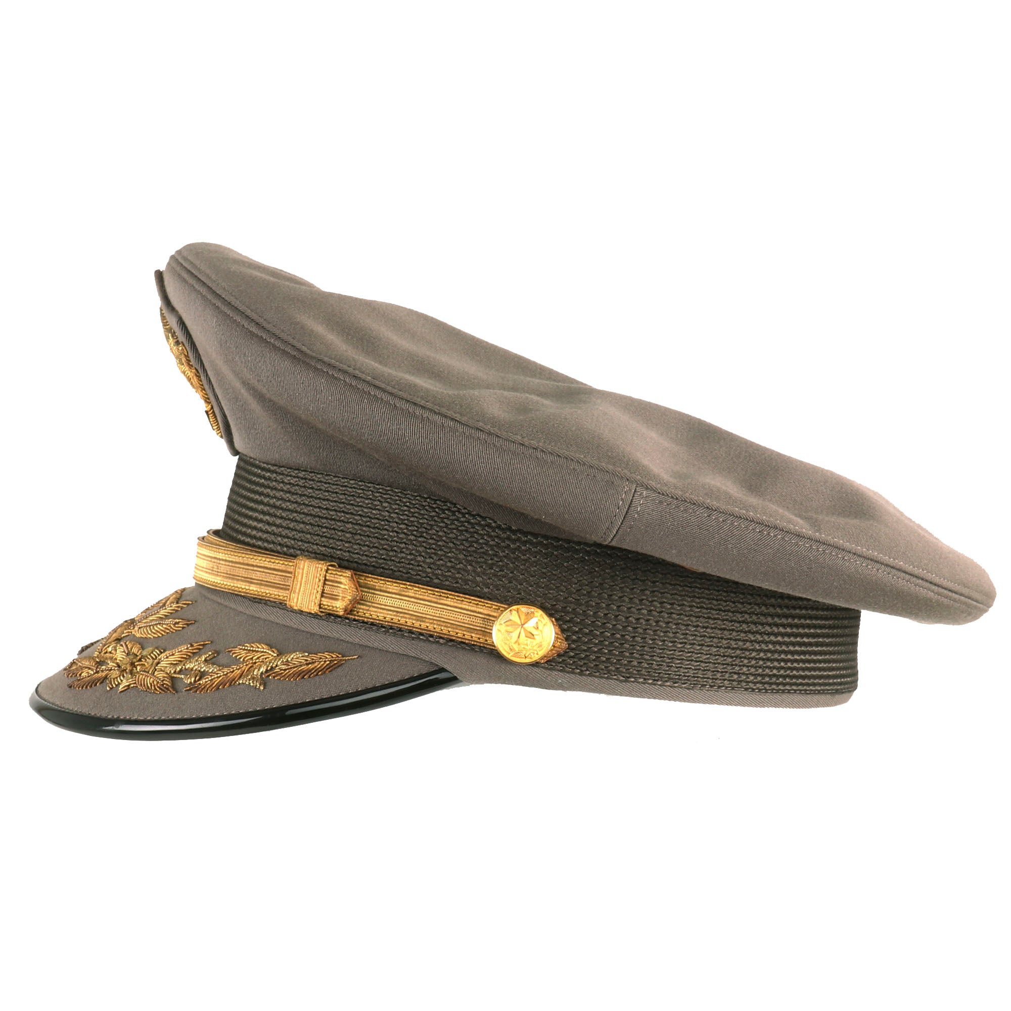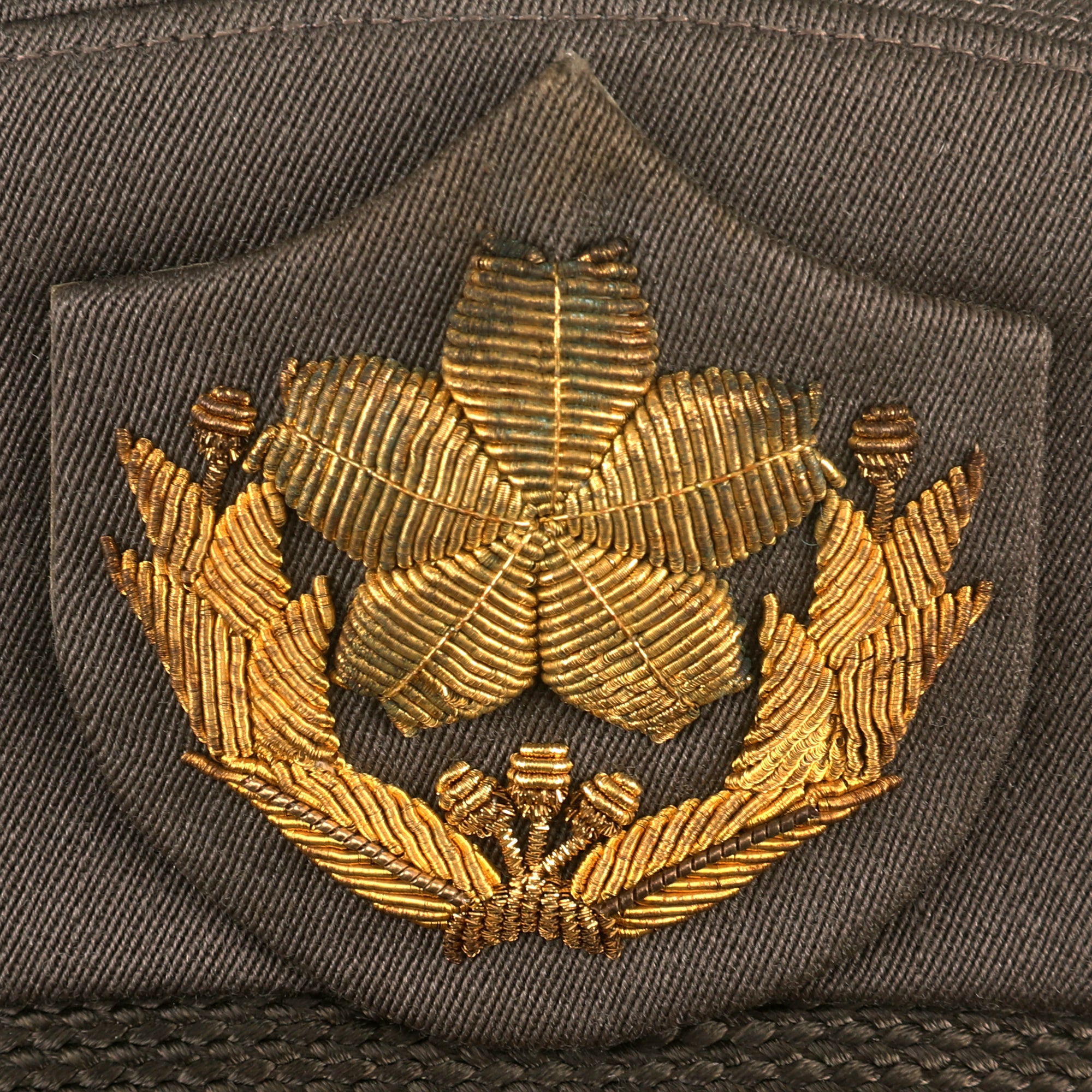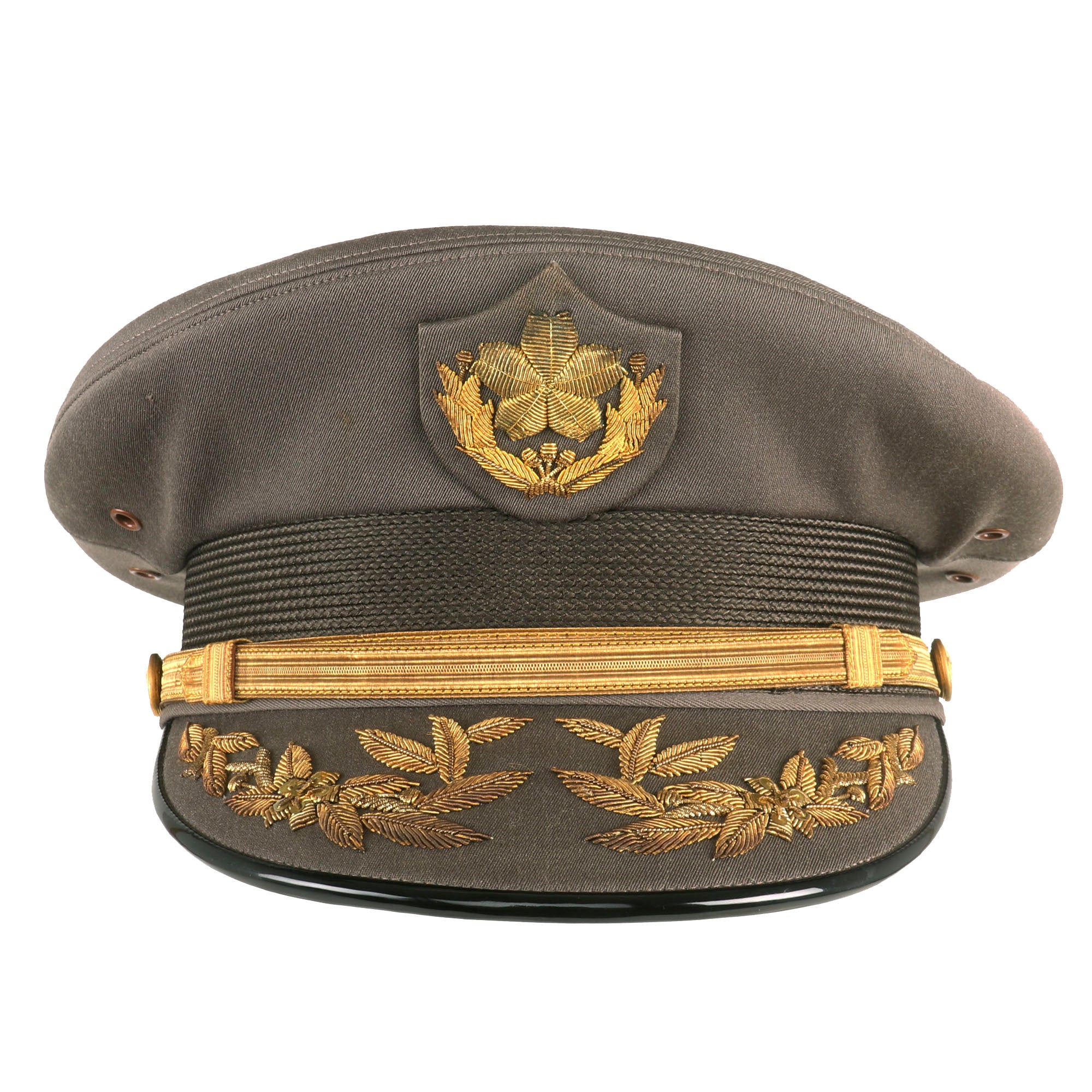Original Item: Only One Available. This is a stunning and authentic Japanese Self-Defense Forces General Officer Visor, dating to the Post-WWII era. The overall condition of this visor is truly impressive, with no visible signs of extensive wear or damage. The gray color of the visor is still vivid and without any signs of fading, making it an exceptional piece for any collector or enthusiast. The insignia, which is an important aspect of the visor, is still firmly attached in place on the front, along with the visor portion and decorative chinstrap.