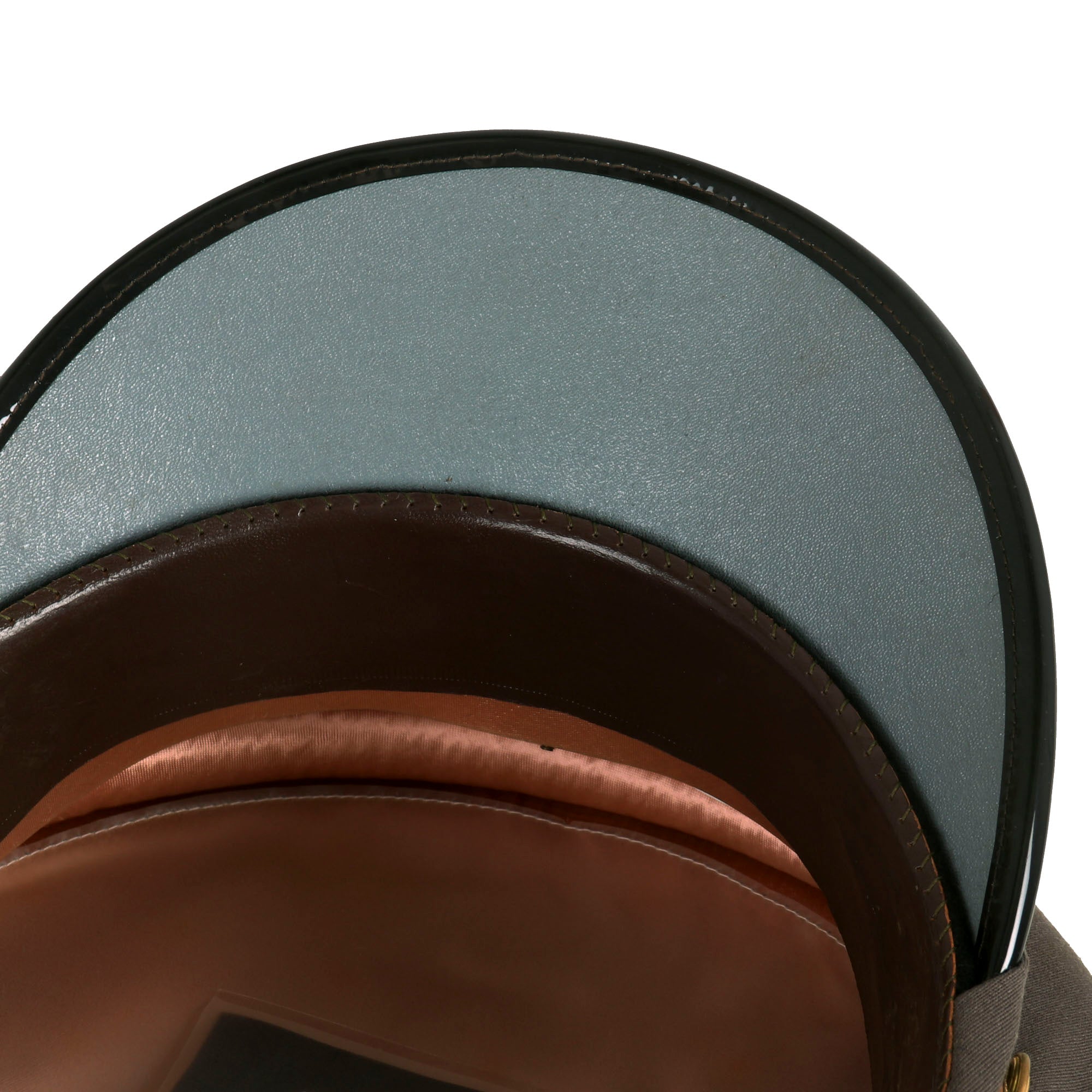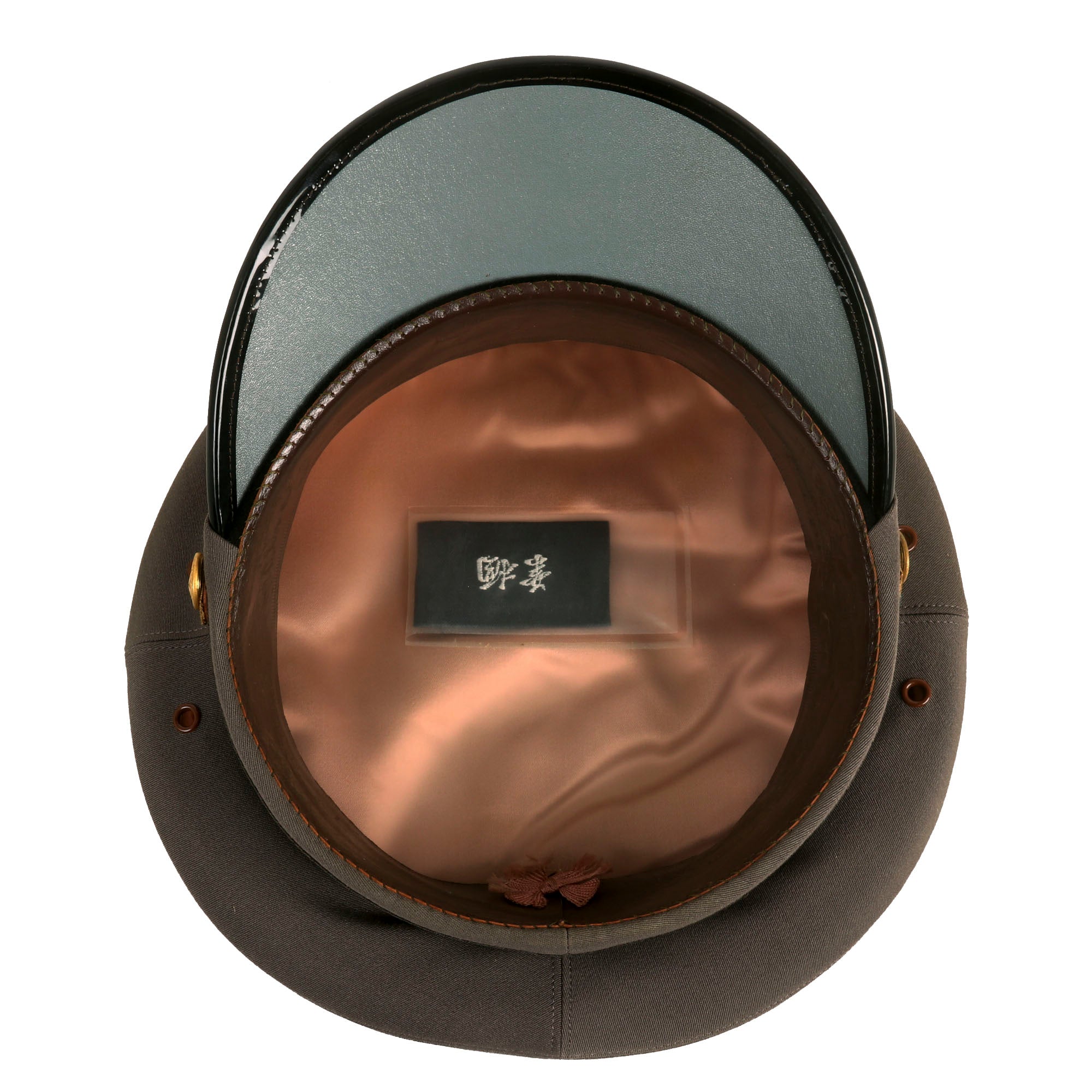 The interior of the visor is lined with a high-quality cream-colored cotton that feels smooth to the touch. A plastic / vinyl lining on top of the cotton provides added protection and durability. Additionally, the visor features a small label on the interior pocket, which, although not translated yet, adds to the historical value of this unique piece. It looks to be in Japanese "Sosho" script, or grass writing, which is unfortunately very difficult to transcribe. Size is about 56cm / 7 or smaller.