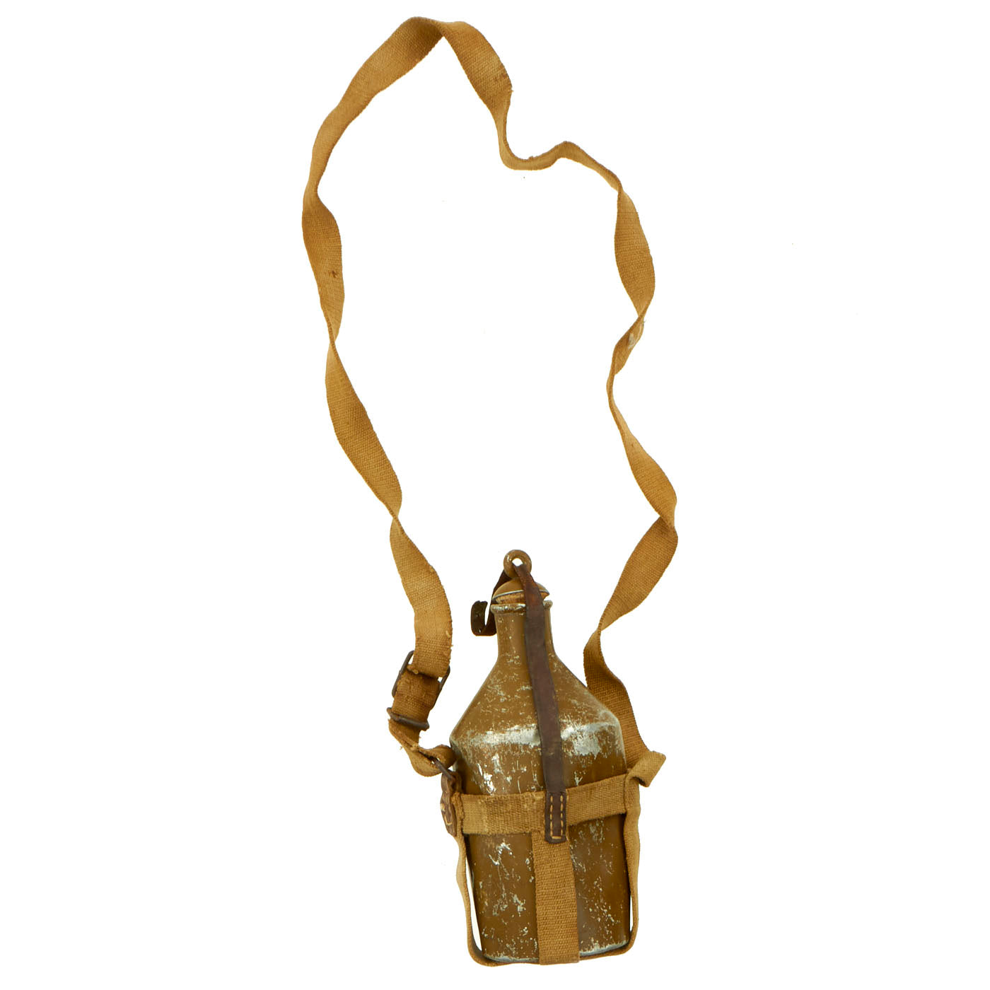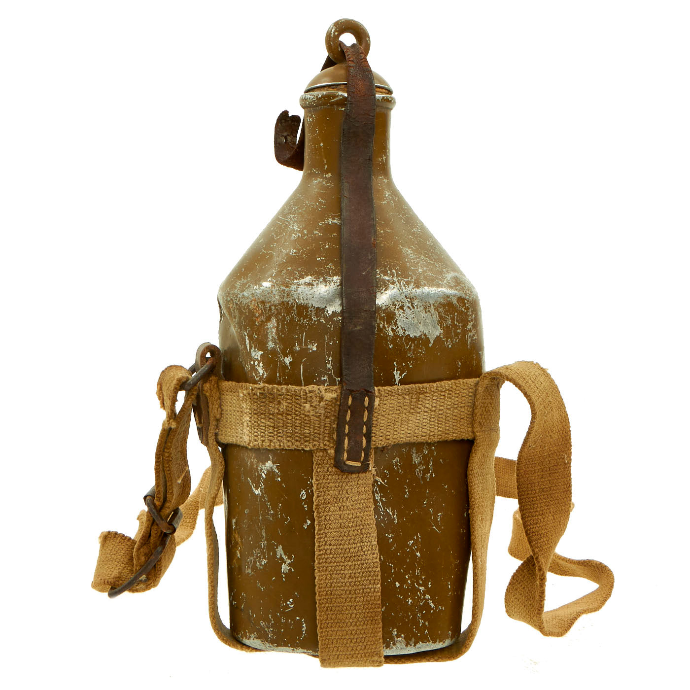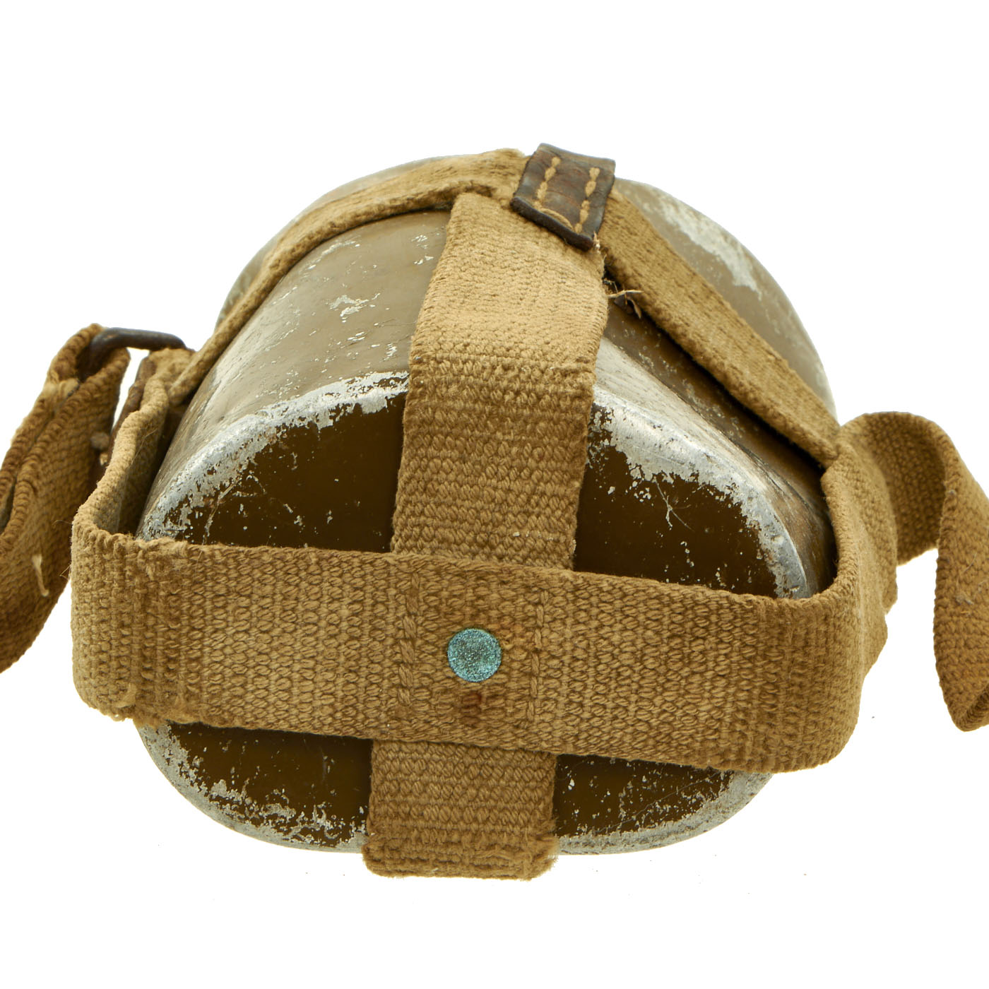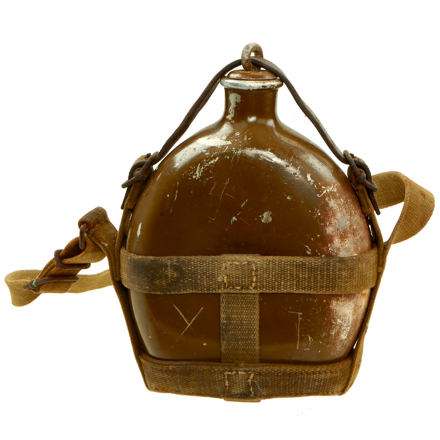 Original Items: Only One Lot of 2 Available. These are nice examples of original WWI and WWII Era Japanese Issue Canteens. The smaller is the Pattern 1905 Canteen, with the updated canvas suspension harness which dates from the WWI era.