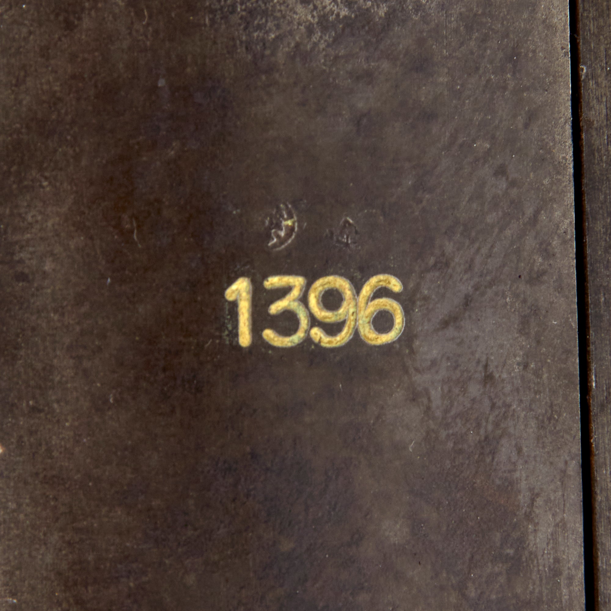This phenomenal example is offered in lovely display condition, with a myriad of markings across several different pieces. There are two serial numbers we can find on different parts of the gun, 1389 and 1396. Considering how close the numbers are, we can assume that the replaced parts may have been replaced at a depot. We tried to transcribe the numerous kanji on the gun, which are highlighted yellow, but were only able to get the first two lines with accuracy: