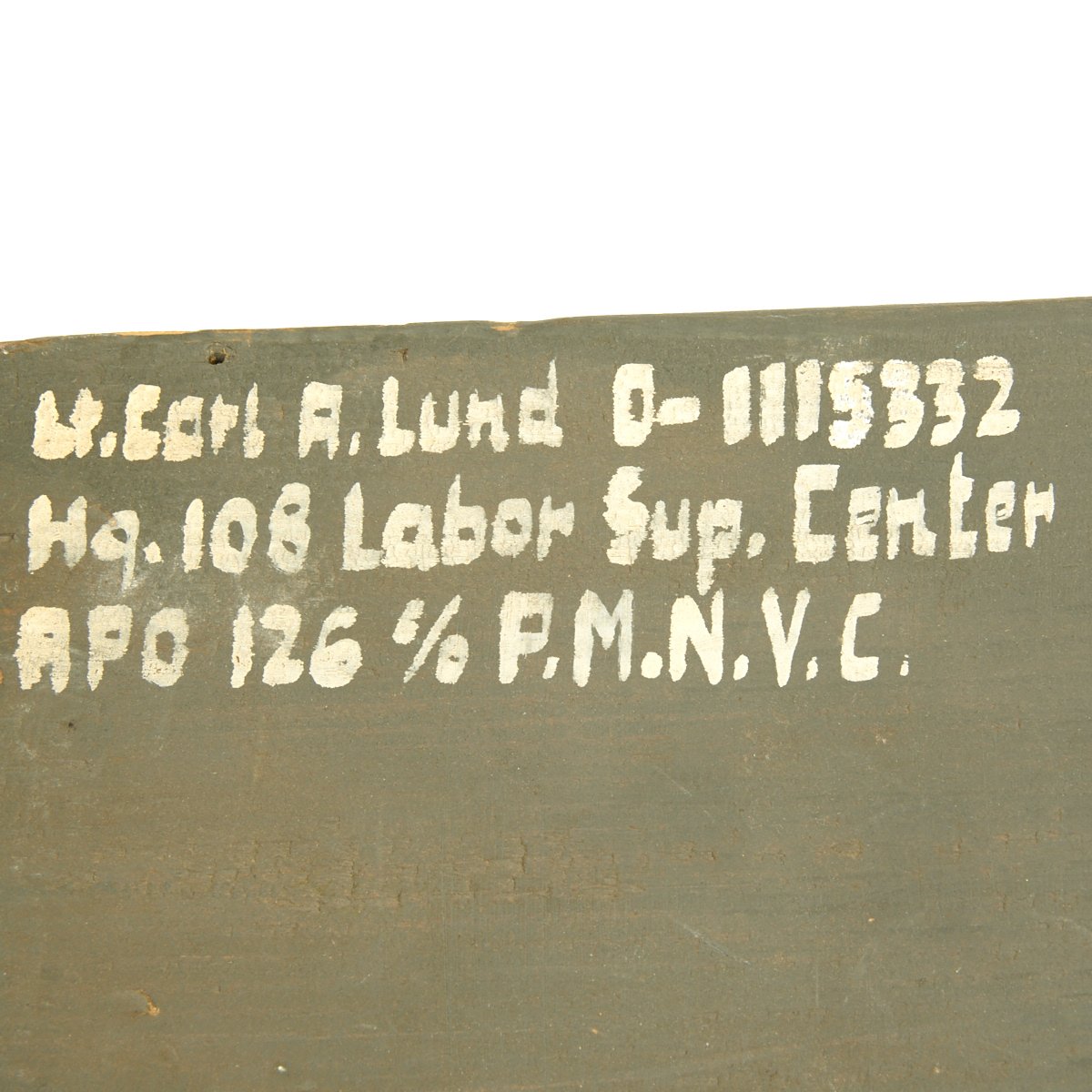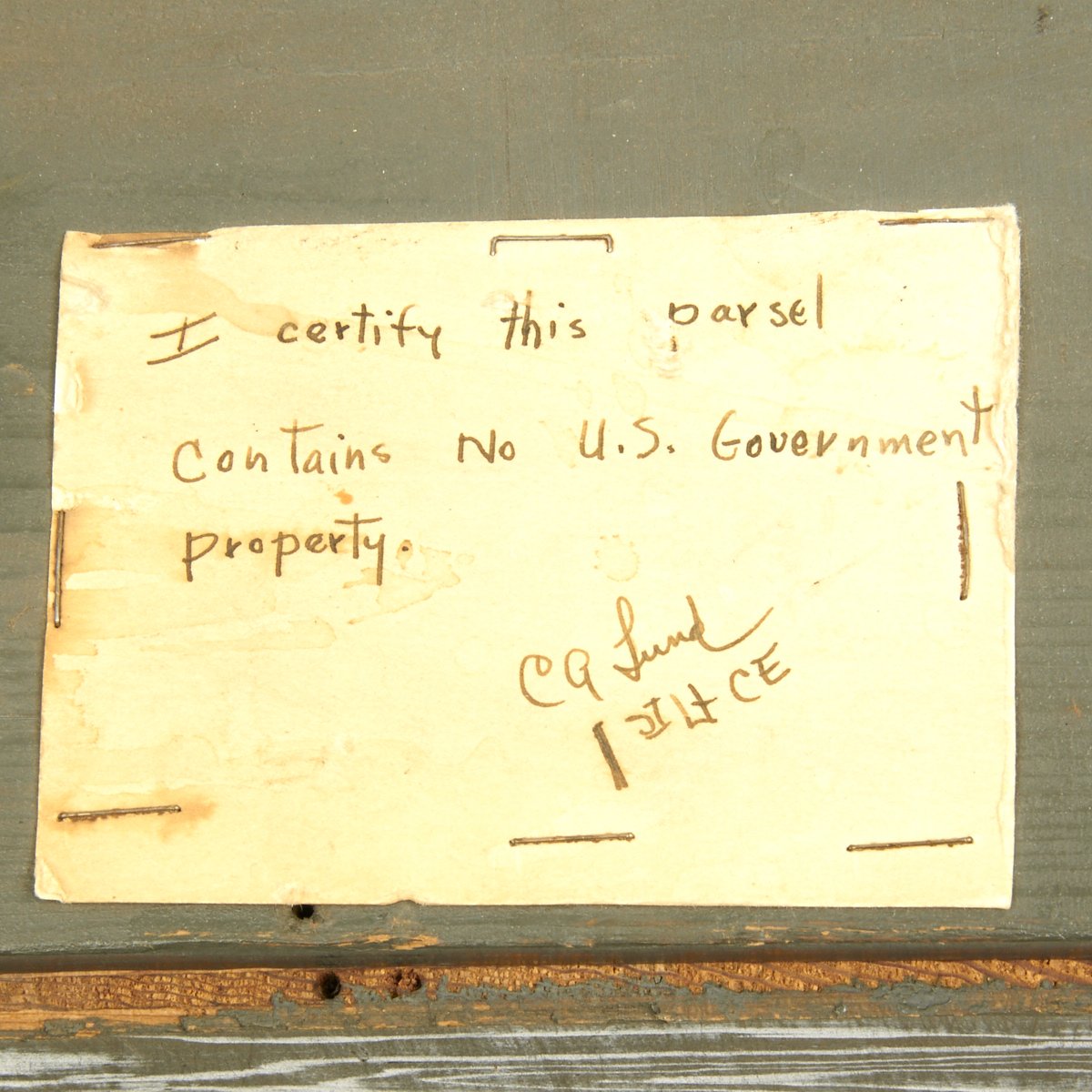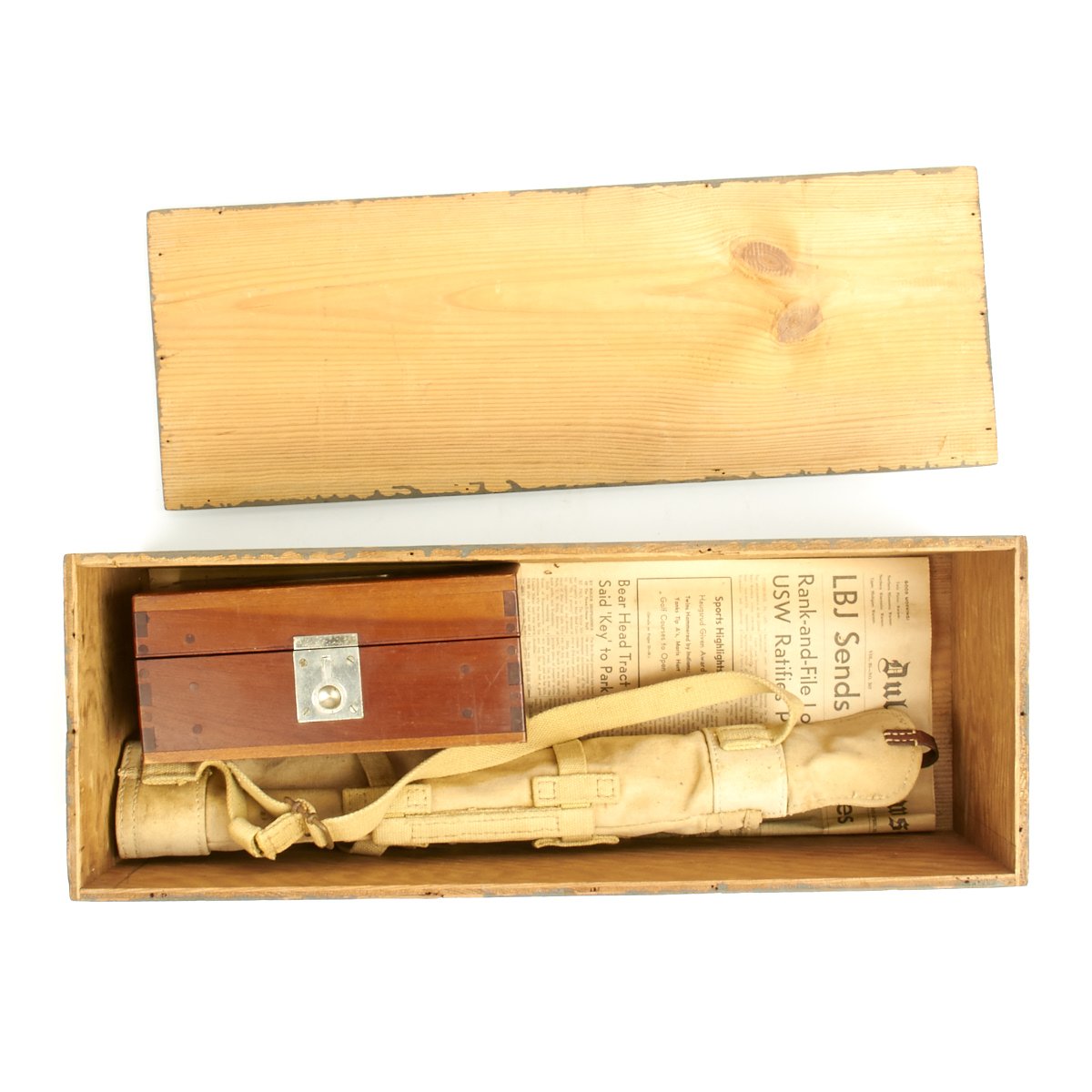 Lt. Carl A Lund 0-1115532Hq 108 Labor Sup. CenterAPO 126 c/o P.M.N.Y.CMrs. Carl A Lund4326 West 5th St.Dultuh 7Minnesota, USAThere is a label on the box that reads I certify No government property Carl Lund 1st Lt. CE. The box also bears multiple wartime postage stamps.These devises were very important for the Japanese Air Force in World War Two. A very high quality precision instrument, complete with custom case and tripod all contained in a named and dated bring back box.The Imperial Japanese Army Air Service or Imperial Japanese Army Air Force or, more literally, the Greater Japan Empire Army Air Corps, was the aviation force of the Imperial Japanese Army (IJA). Just as the IJA in general was modeled mainly on the German Army, the IJAAS initially developed along similar lines to the Imperial German Army Aviation; its primary mission was to provide tactical close air support for ground forces, as well as a limited air interdiction capability. The IJAAS also provided aerial reconnaissance to other branches of the IJA. While the IJAAS engaged in strategic bombing of cities such as Shanghai, Nanking, Canton, Chongqing, Rangoon, and Mandalay, this was not the primary mission of the IJAAS, and it lacked a heavy bomber force.