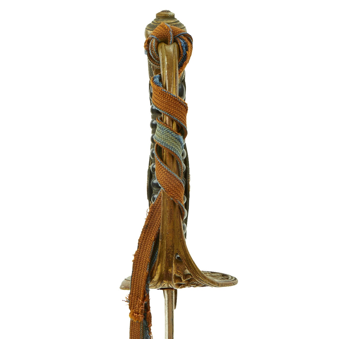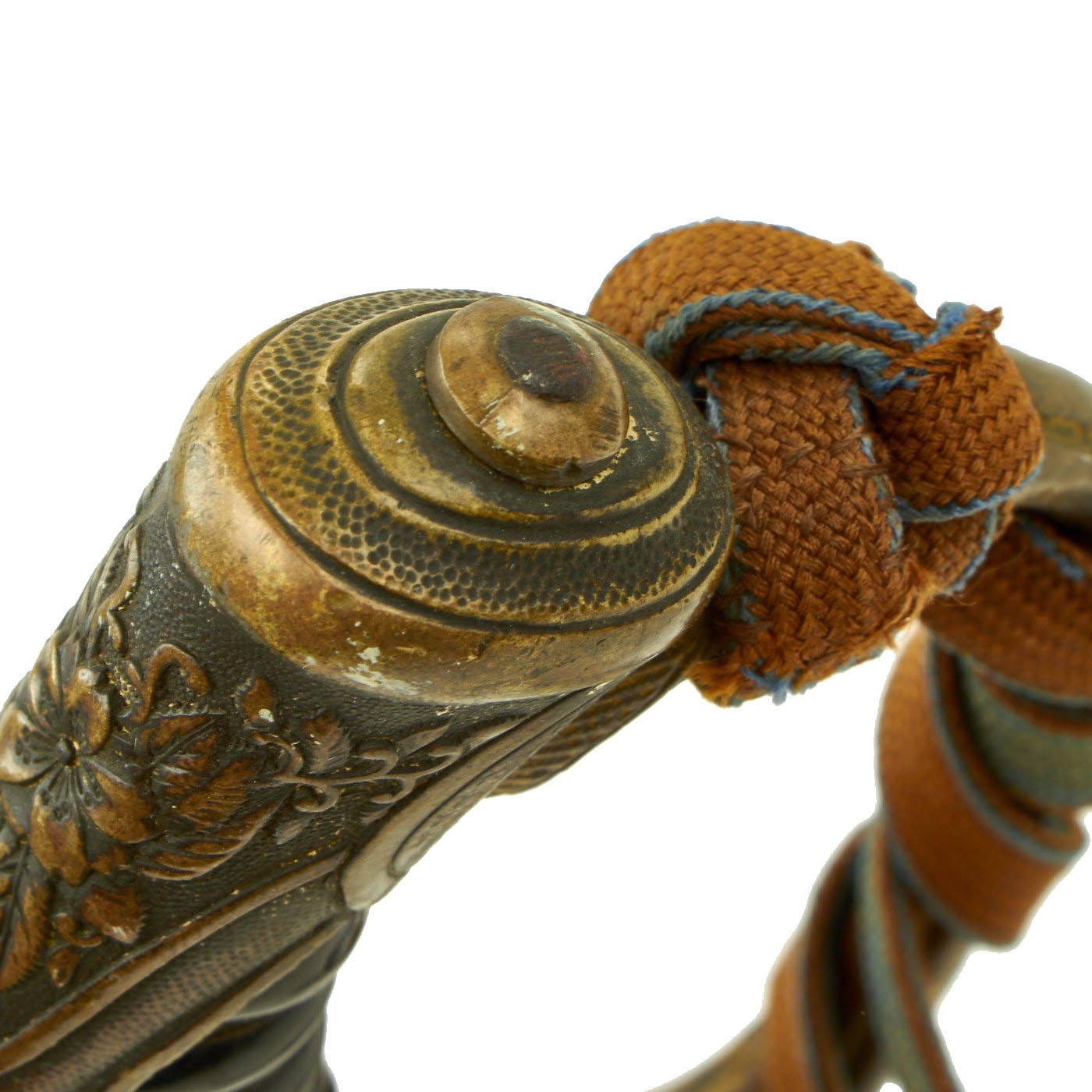 Attached to the handguard is a Brown and Blue colored Tassel, which is worn from use and age, and has been repaired. This signifies that this was carried by a "company grade" officer, which would be a from 2nd Lieutenant 陸軍少尉 (Rikugun-Shōi) up to Captain 陸軍大尉 (Rikugun-Tai-i) rank in the IJA. It is in good repaired condition and totally correct.