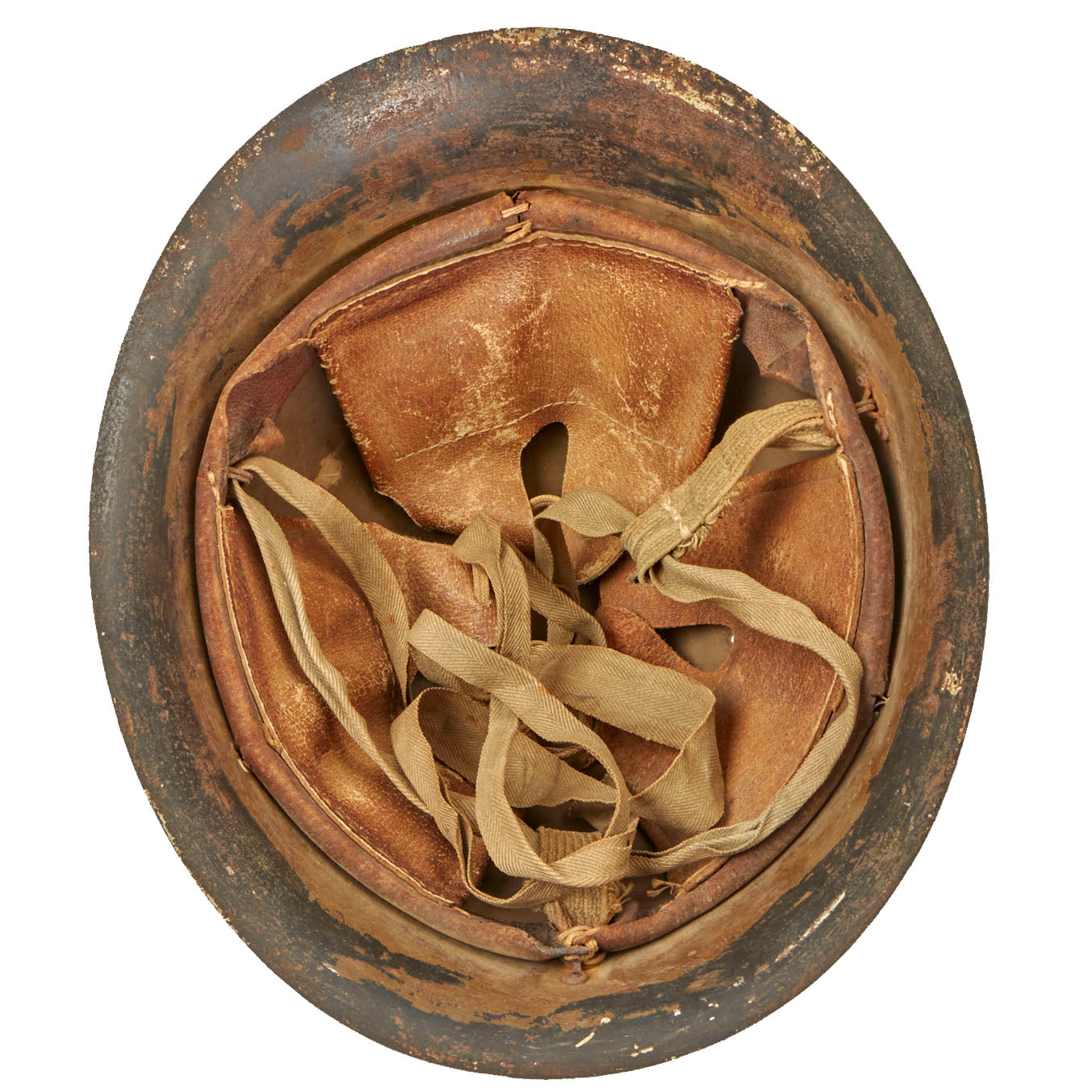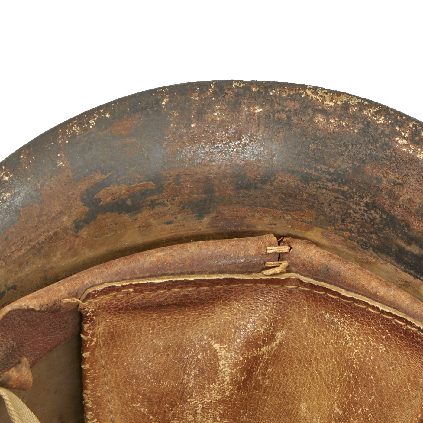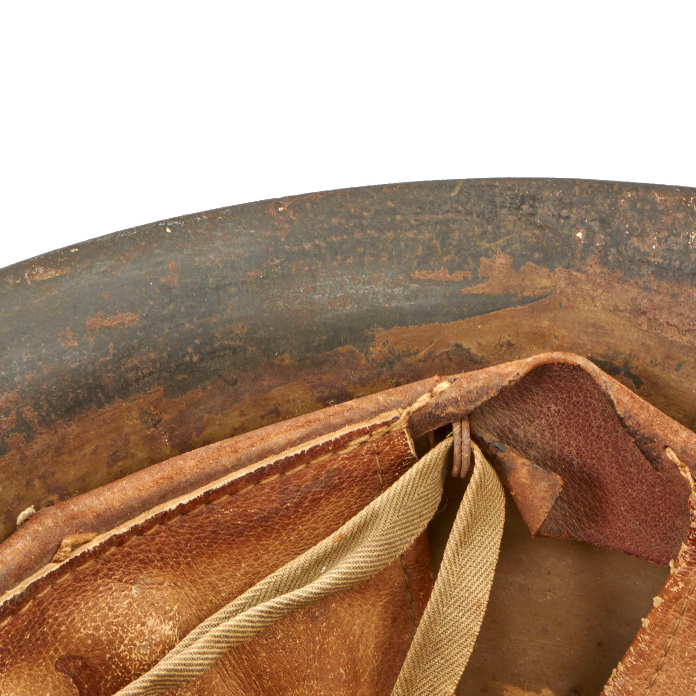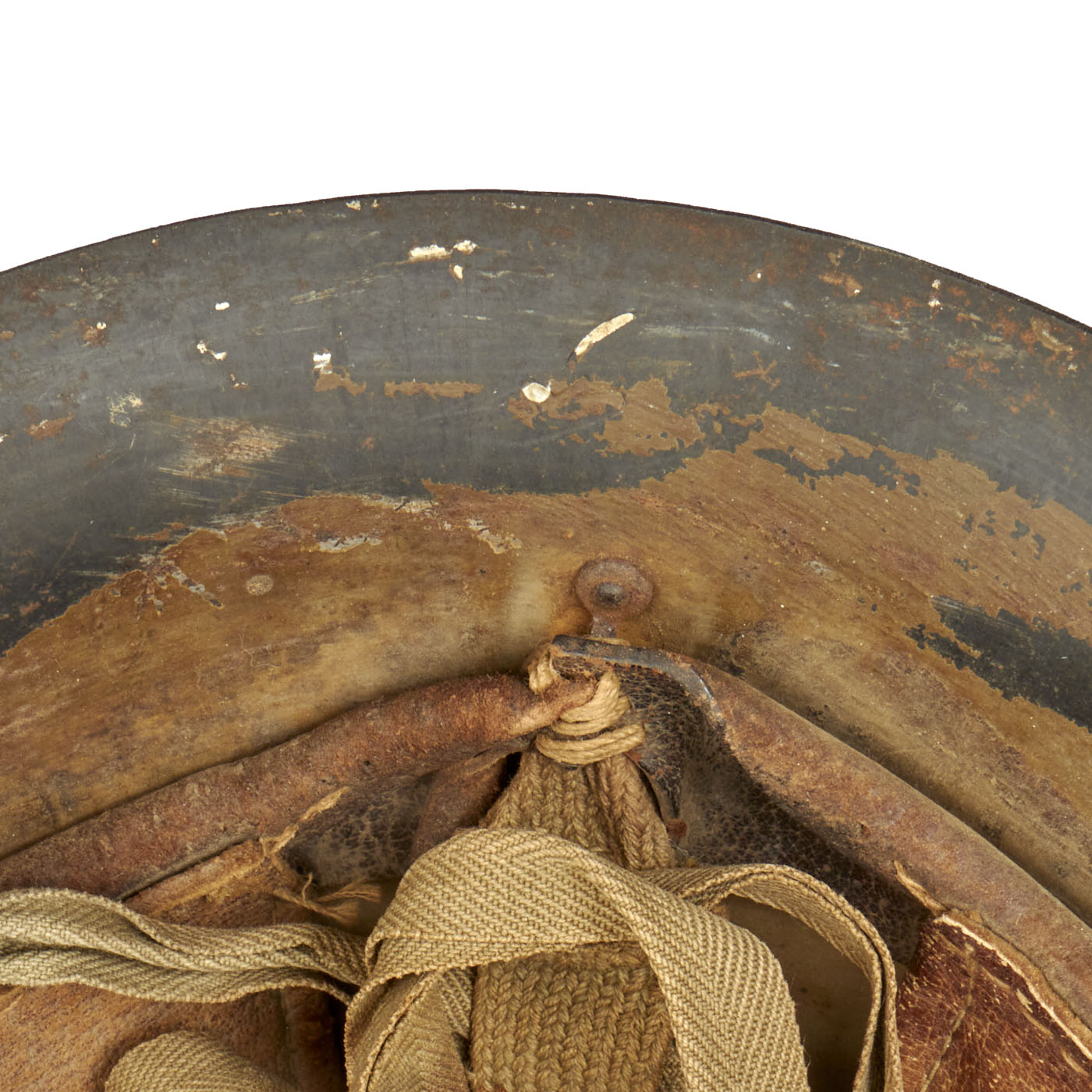 A very nice condition helmet, with most of the original paint, with the expected wear and chips from service. Also, it has a legible ink stamp on the liner. These helmets are continuing to become harder and harder to find on the market, especially once with complete liner and chin strap systems. This example is worthy of any WWII collection.