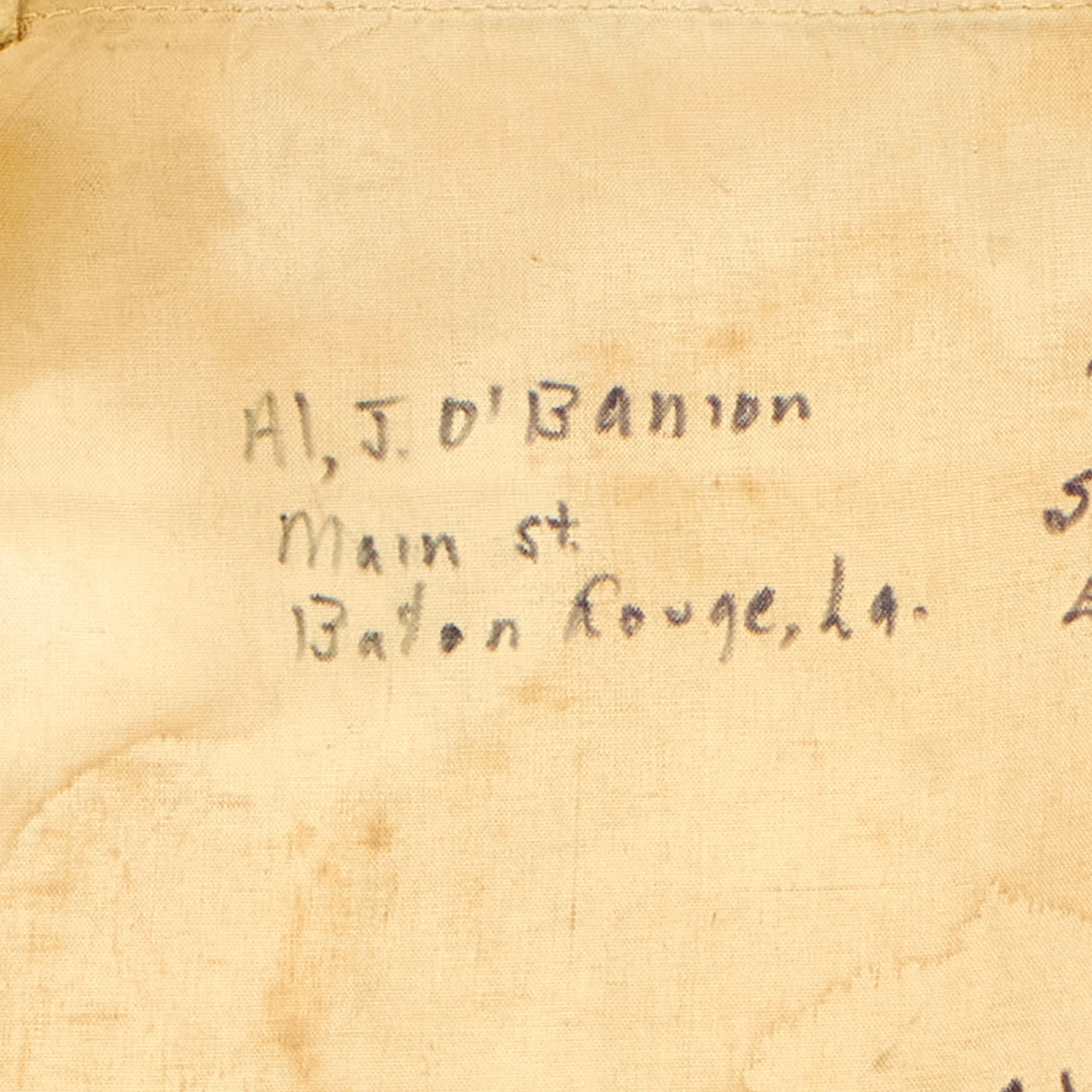 One of the names written in the top left corner is Al, J. O’Banion / Main St / Baton Rouge, La. Alfred J. O’Banion enlisted in the Marine Corps on October 27, 1943 and is seen having trained as a Marine Raider with the Second Raider Company of the Raider Battalion. He served in the Pacific with Company E, Second Battalion, Twenty-seventh Marines, Fifth Marine Division. This was the unit where he would earn himself a Purple Heart and a Silver Star while fighting on Iwo Jima, alongside his Lieutenant, who would later be awarded the Medal of Honor Posthumously.