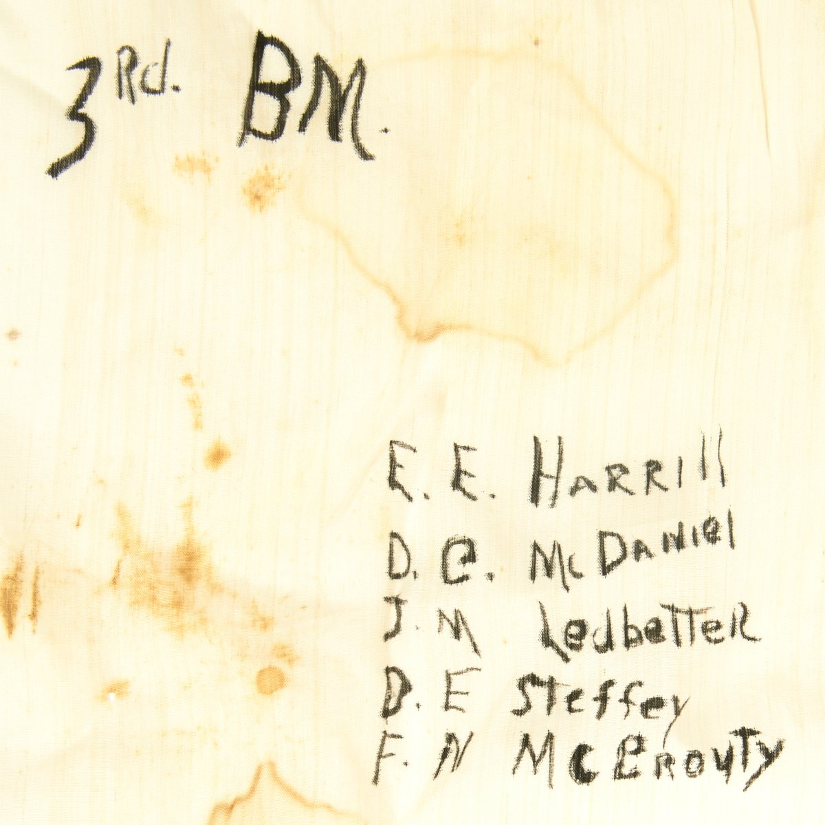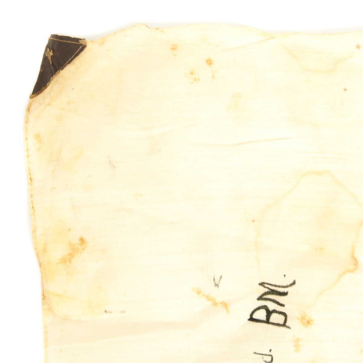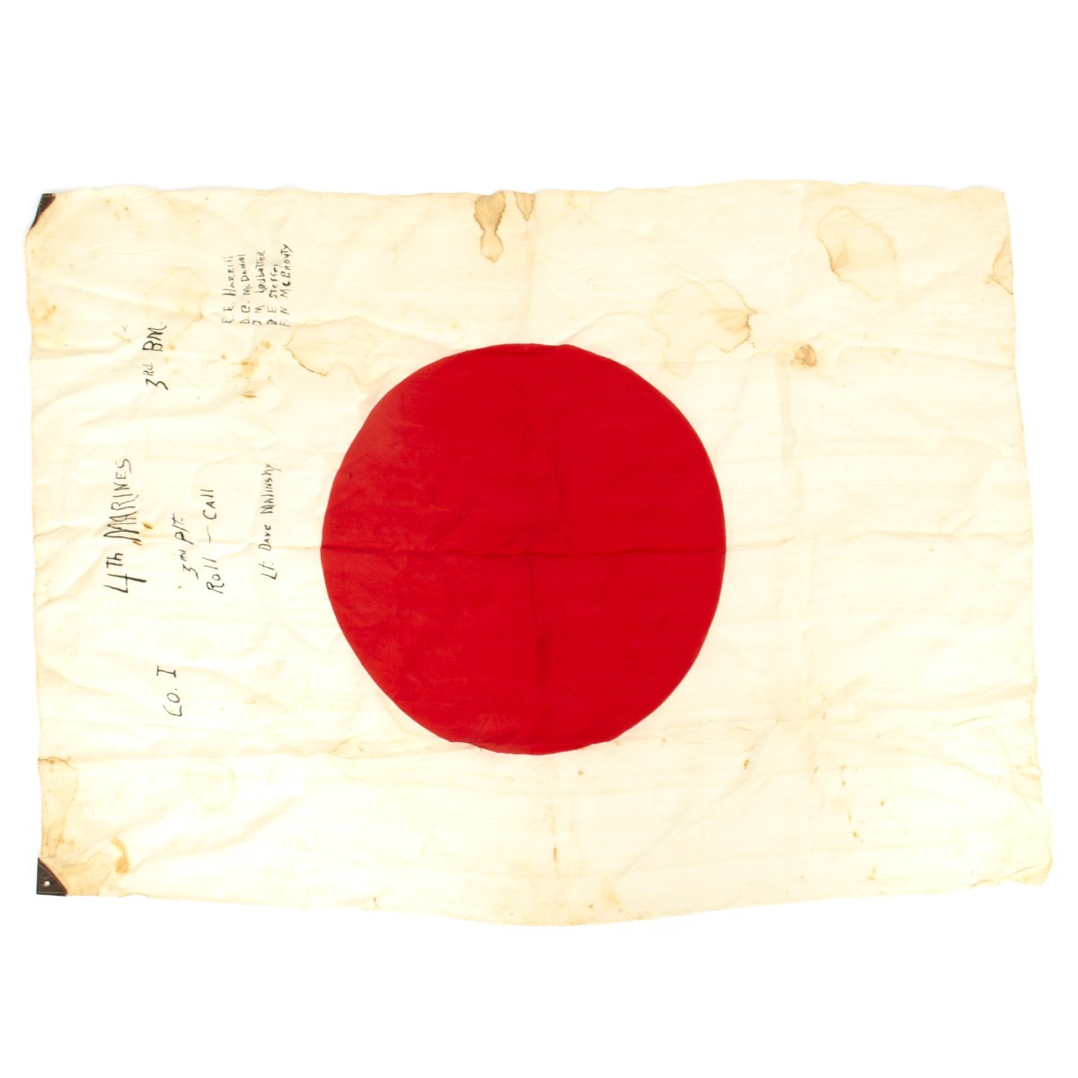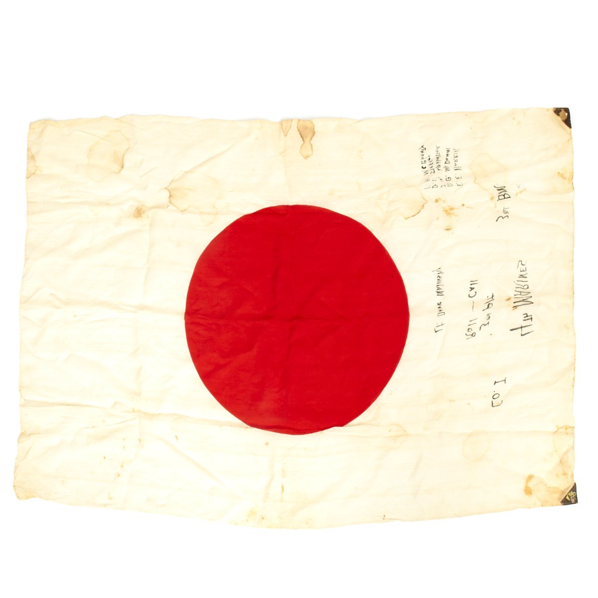 This silk Japanese WWI flag measures 29" x 41" and is very good condition. It is ink marked as follows: