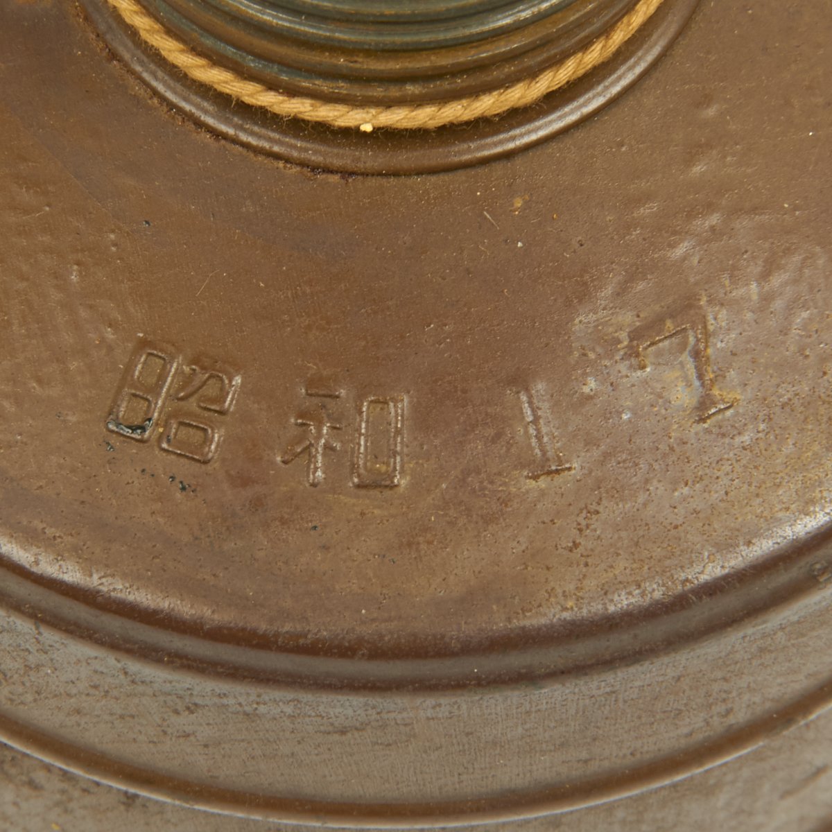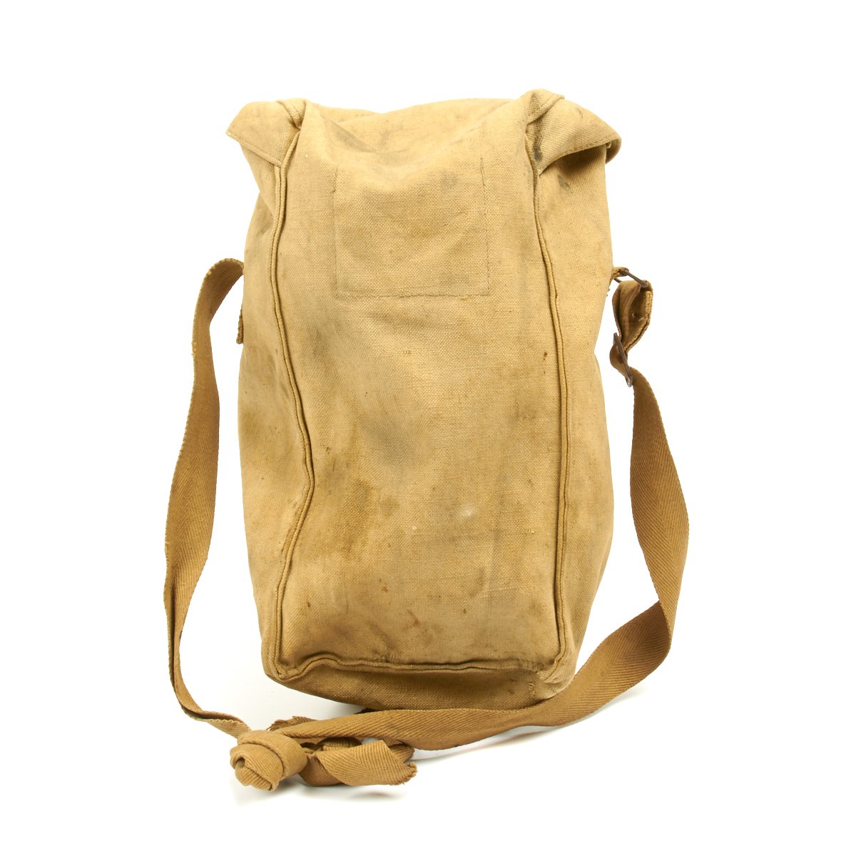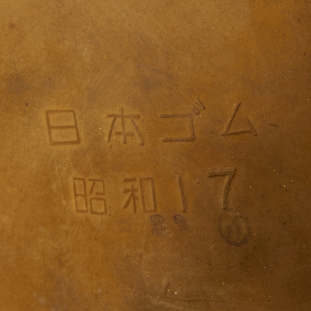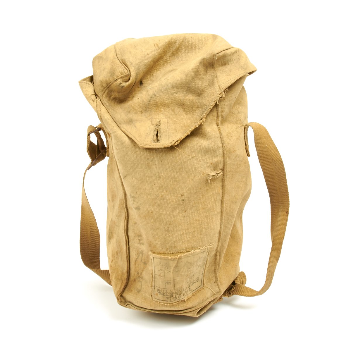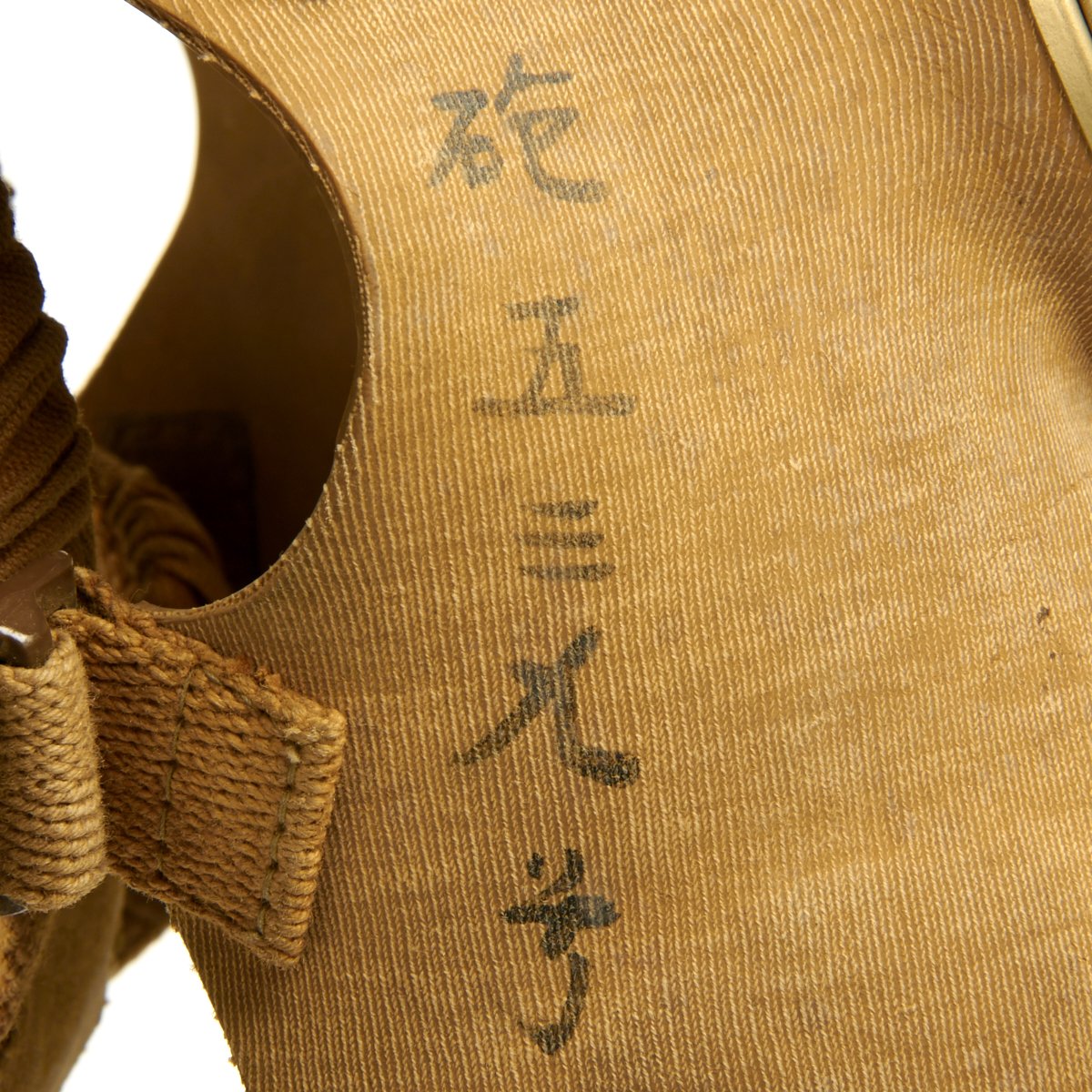 Original Item: Only One Available. Genuine WWII issue Japanese rubberized face mask with metal rimmed lenses. Filter can has never been used with original seal still intact and the can has a wonderful full color paper label with instructions. Lenses are in good condition with no cracks. Rubberized material is soft and pliable, mask is ink stamped, straps are all present and in very good condition. The carry bag is also in very good condition with maker stamps and label. Overall this is one of the best masks we have ever encountered.