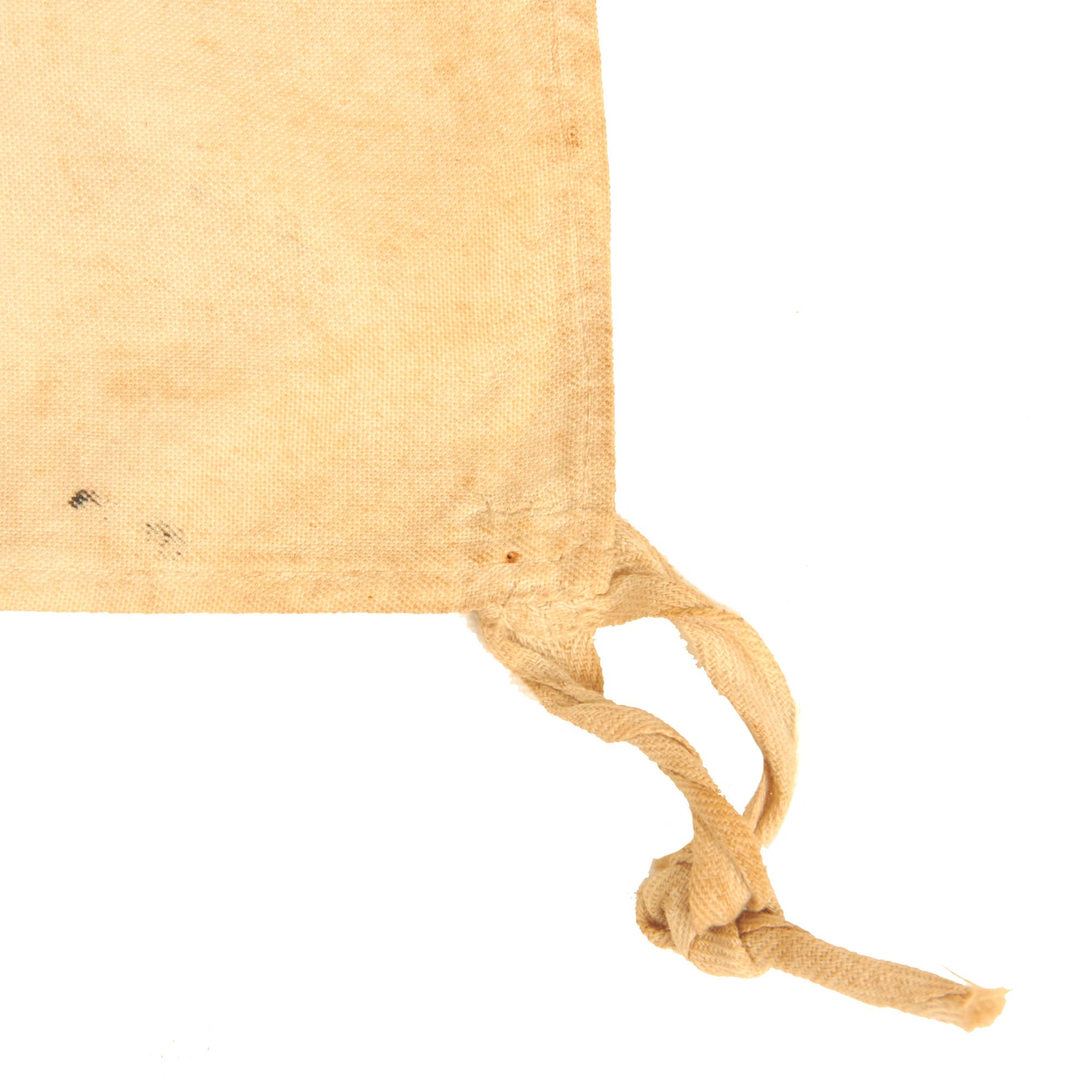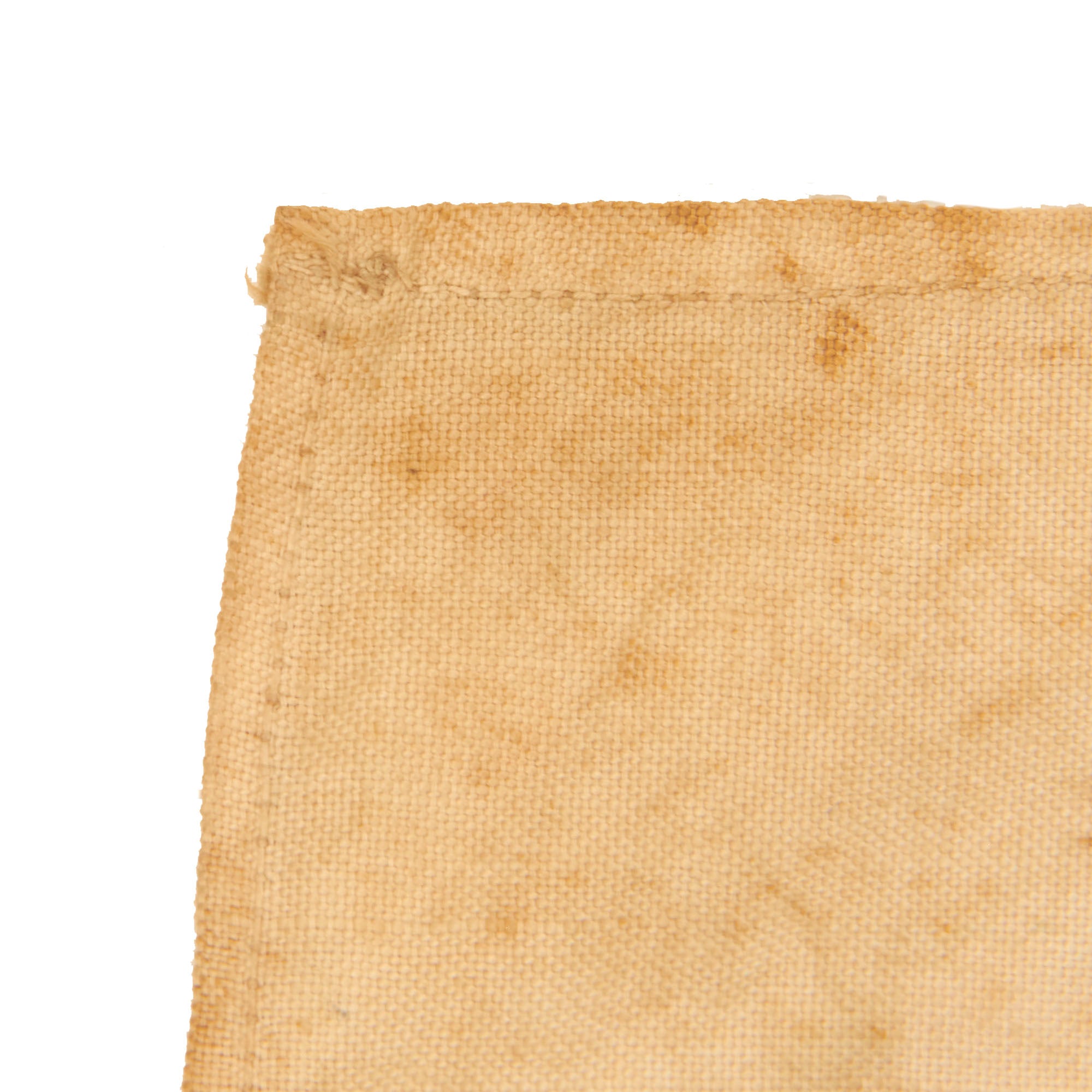 The flag measures approximately 19” x 26”, and is made of what appears to be light weight cotton canvas, with the red "sun" dyed into the middle. The corners have simple hanging straps, which are still tied together. Overall the flag is in good condition with some tearing present and is the real deal: a genuine USGI "bring back"!