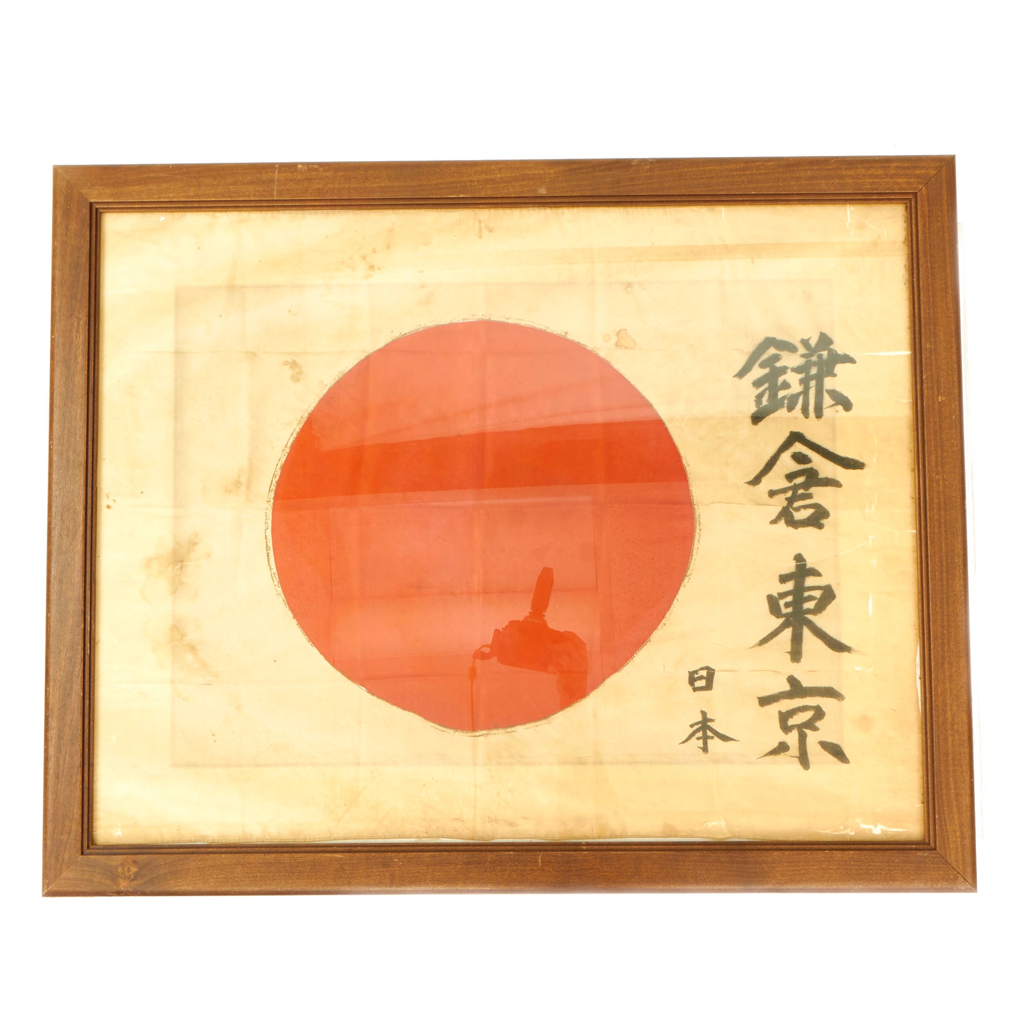 Original Item: One-of-a-kind. Just purchased from a large military auction. This hand painted cloth flag is not marked with the usual battle quotes such as "Banzai", and "Good Luck for Bravery". This flag is marked on the right side with 鎌 倉 東 京 which is for the Coastal Town of Kamakura, Japan though the characters read as “Kamakura Tokyo. Kamakura, officially Kamakura City, is a city of Kanagawa Prefecture in Japan. It is located in the Kanto region on the island of Honshu. The city has an estimated population of 172,929 (1 September 2020) and a population density of 4,359 persons per km² over the total area of 39.67 km2 (15.32 sq mi). Kamakura was designated as a city on 3 November 1939.