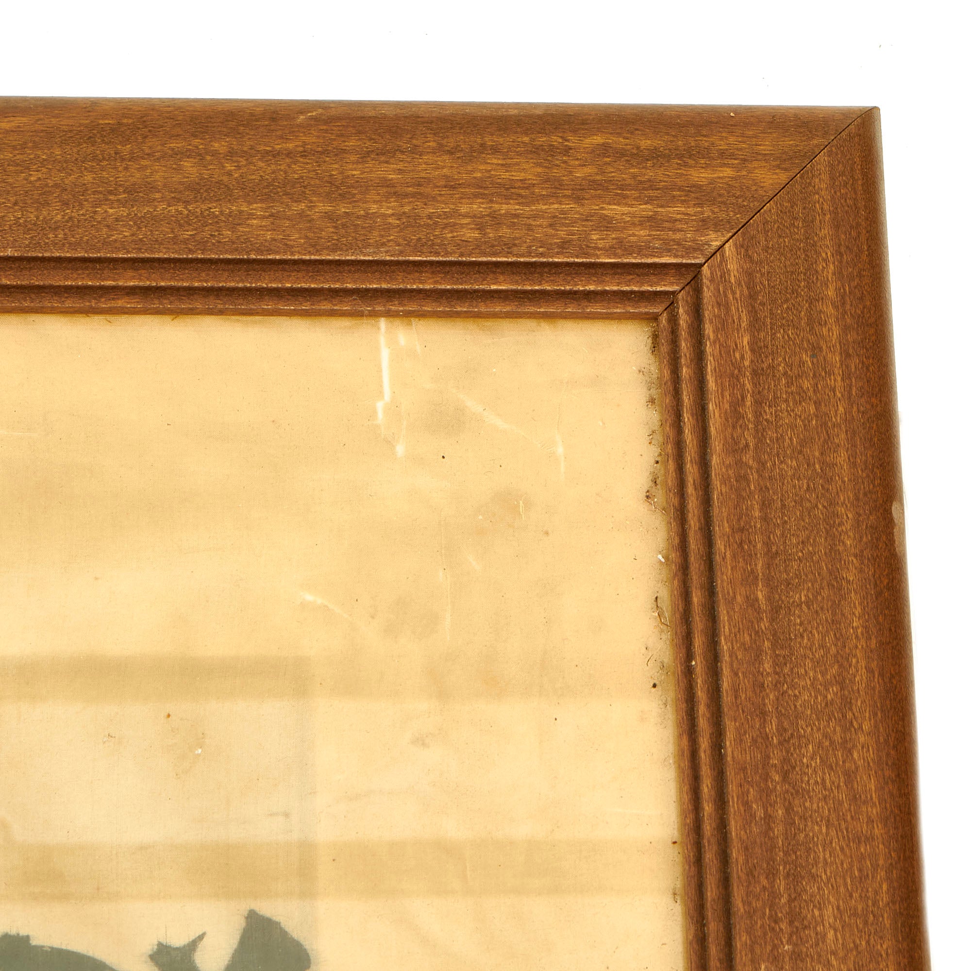 The flag is contained in a frame, and is made of what appears to be rayon, with the red "sun" dyed into the middle. Overall the flag is in good condition with some tearing present and is the real deal: a genuine USGI "bring back"!