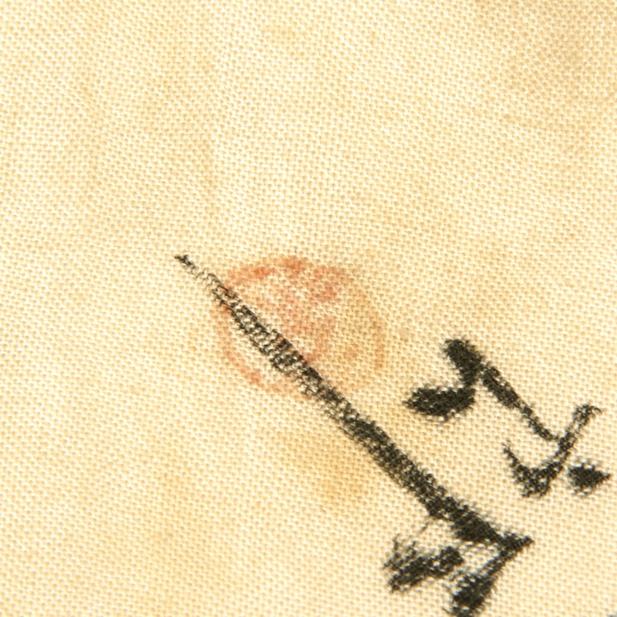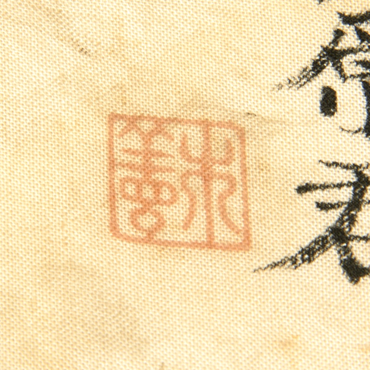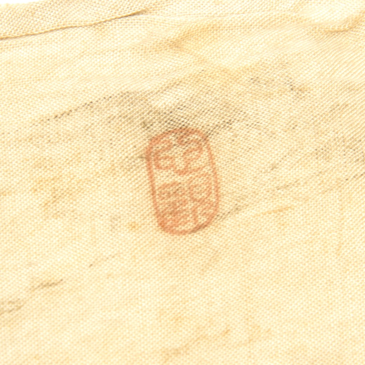 The Japanese call their country's flag hinomaru, which translates literally to "sun-round", referencing the red circle on a white field. When the hinomaru was signed, the Japanese characters were usually written vertically, and radiated outward from the edge of the red circle. This practice is referenced in the second term, yosegaki, meaning "sideways-writing". The phrase hinomaru-yosegaki can be interpreted as "To write sideways around the red sun", describing the appearance of the signed flag. This particular example completely unique is written in old KANJI the writing are mainly Japanese names of this soldier’s family and friends with quotes and phrases.